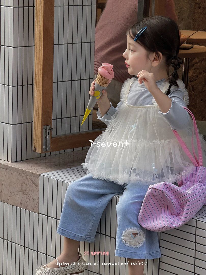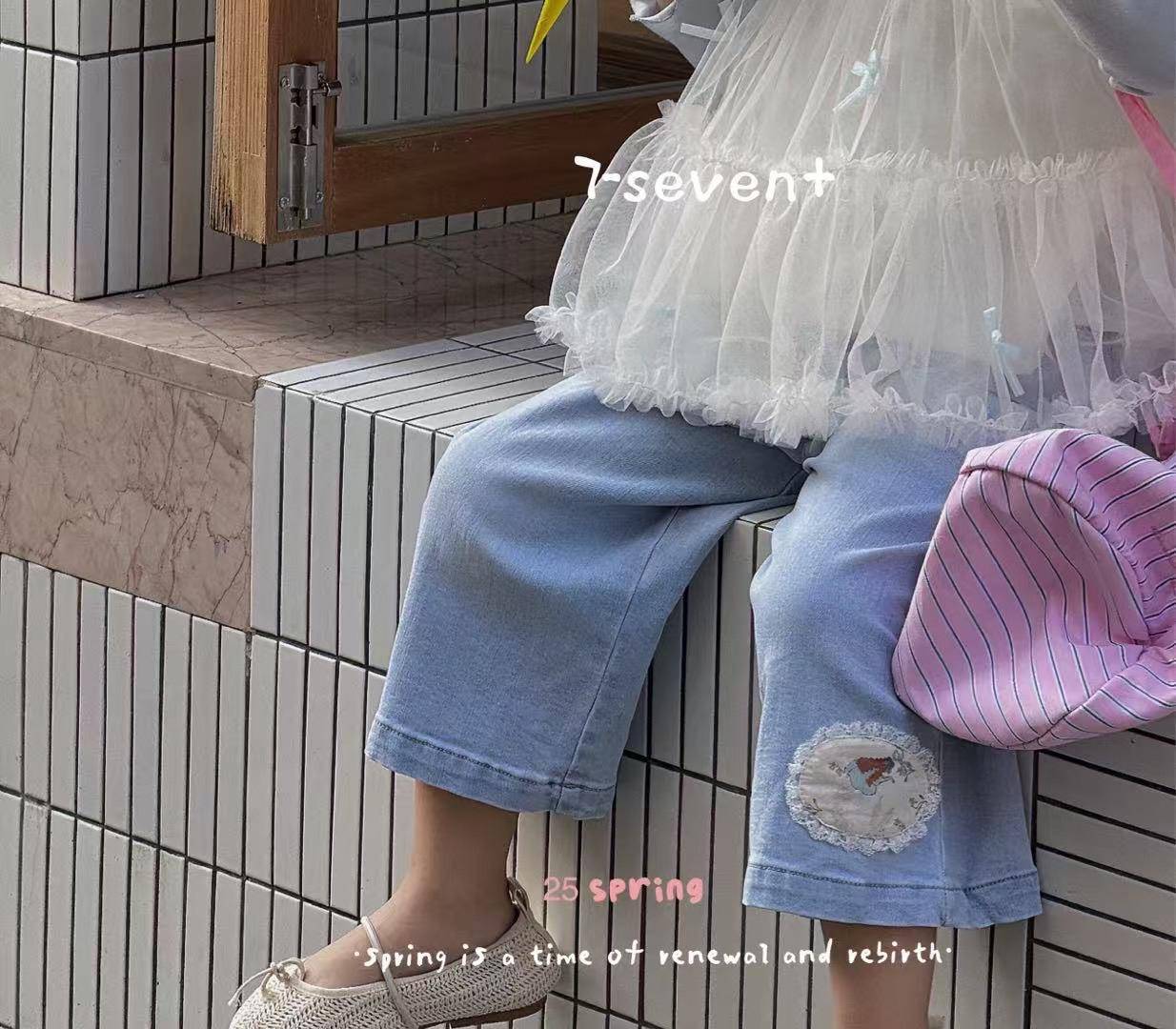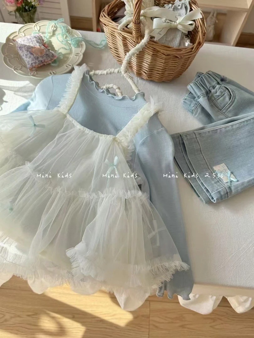 Ningli 아동복 소녀 세트 2025 봄 새로운 어린이 서양식 달콤한 콘돌 스트랩 거즈베이스 셔츠 청바지
