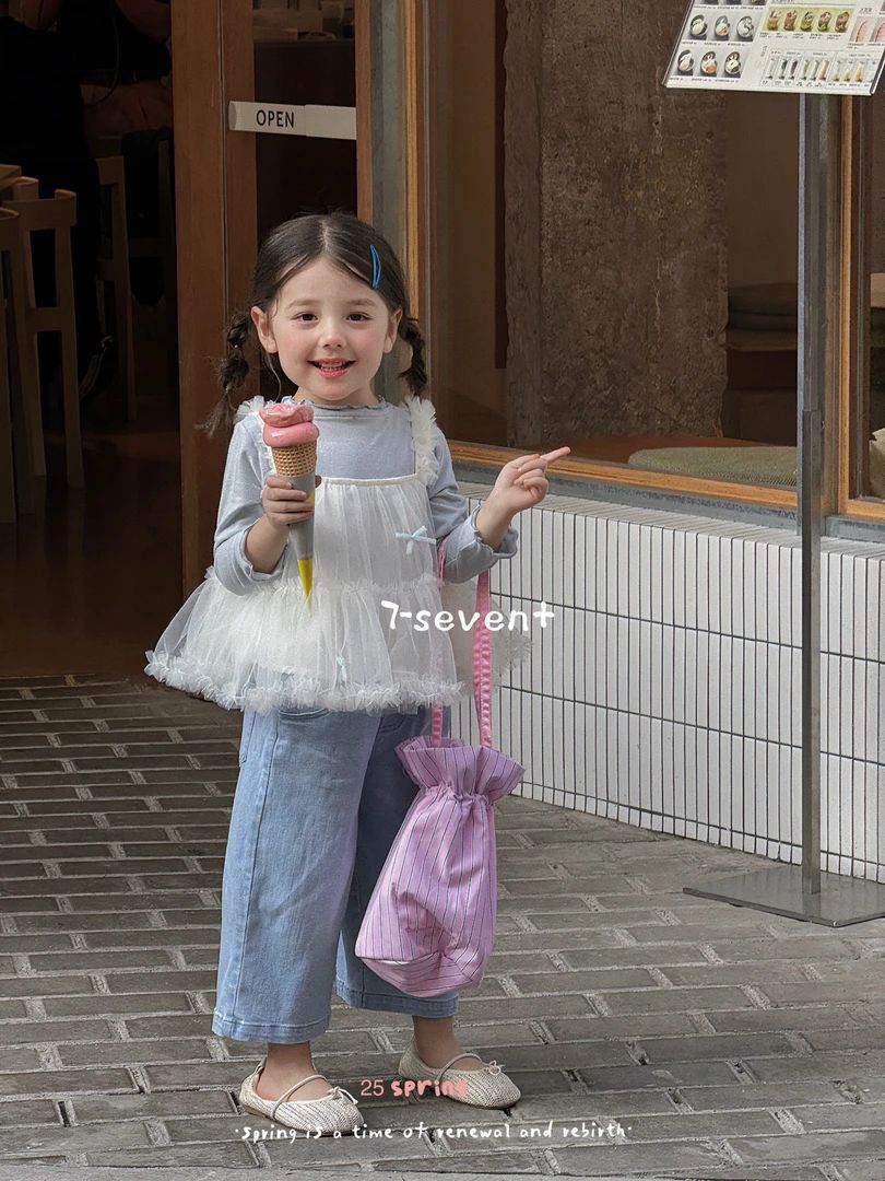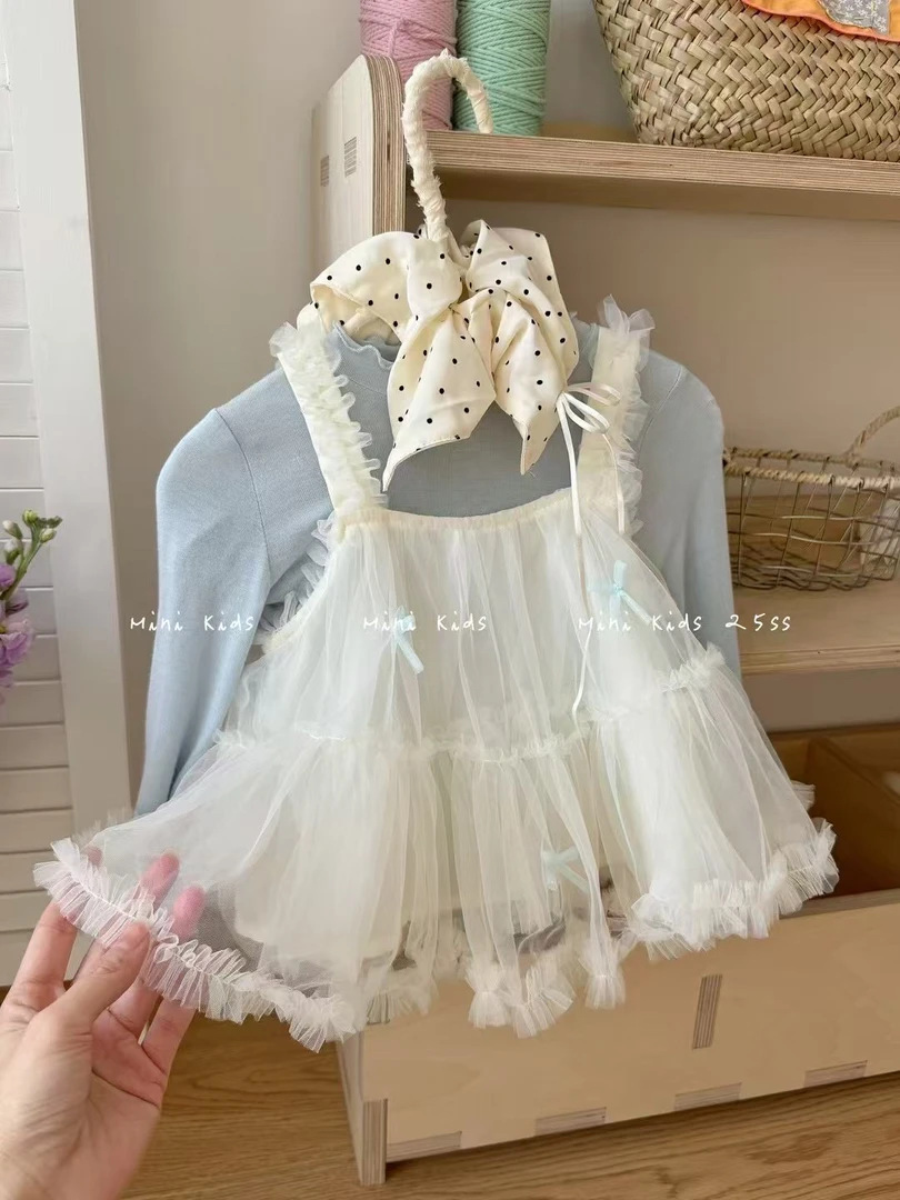 Ningli 아동복 소녀 세트 2025 봄 새로운 어린이 서양식 달콤한 콘돌 스트랩 거즈베이스 셔츠 청바지스토어 가기