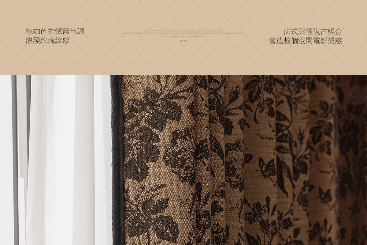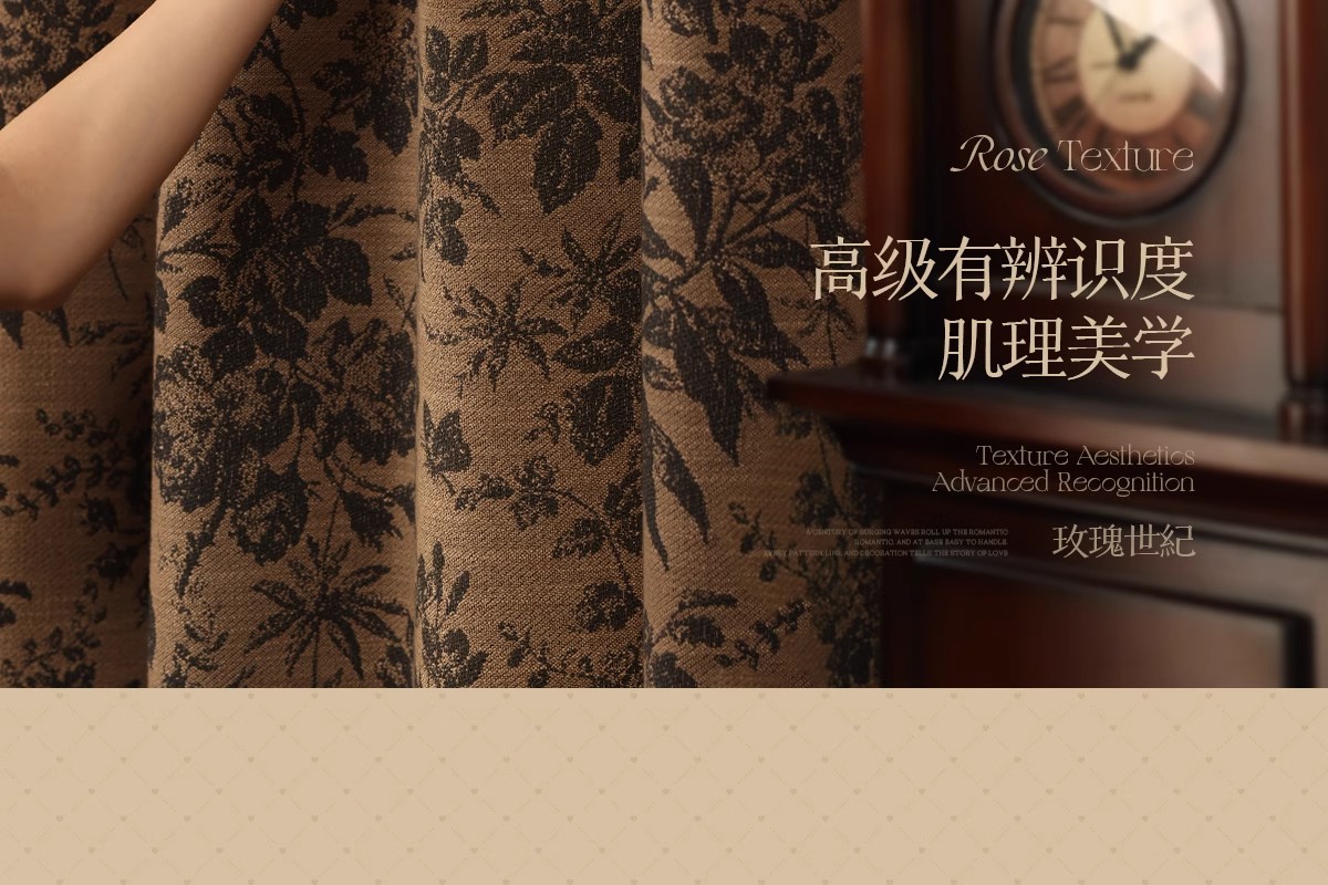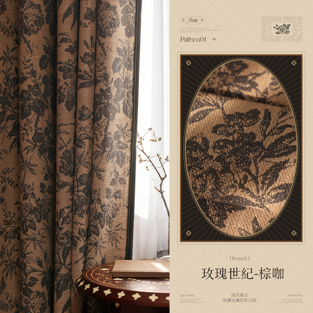 로즈 프렌치 복고풍 커튼 라이트 럭셔리 하이 엔드 빛 차단 2025 새로운 중세 스타일 올드 머니 스타일 아메리칸 거실스토어 가기