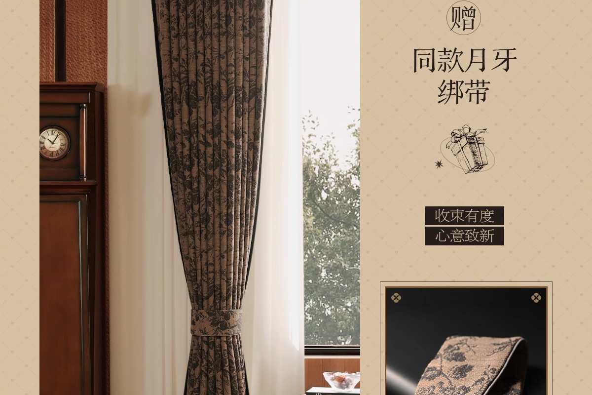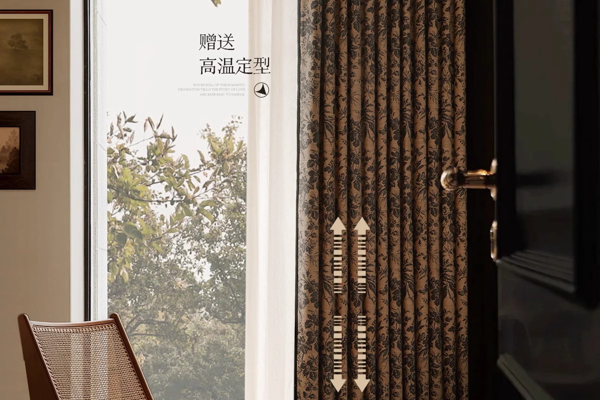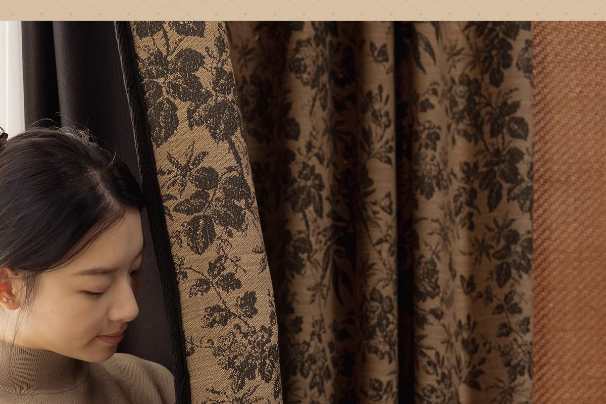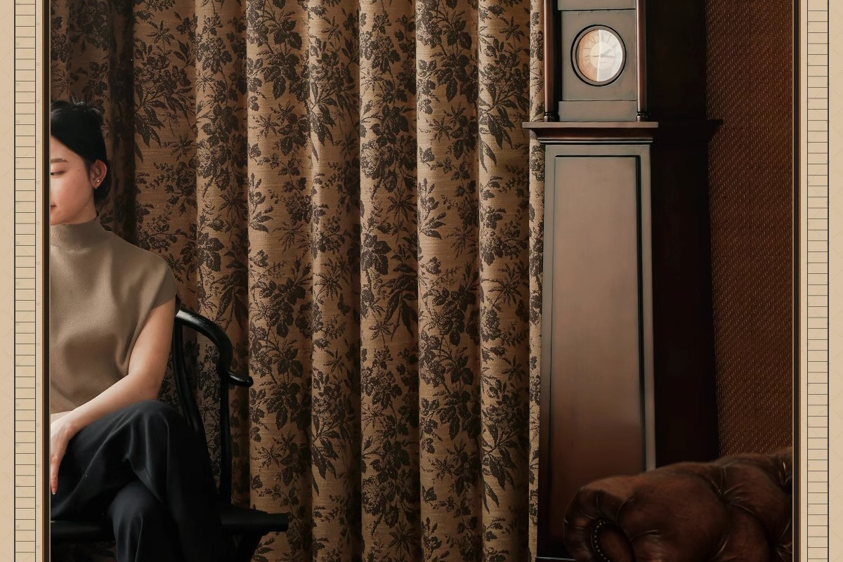 로즈 프렌치 복고풍 커튼 라이트 럭셔리 하이 엔드 빛 차단 2025 새로운 중세 스타일 올드 머니 스타일 아메리칸 거실스토어 가기