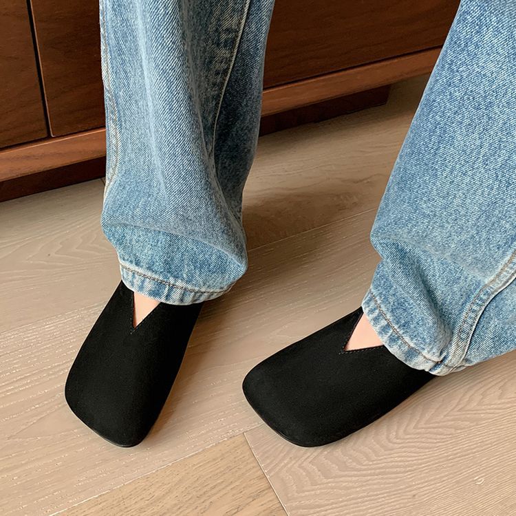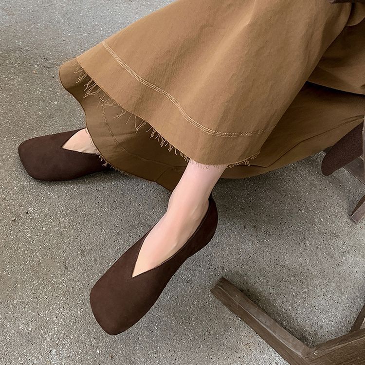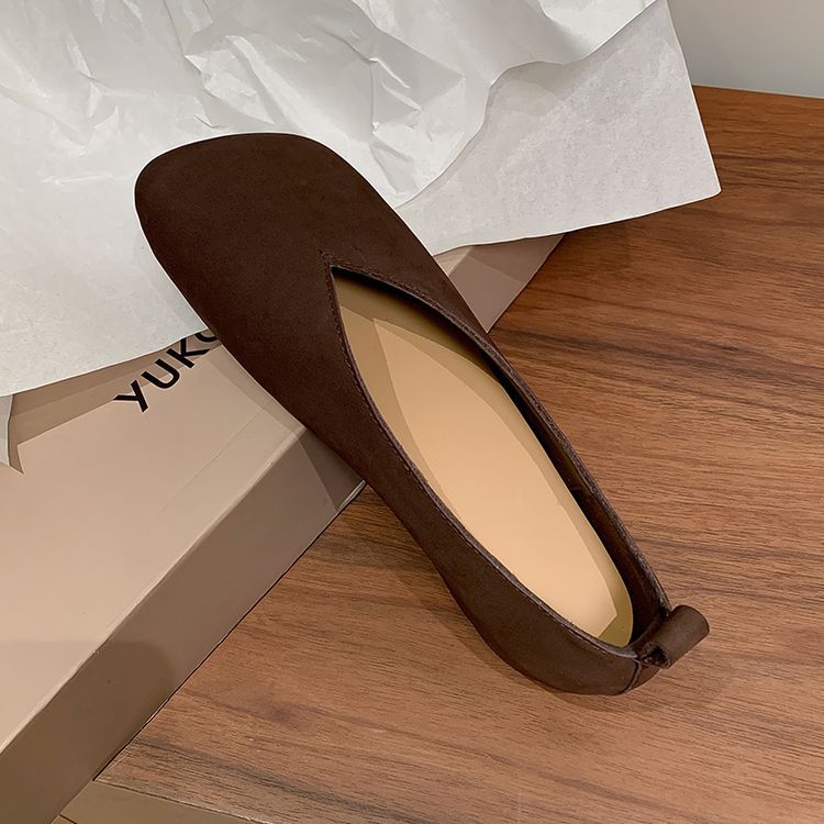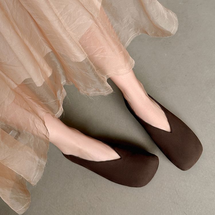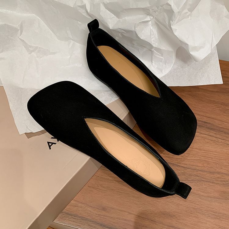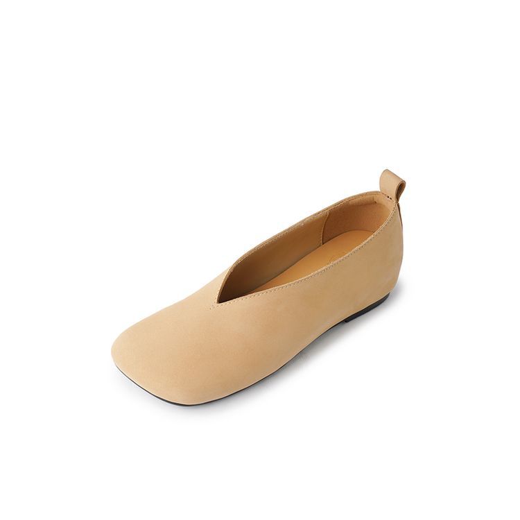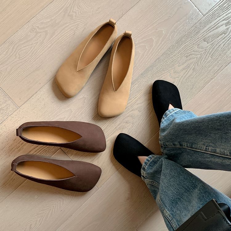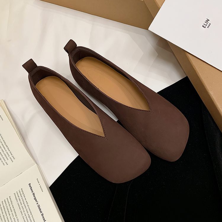 초봄을위한 첫 번째 레이어 소 가죽 로우 탑 싱글 레이어 신발 여성용 플랫 슈즈 여성을위한 새로운 풀 가죽 단색 복고풍 스퀘어 로우 탑 밀크 슈즈스토어 가기
