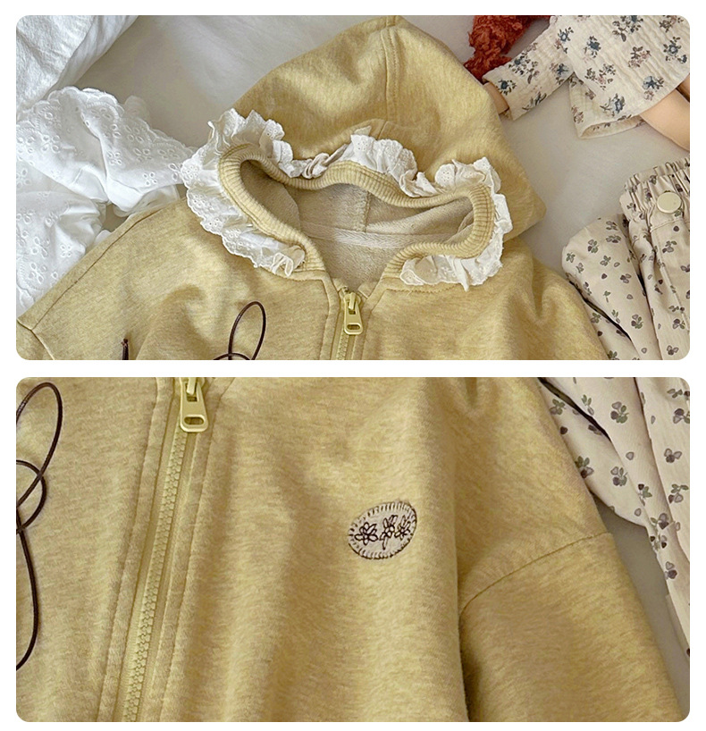 [재고 있음] 2025 봄, 가을 한국 신작 아동복 여아 레이스 후드 자켓 아동 레이스 지퍼 가디건스토어 가기
