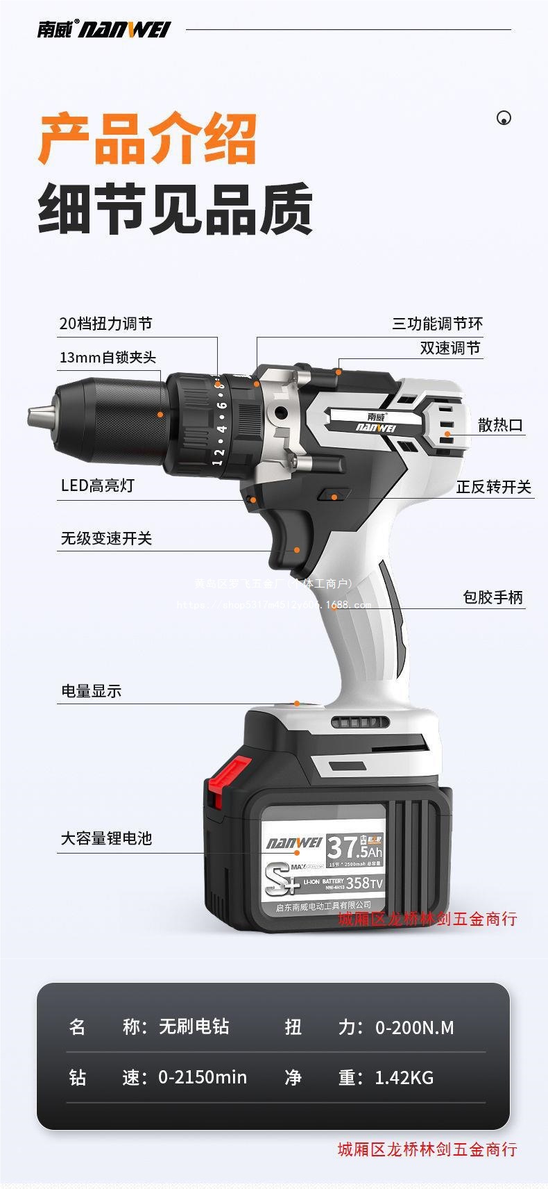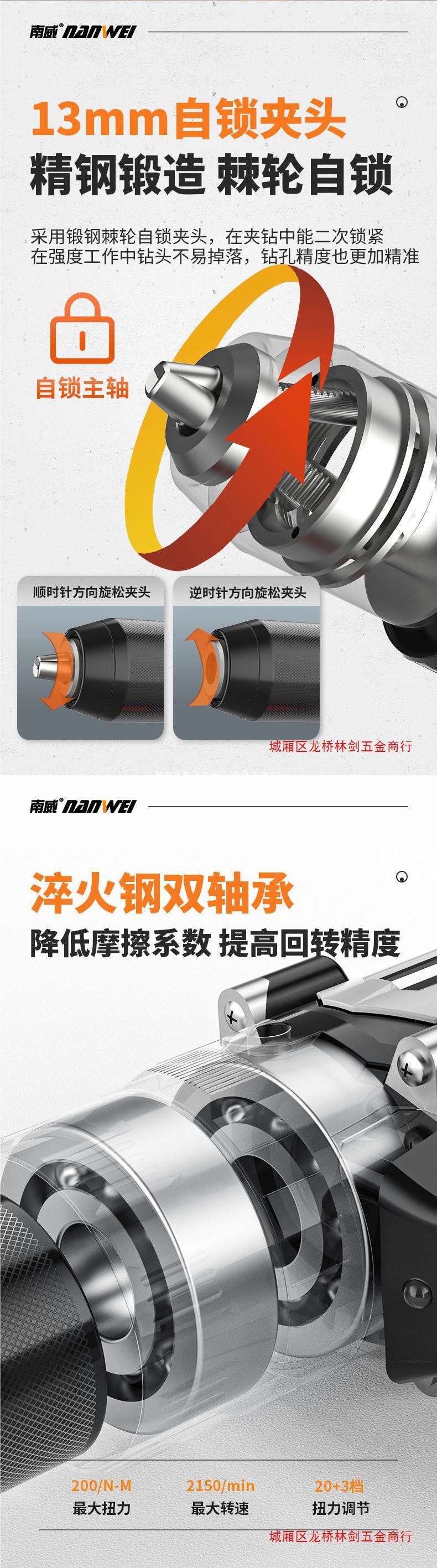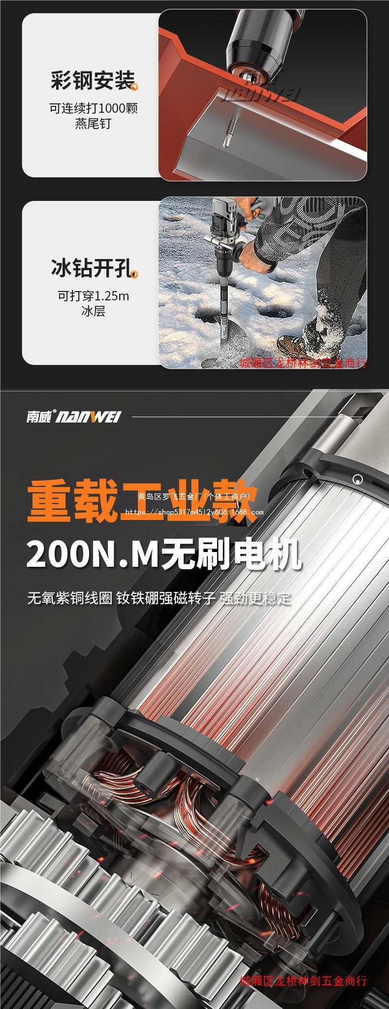 Nanwei 고출력 브러시리스 리튬 배터리 드릴 충전식 드릴 가정용 충전식 핸드 건 드릴 손 전기 드릴 충격 드릴 턴 |