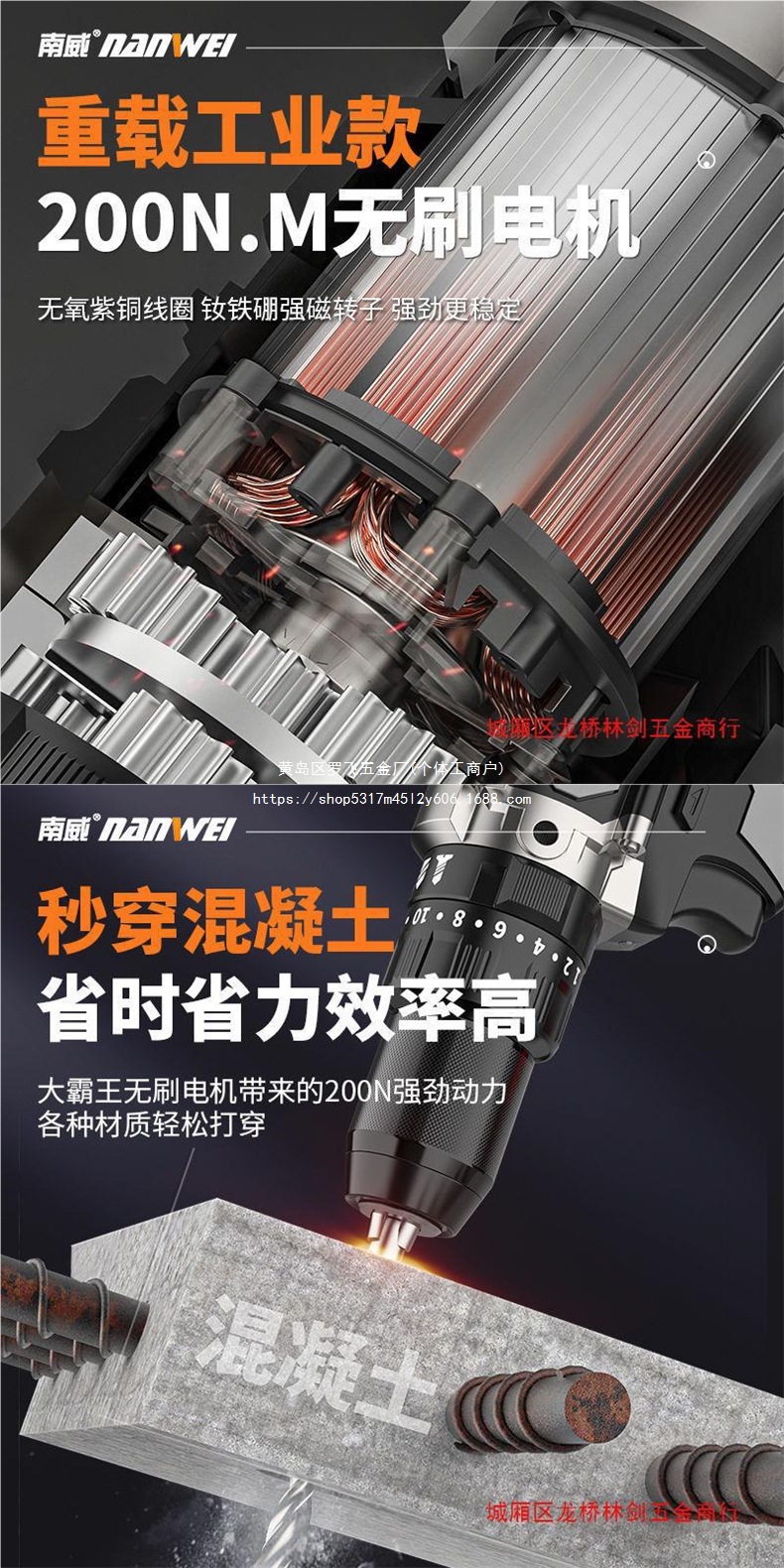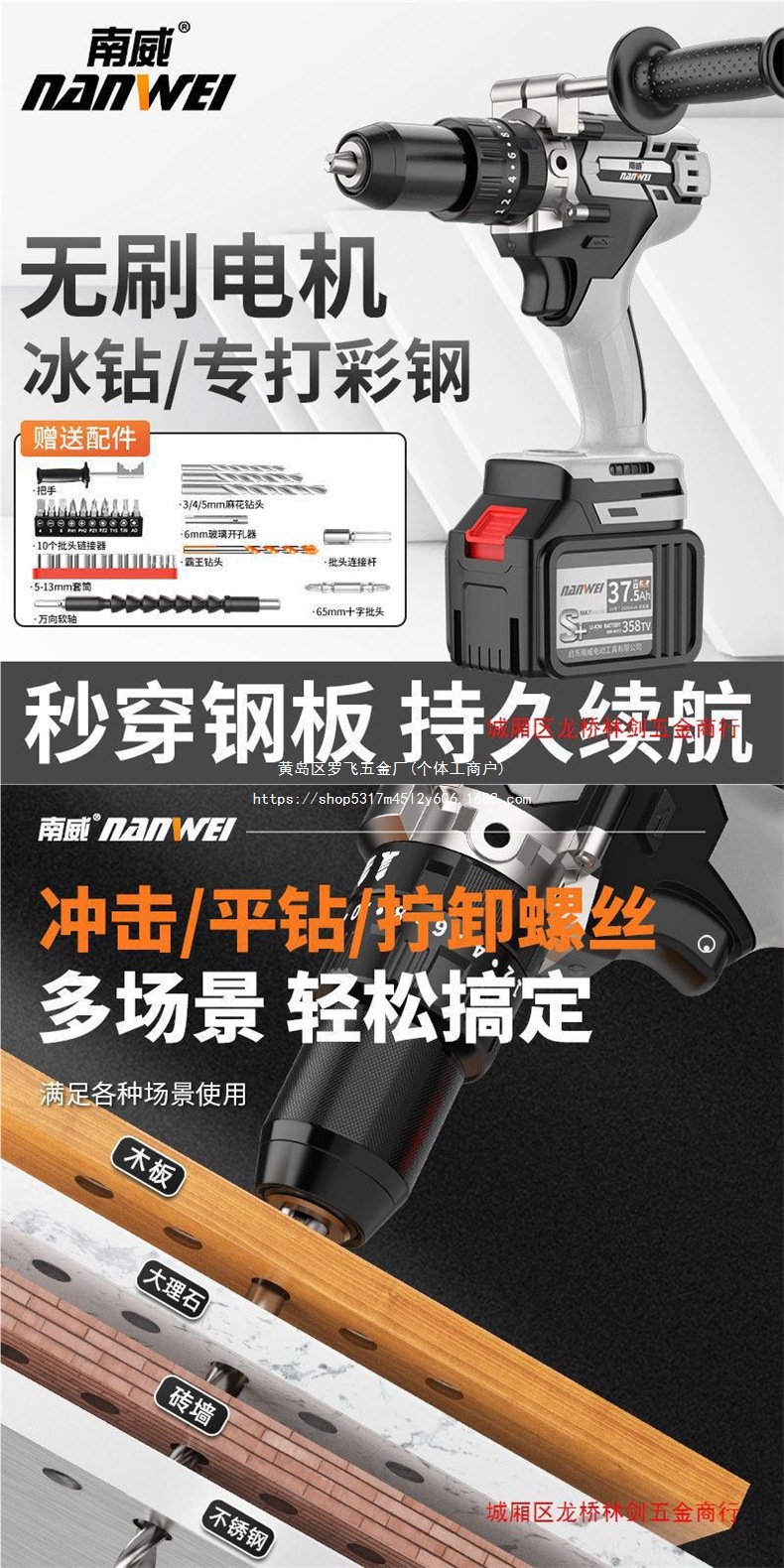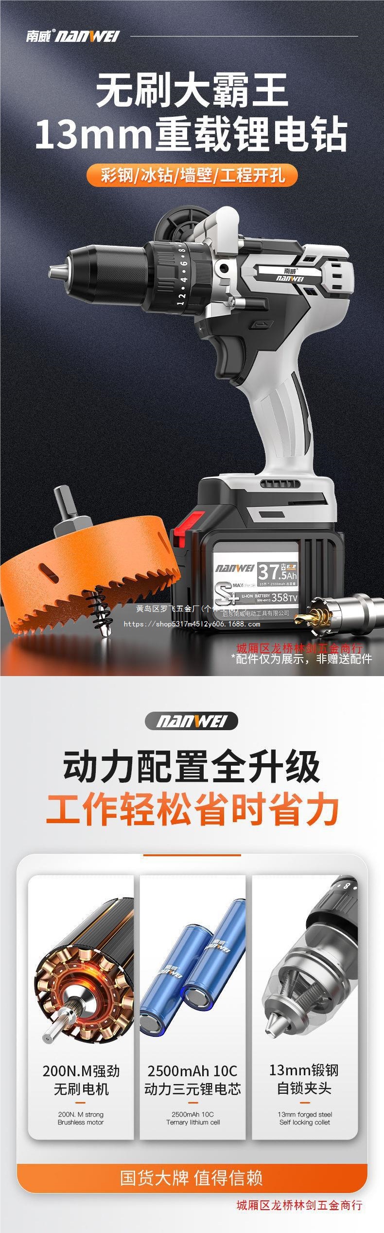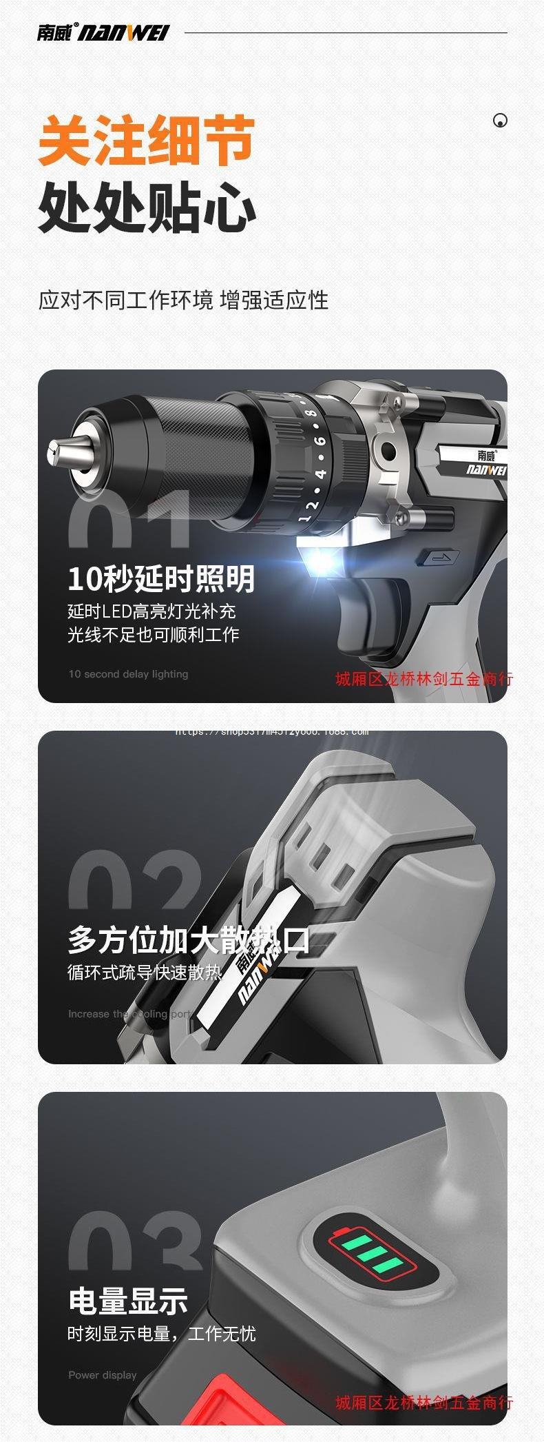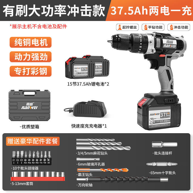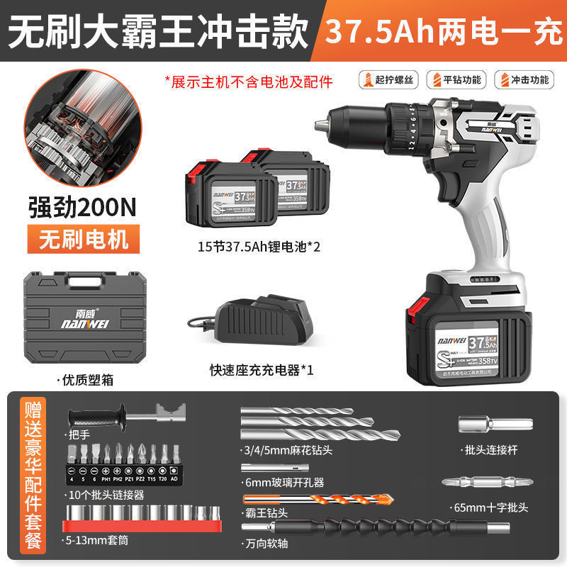Nanwei 고출력 브러시리스 리튬 배터리 드릴 충전식 드릴 가정용 충전식 핸드 건 드릴 손 전기 드릴 충격 드릴 턴 |스토어 가기