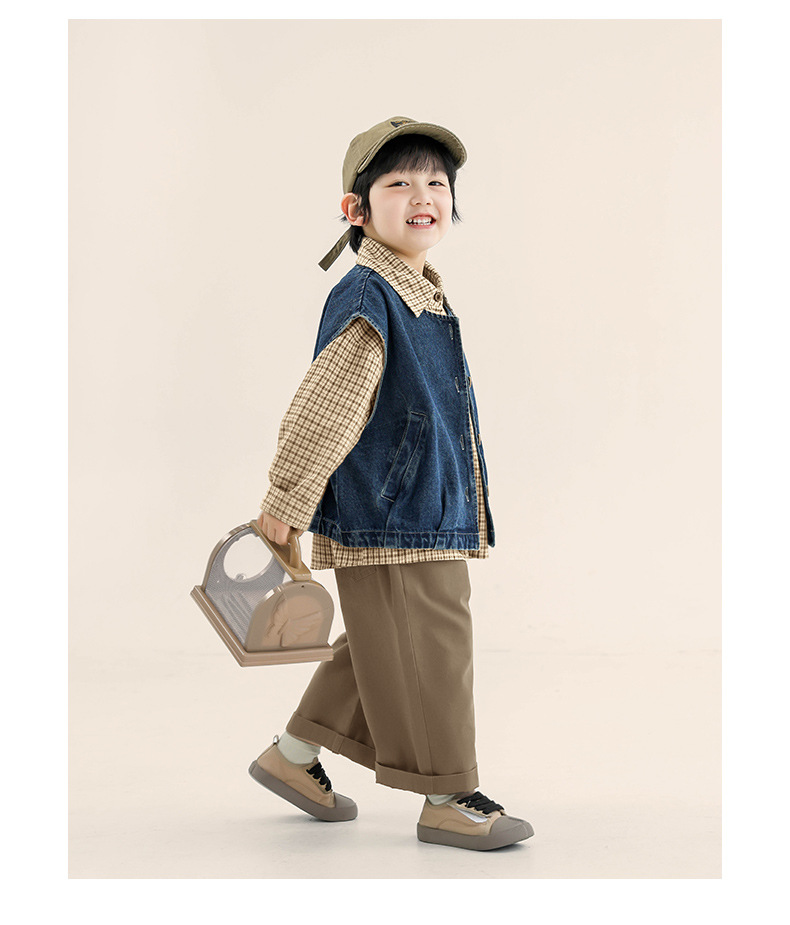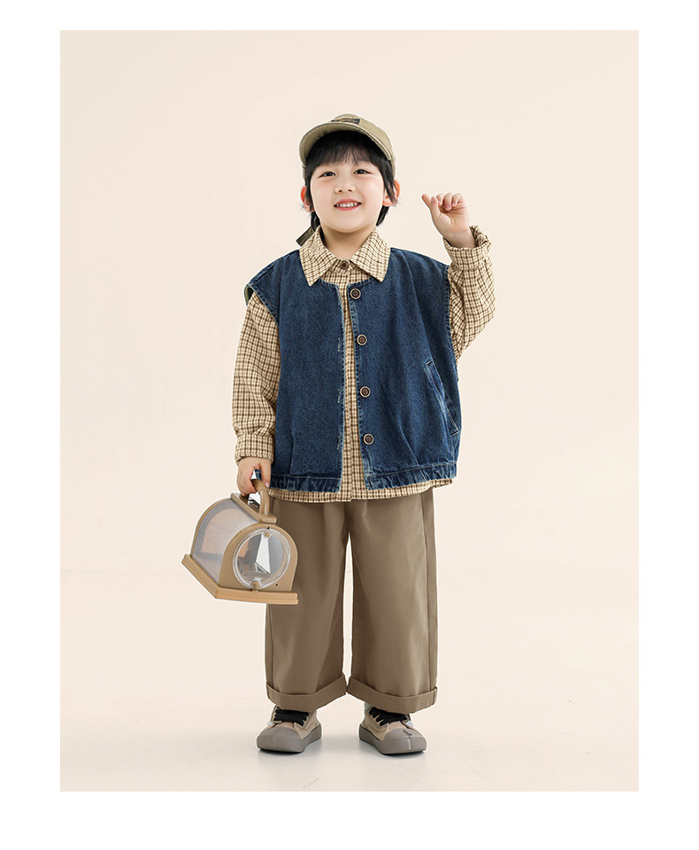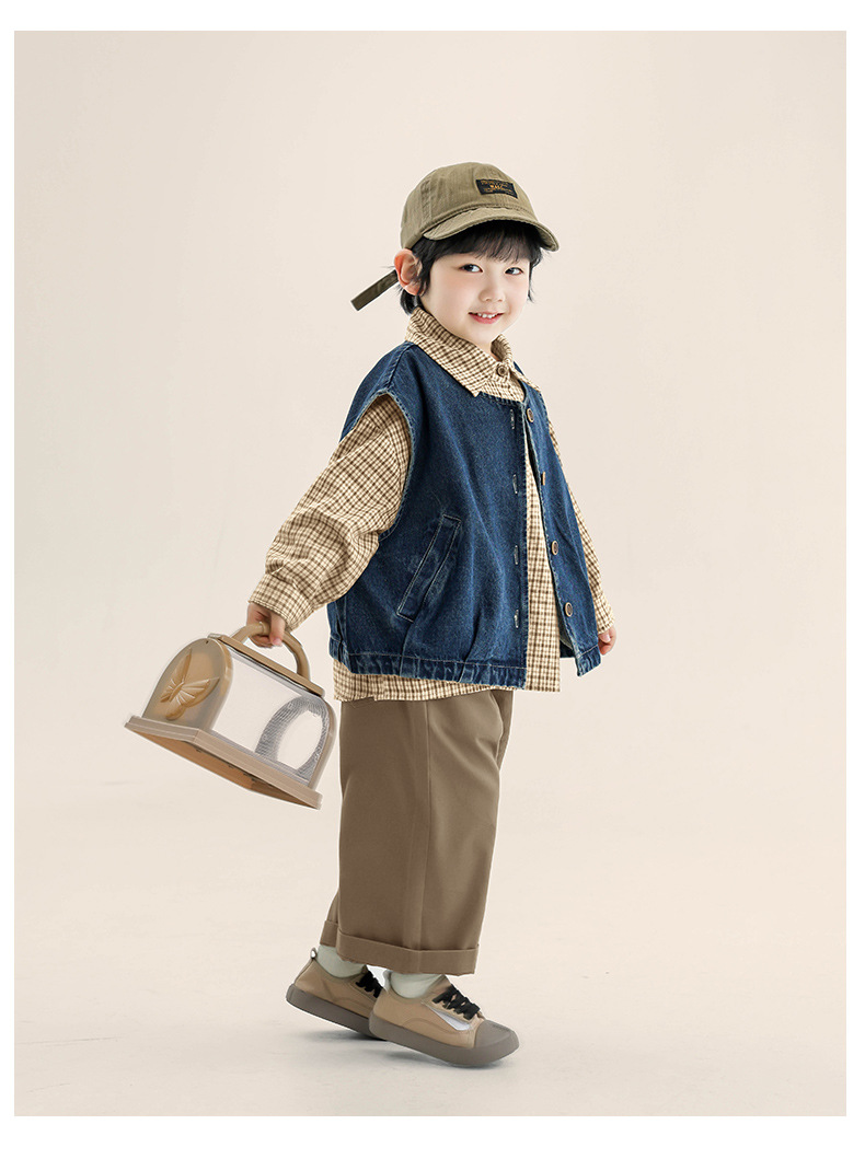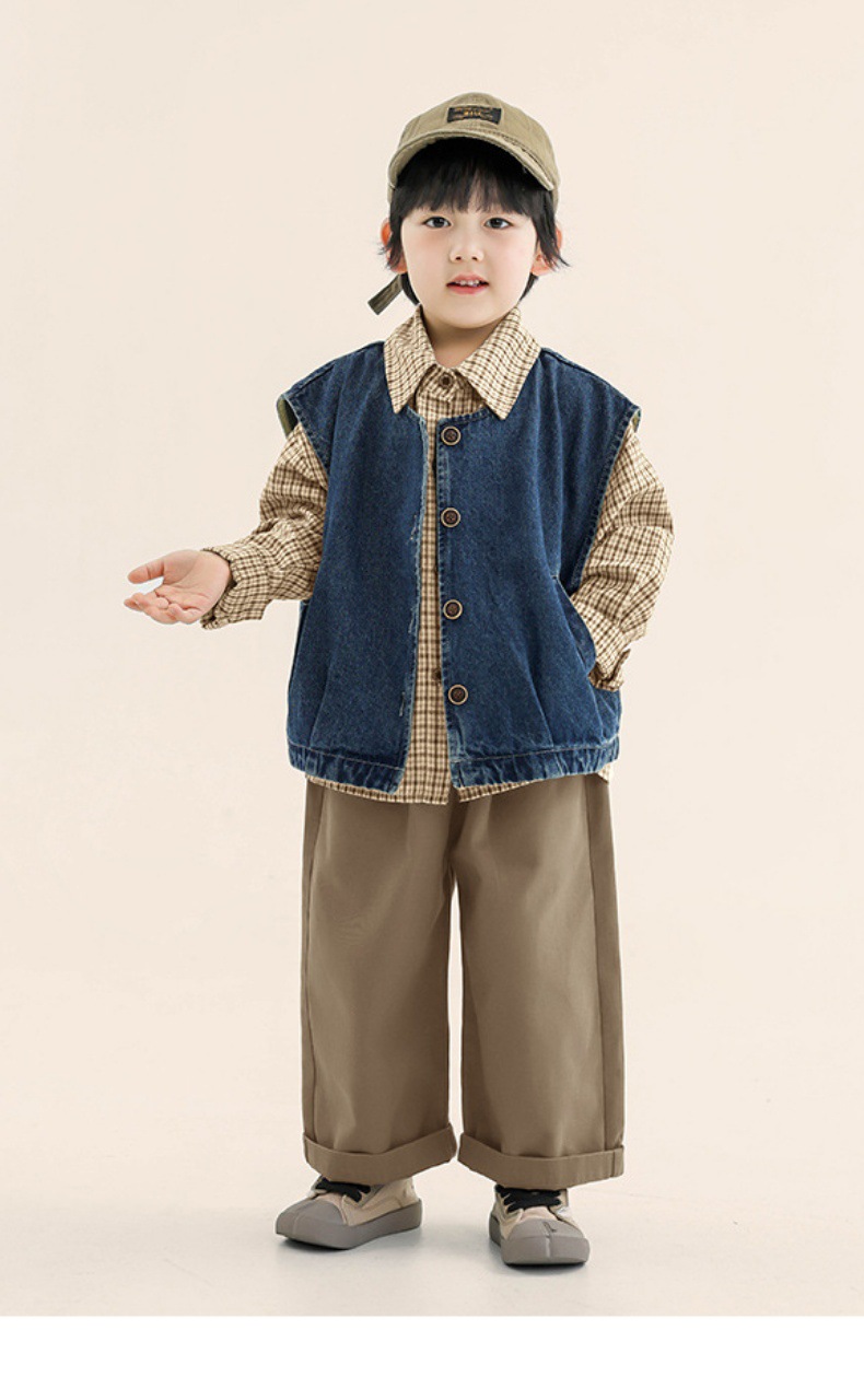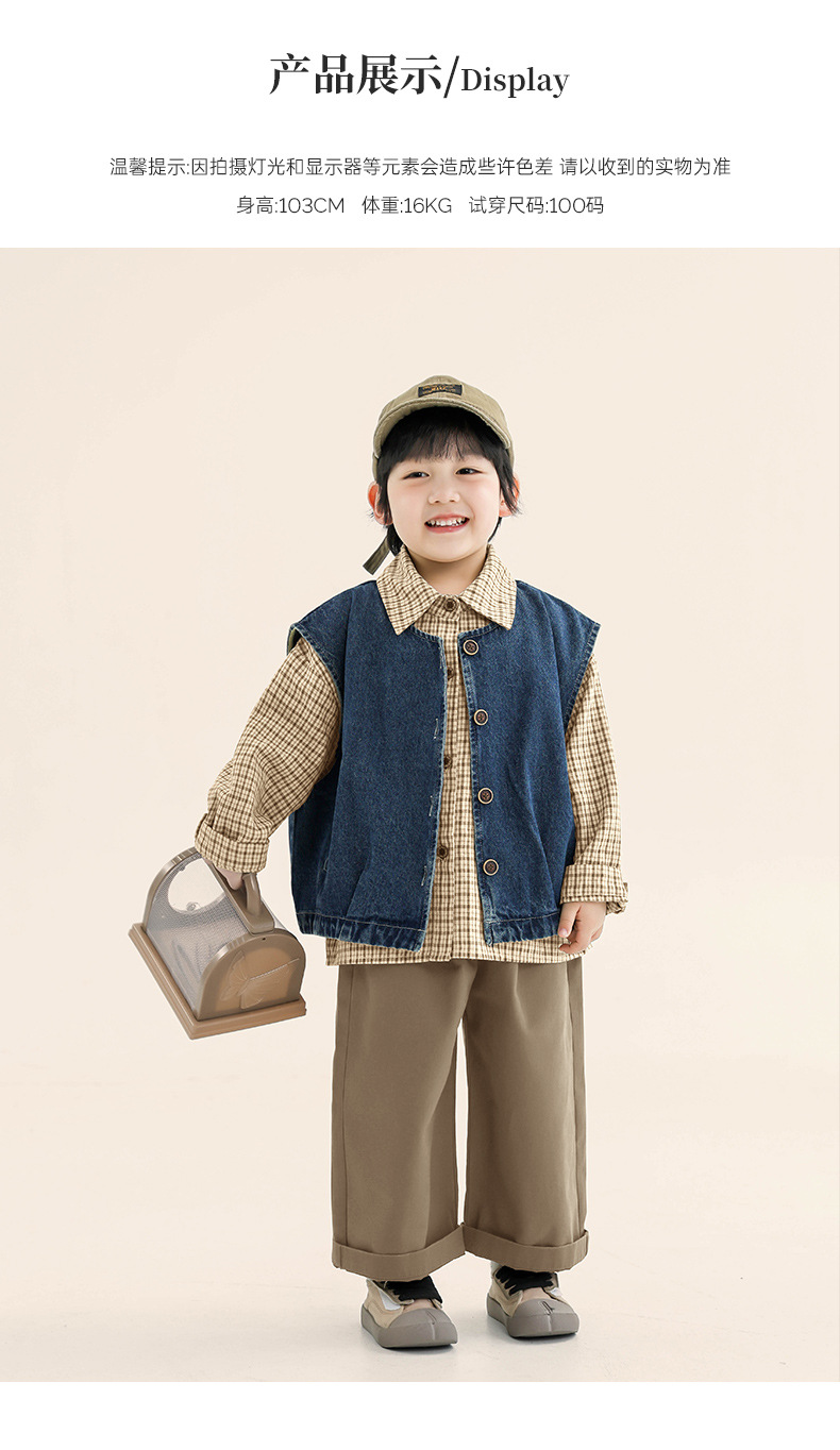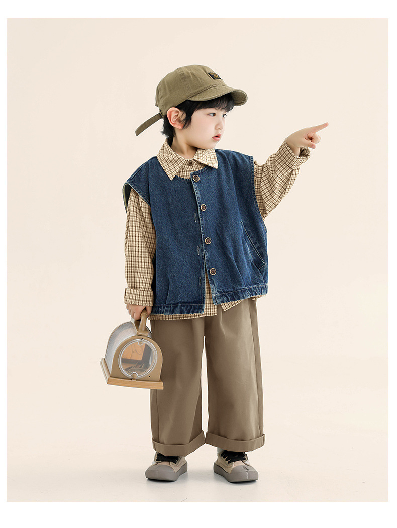 창궈 의류 남아 데님 조끼 아동용 한국 스타일 루즈핏 와이드 탑 중소형 아동용 아우터 조끼 봄 스타일스토어 가기