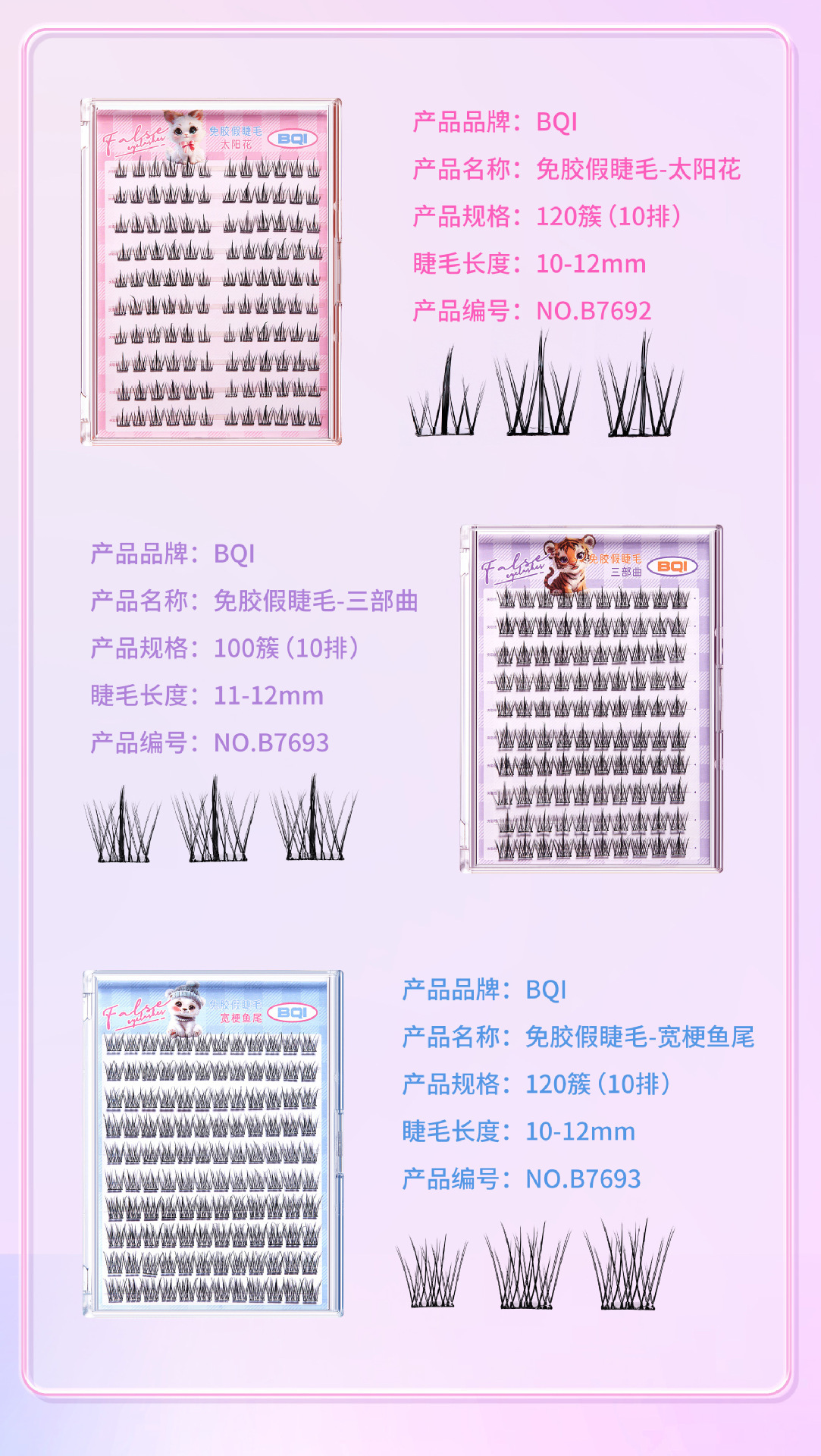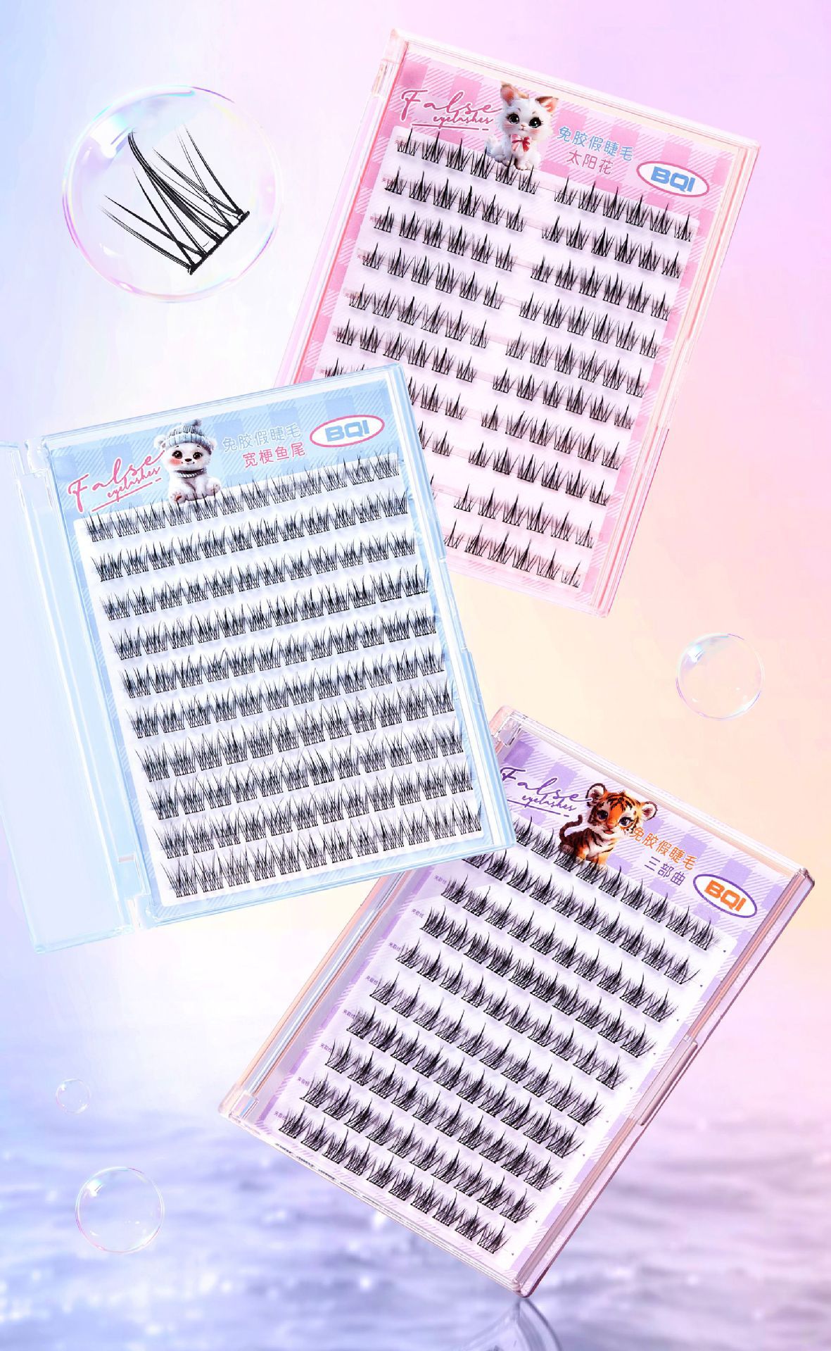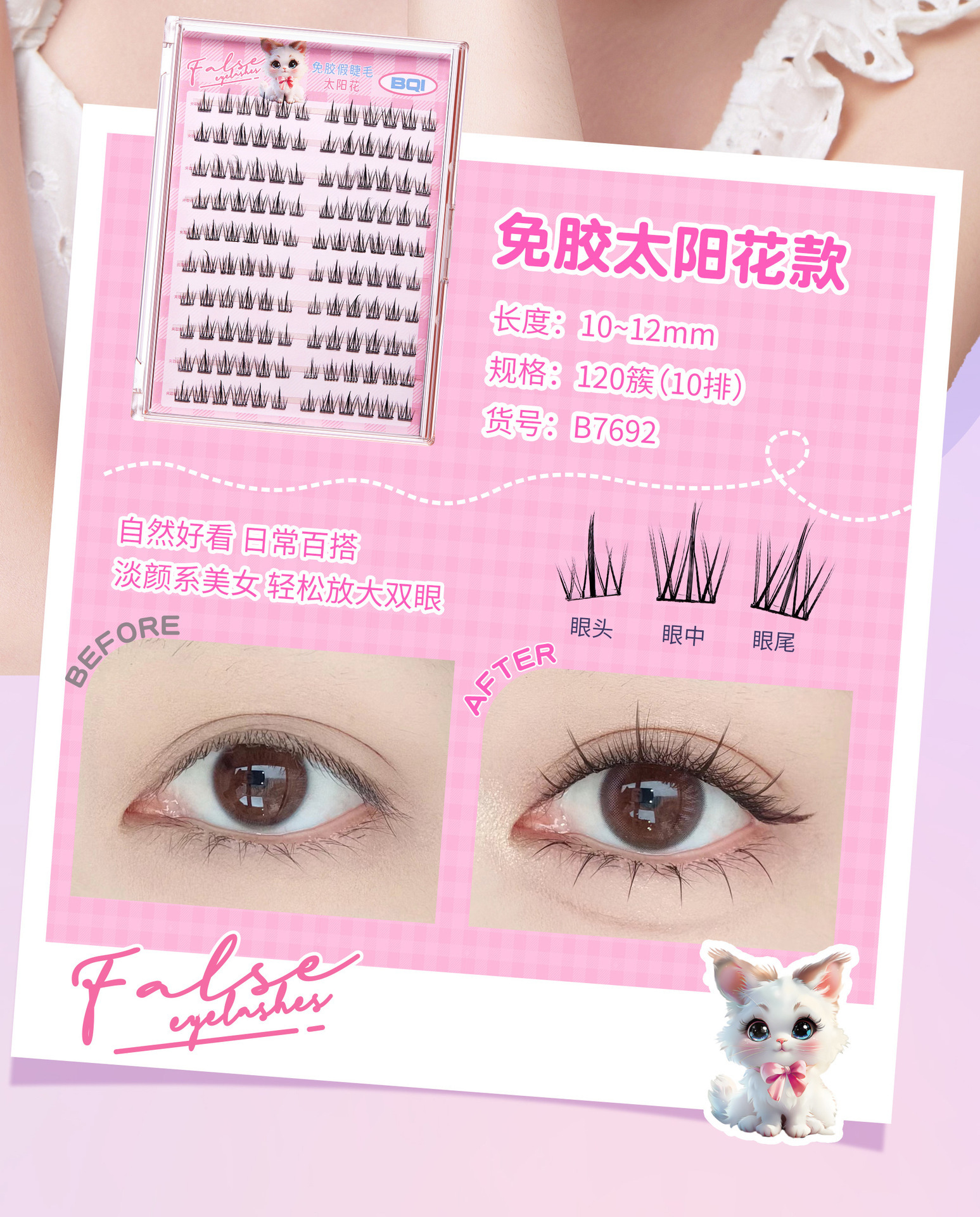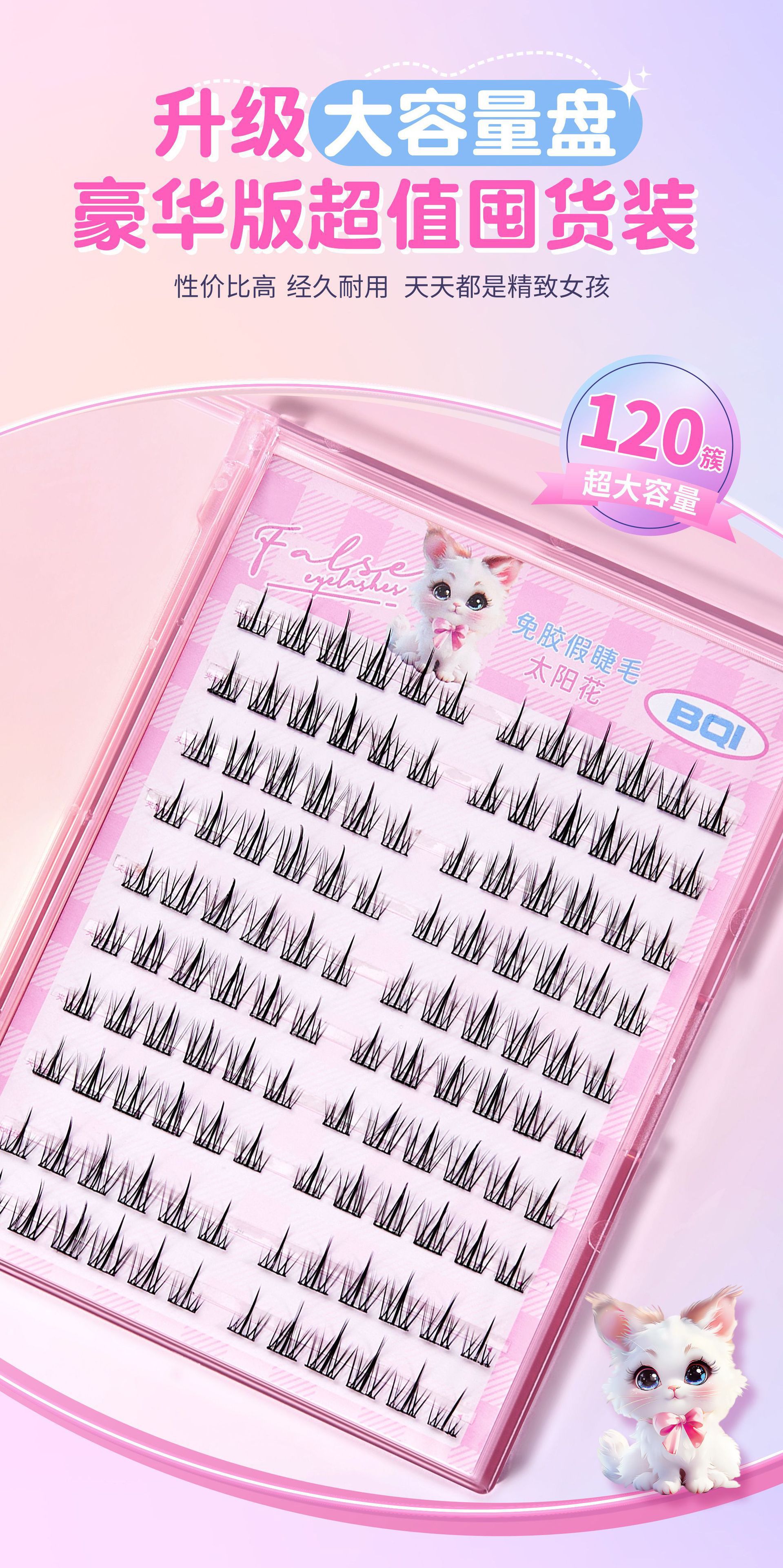 징루이 BQI 대용량 무접착 인조 속눈썹 게으른 사람들을 위한 해바라기 3부작 단일 클러스터 자연스러운 인조 속눈썹스토어 가기