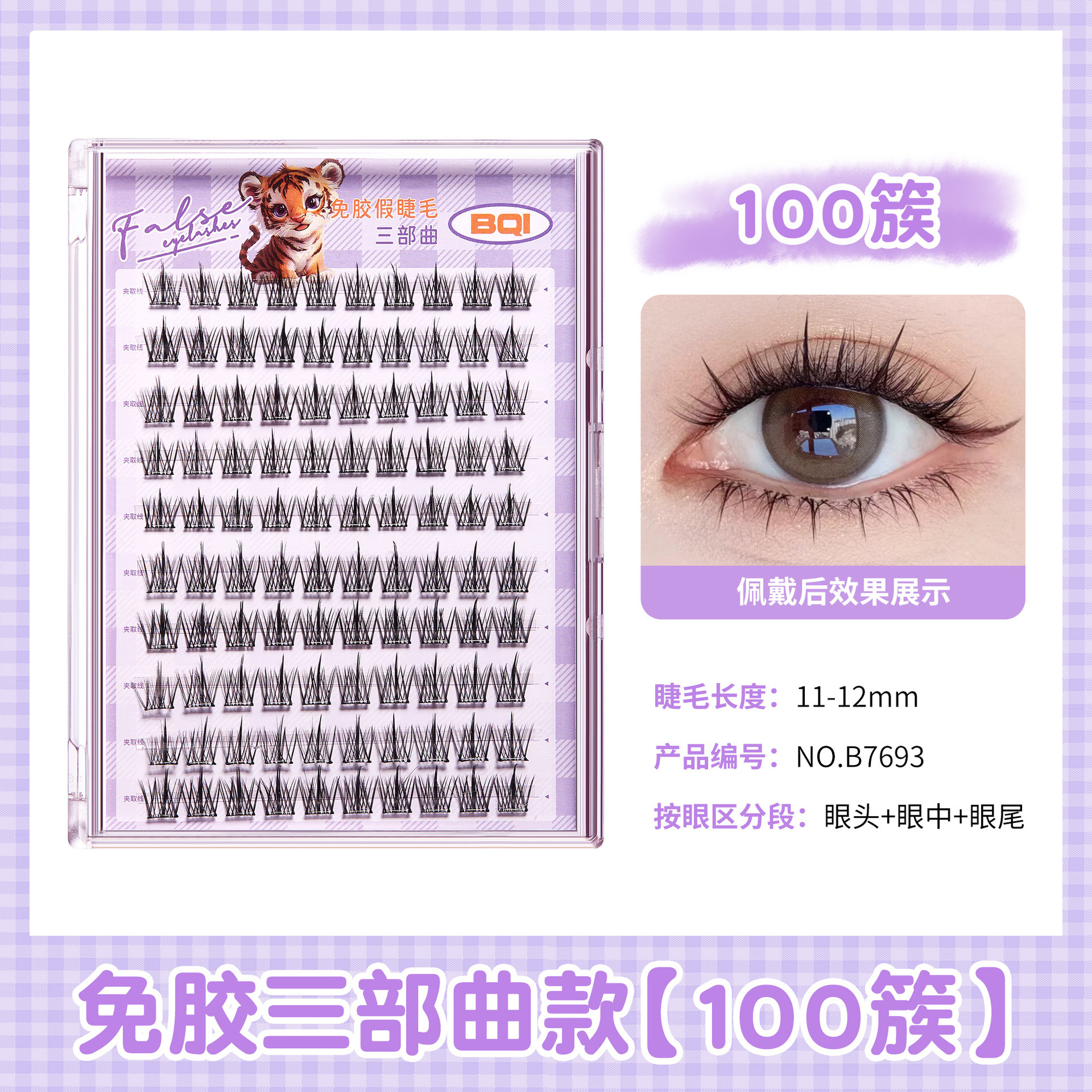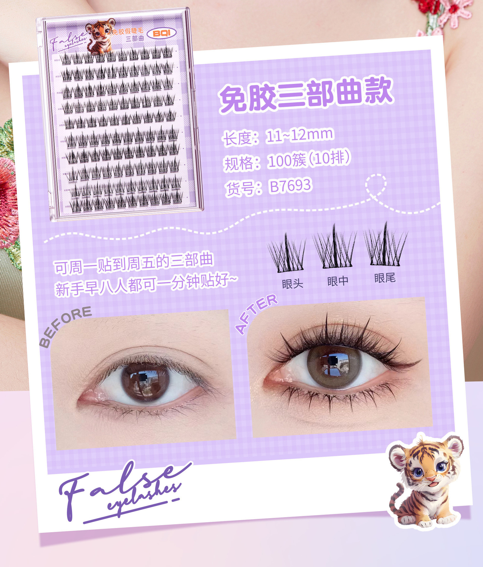 징루이 BQI 대용량 무접착 인조 속눈썹 게으른 사람들을 위한 해바라기 3부작 단일 클러스터 자연스러운 인조 속눈썹