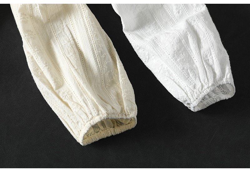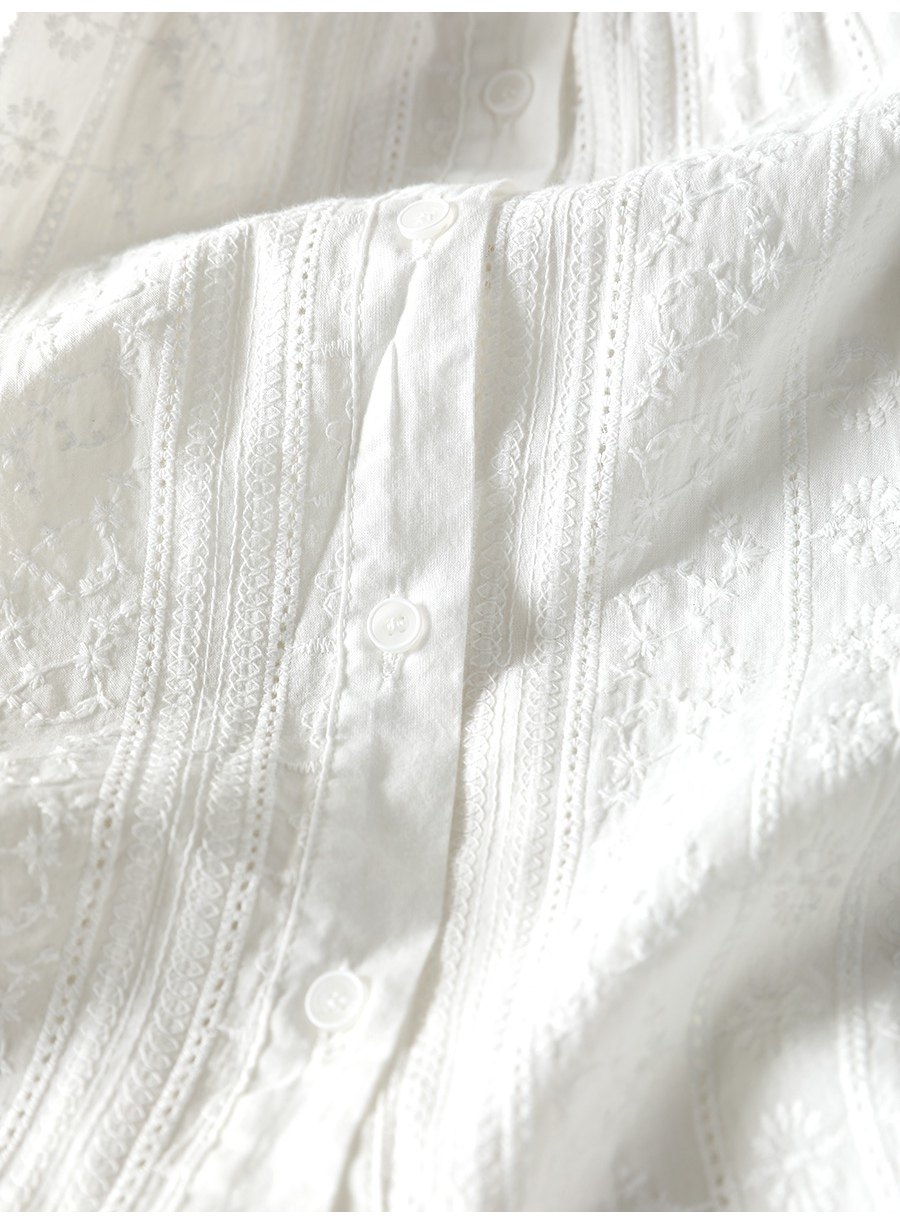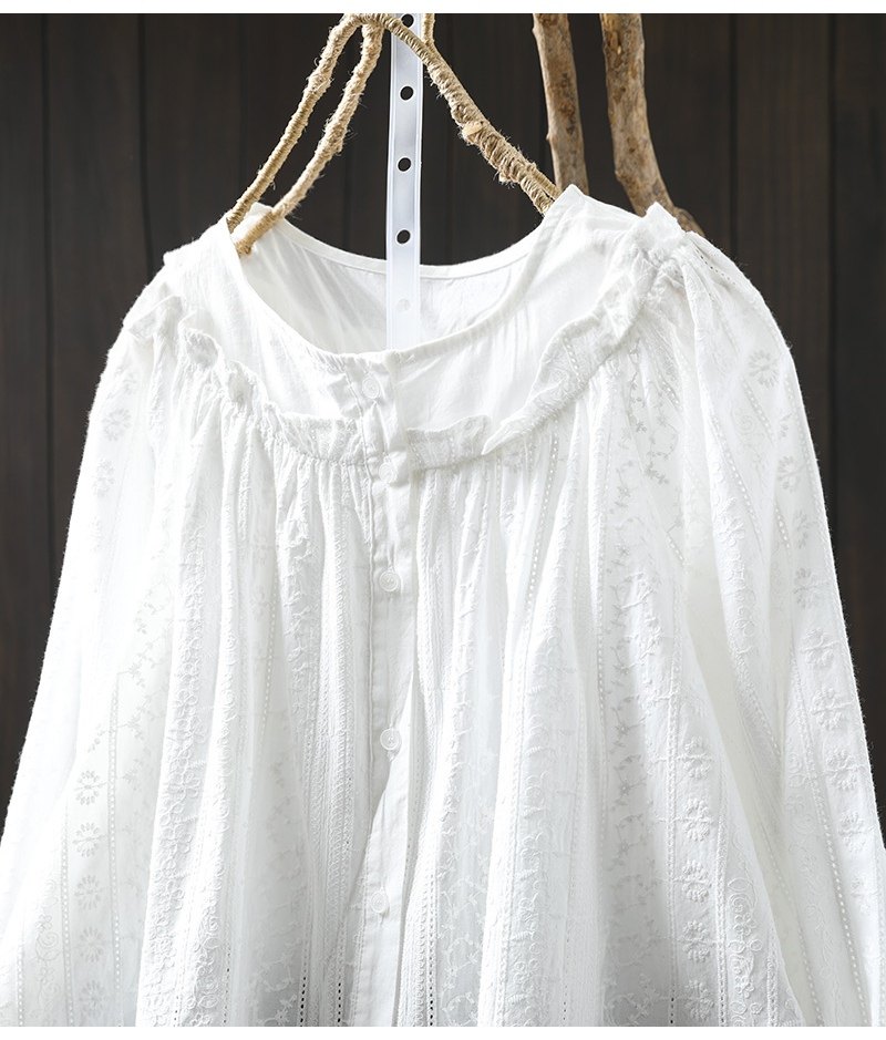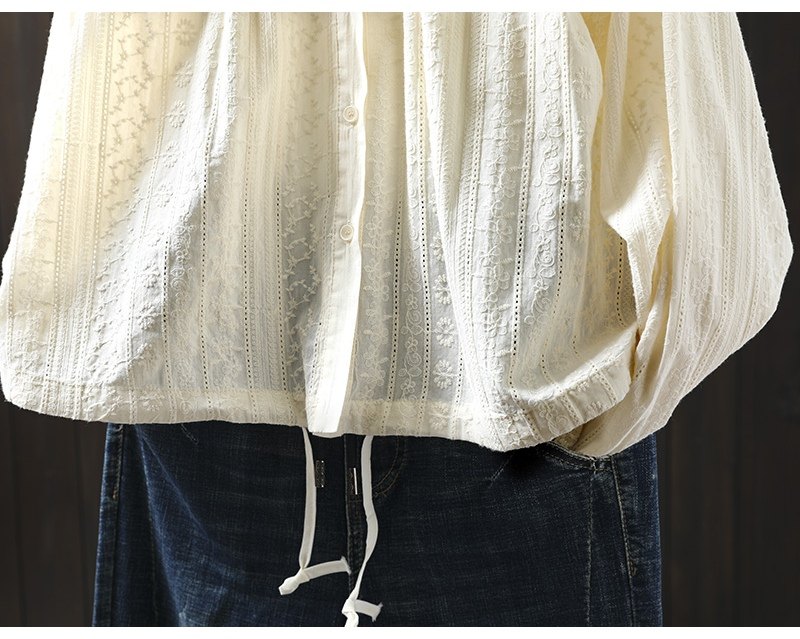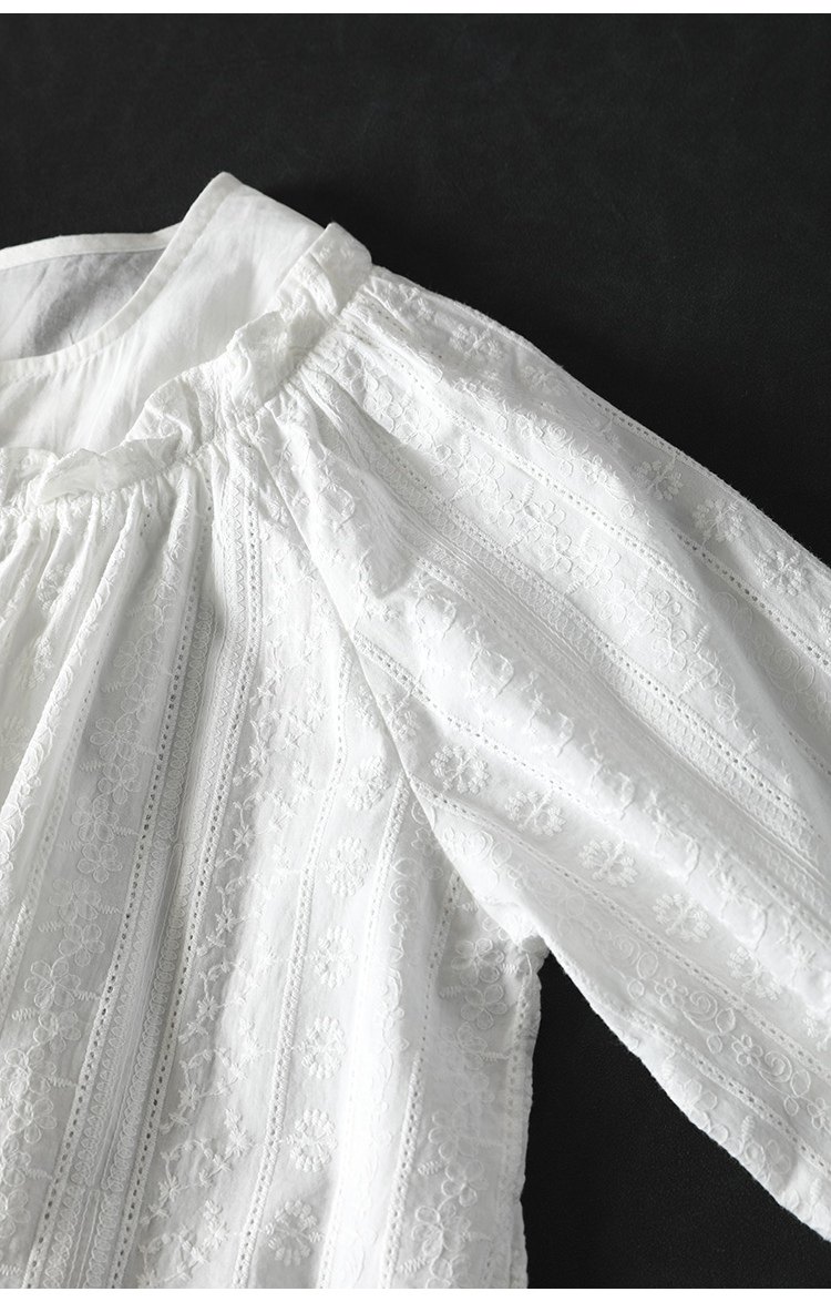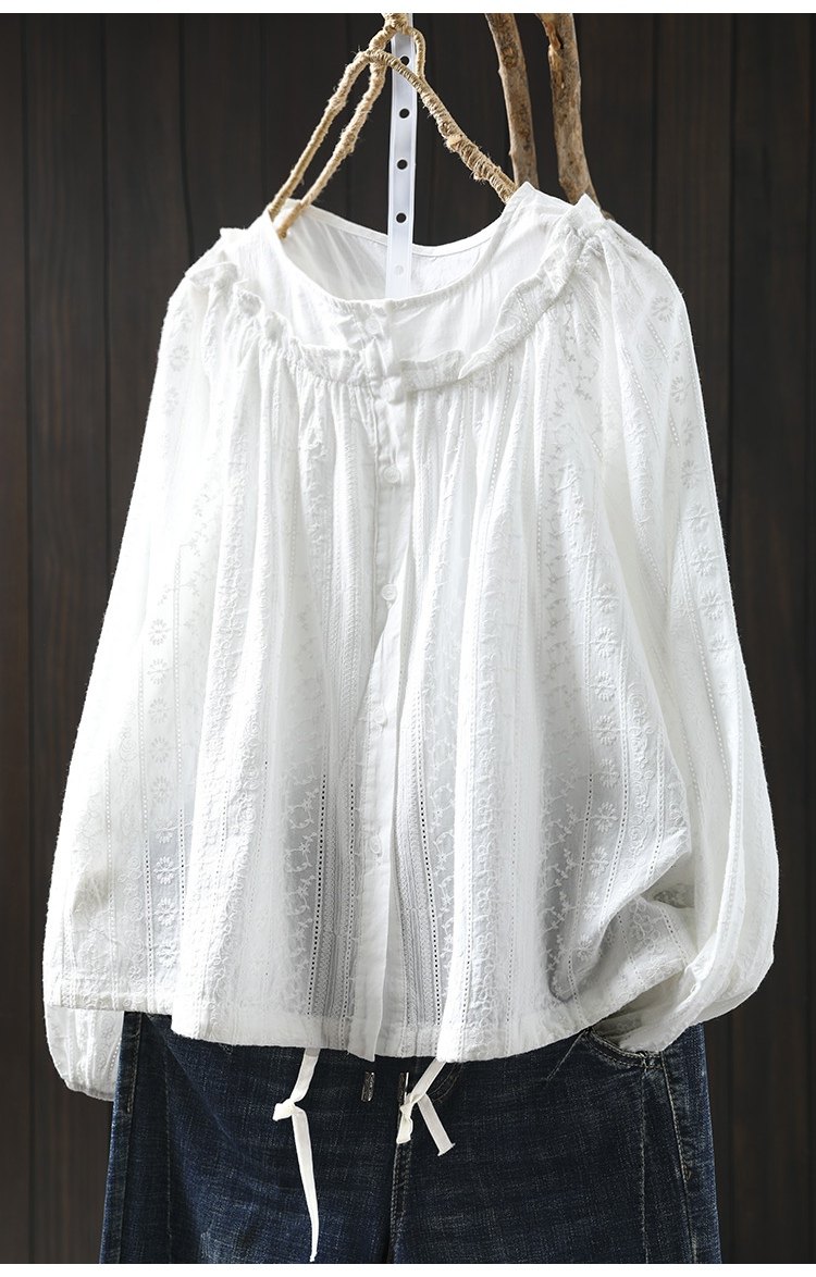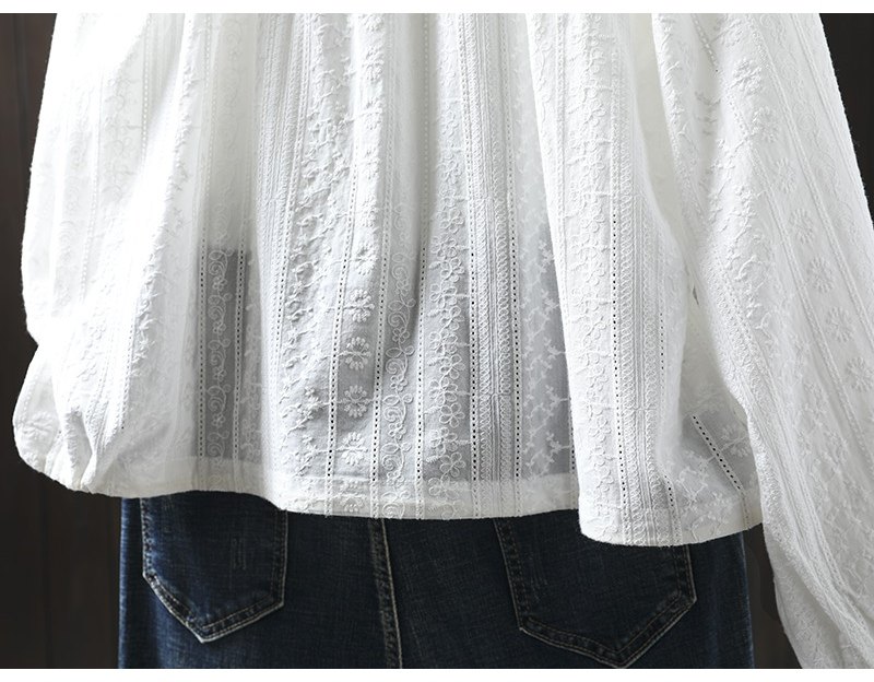봄 새로운 자수 자카드 코튼 화이트 셔츠 여성 긴 소매 느슨한 셔츠 3633