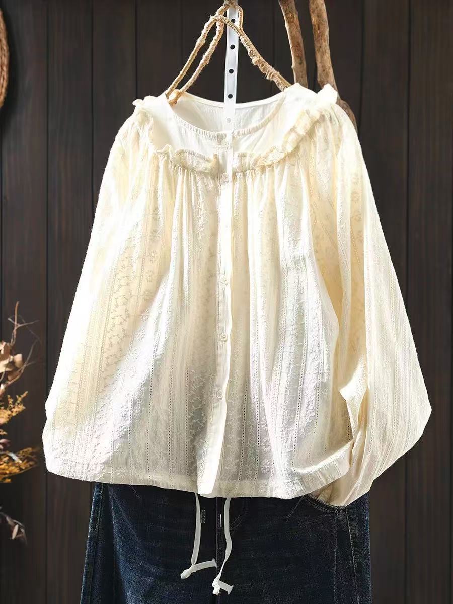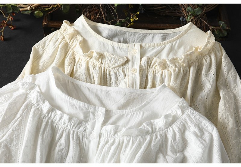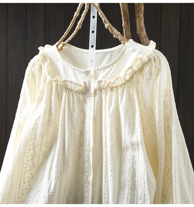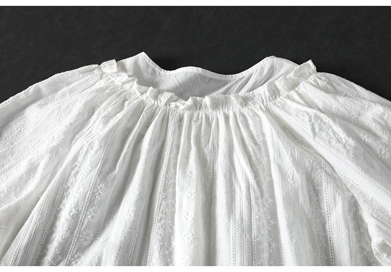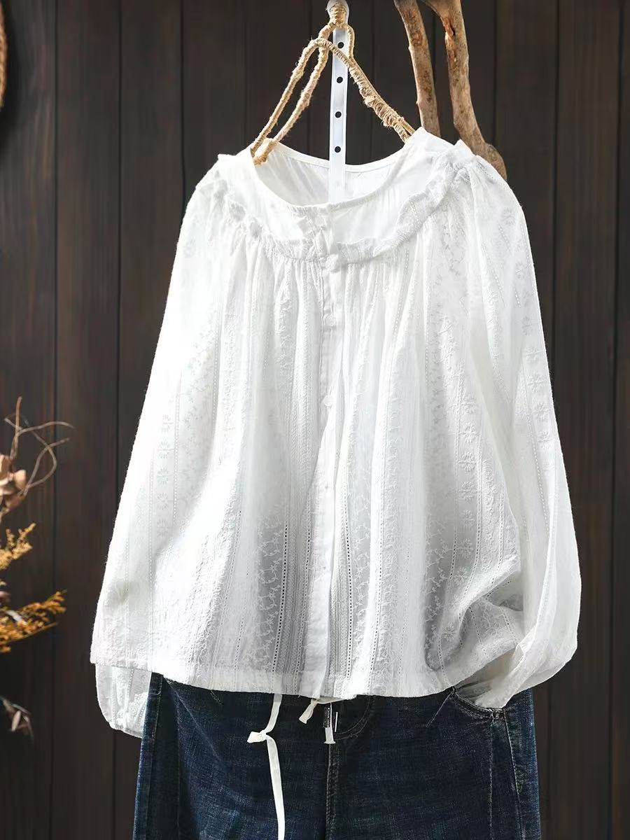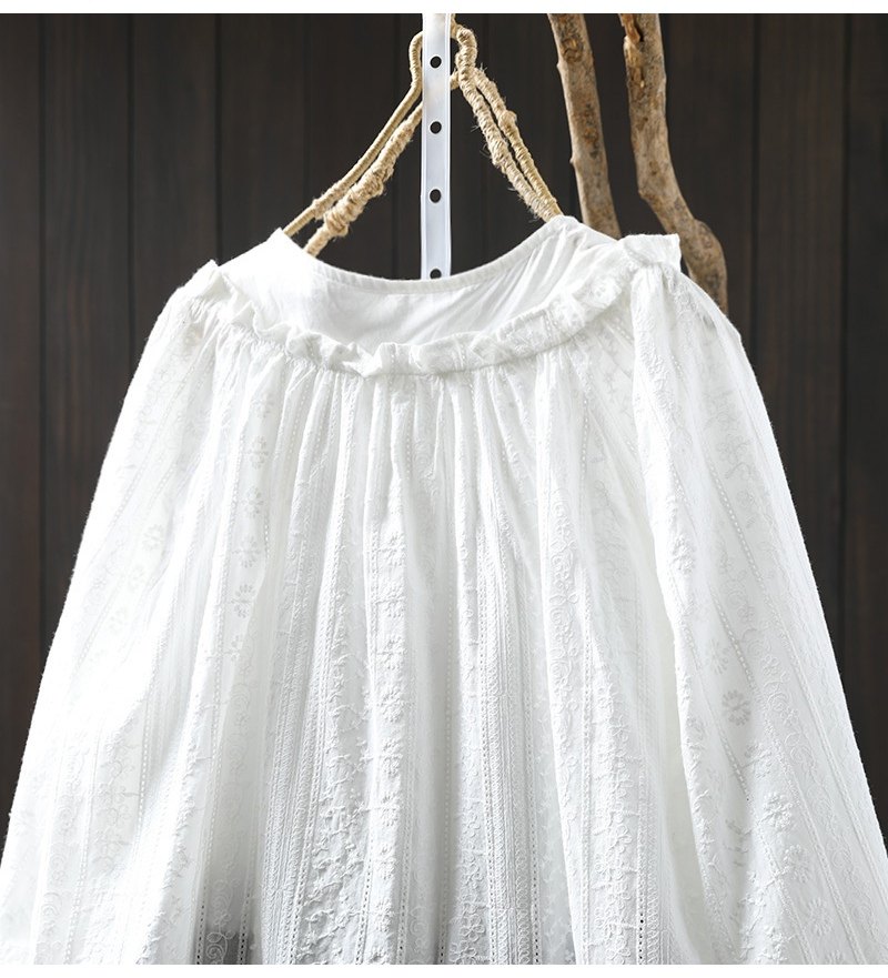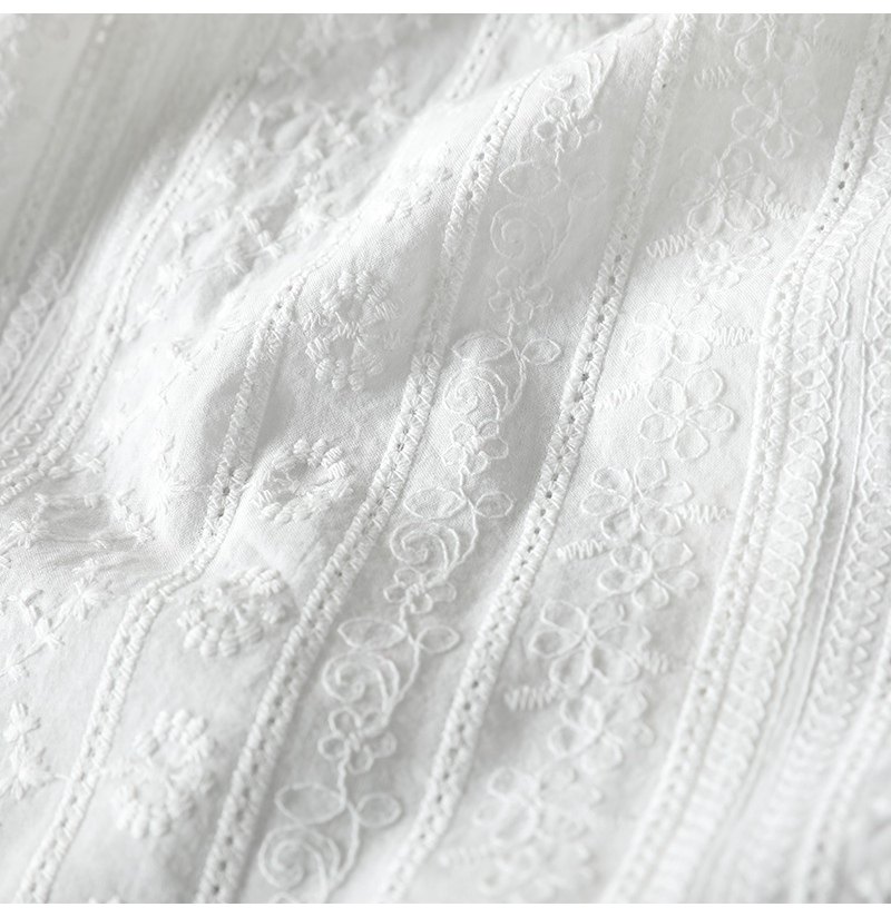 봄 새로운 자수 자카드 코튼 화이트 셔츠 여성 긴 소매 느슨한 셔츠 3633