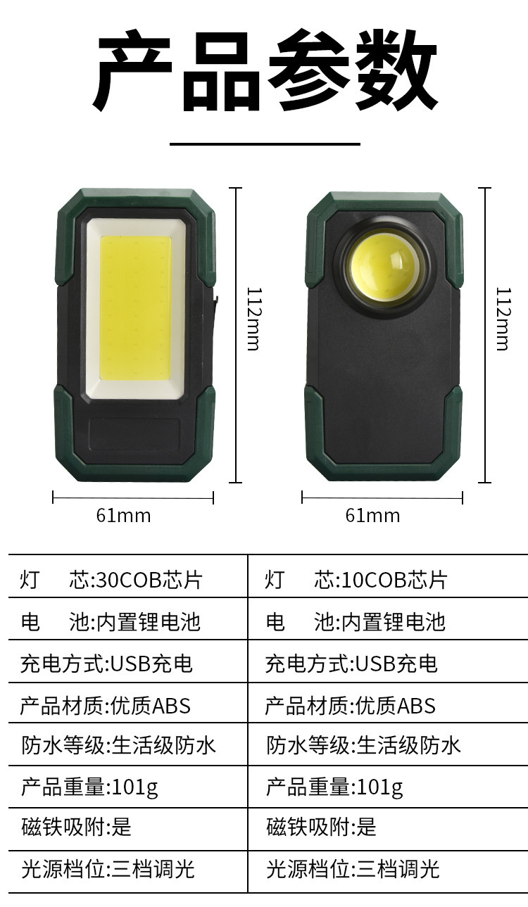 크로스 국경 야외 조명 휴대용 휴대용 미니 COB 작업 빛 홍수 빛 수리 빛 usb 충전 야간 라이더