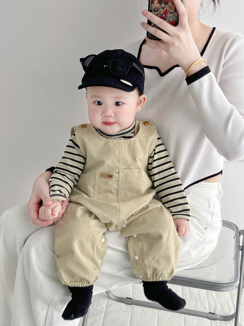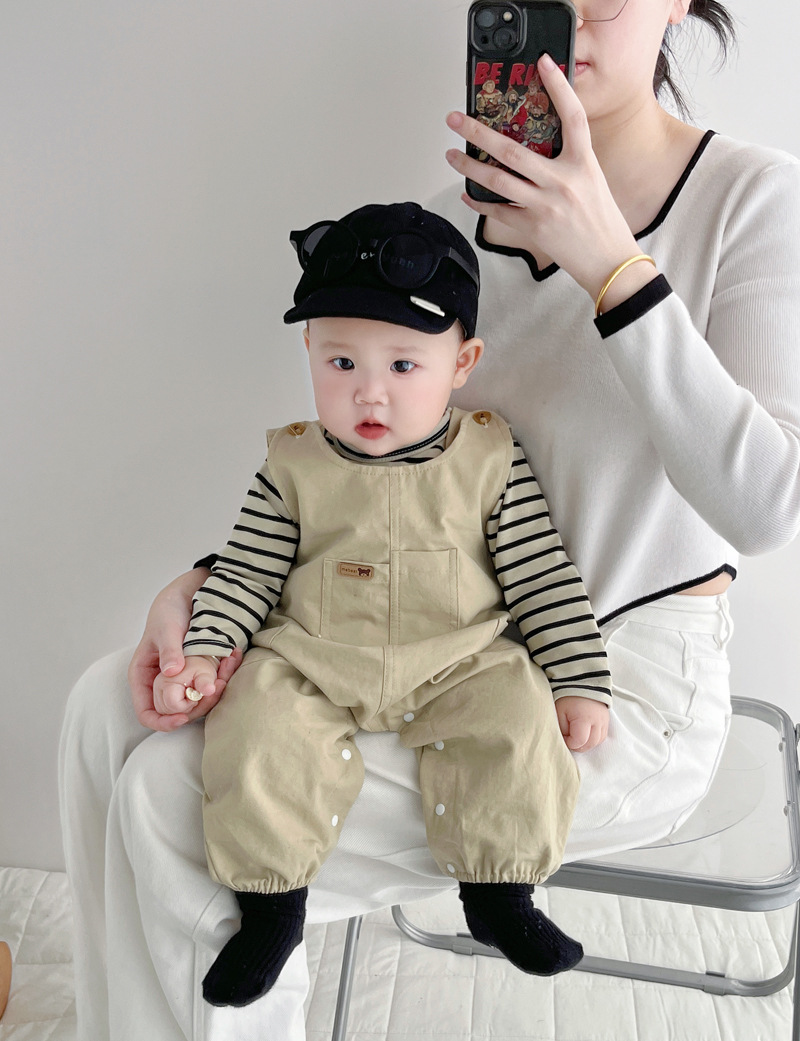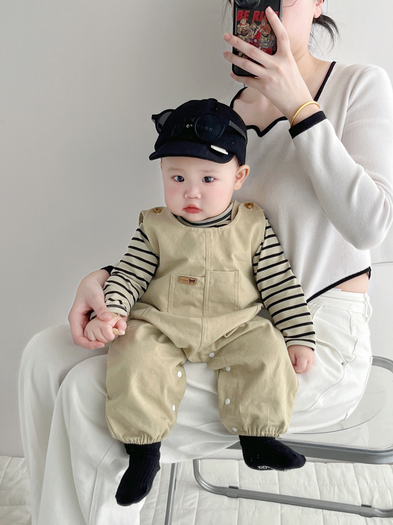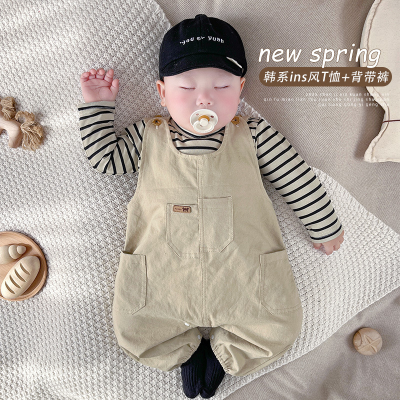 [티셔츠 멜빵 세트] 한국 아기 옷 2 장 신생아 남녀 아기 봄옷스토어 가기