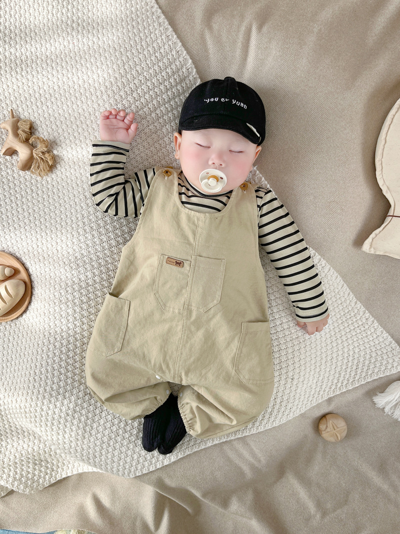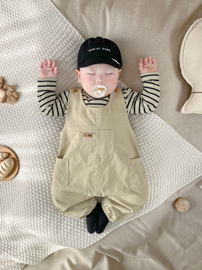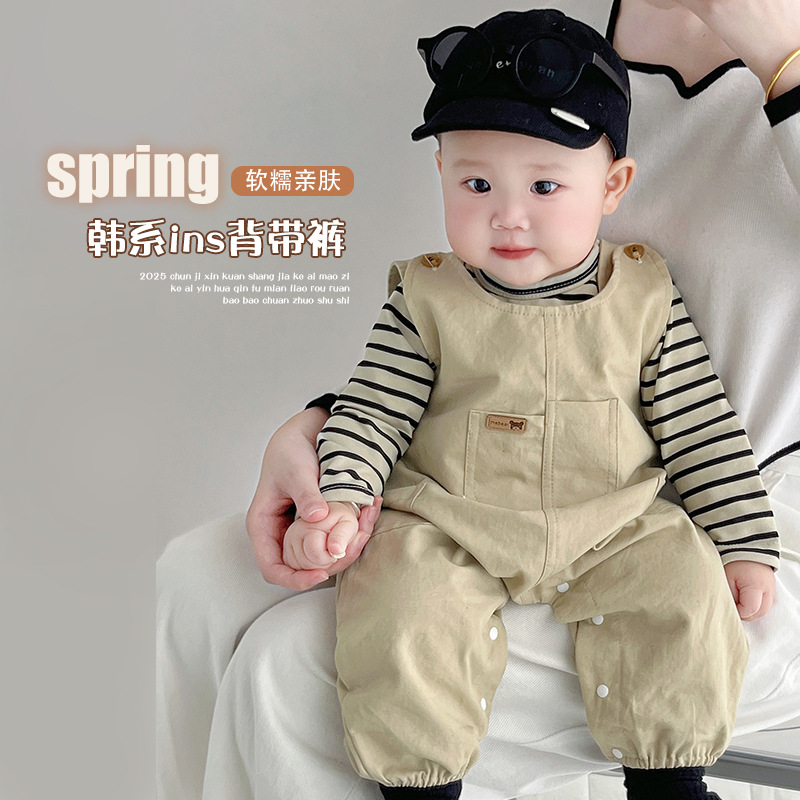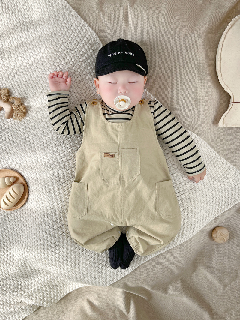 [티셔츠 멜빵 세트] 한국 아기 옷 2 장 신생아 남녀 아기 봄옷스토어 가기