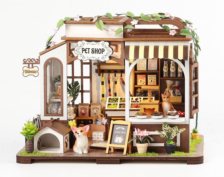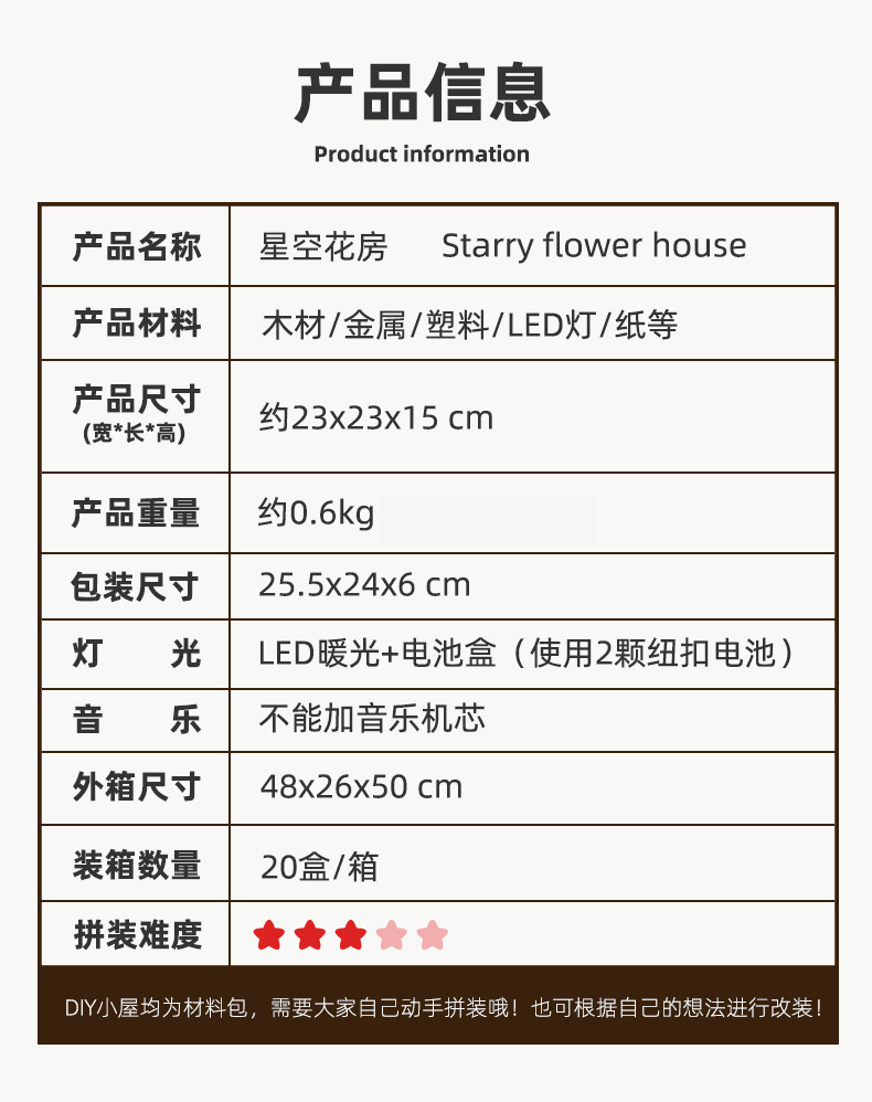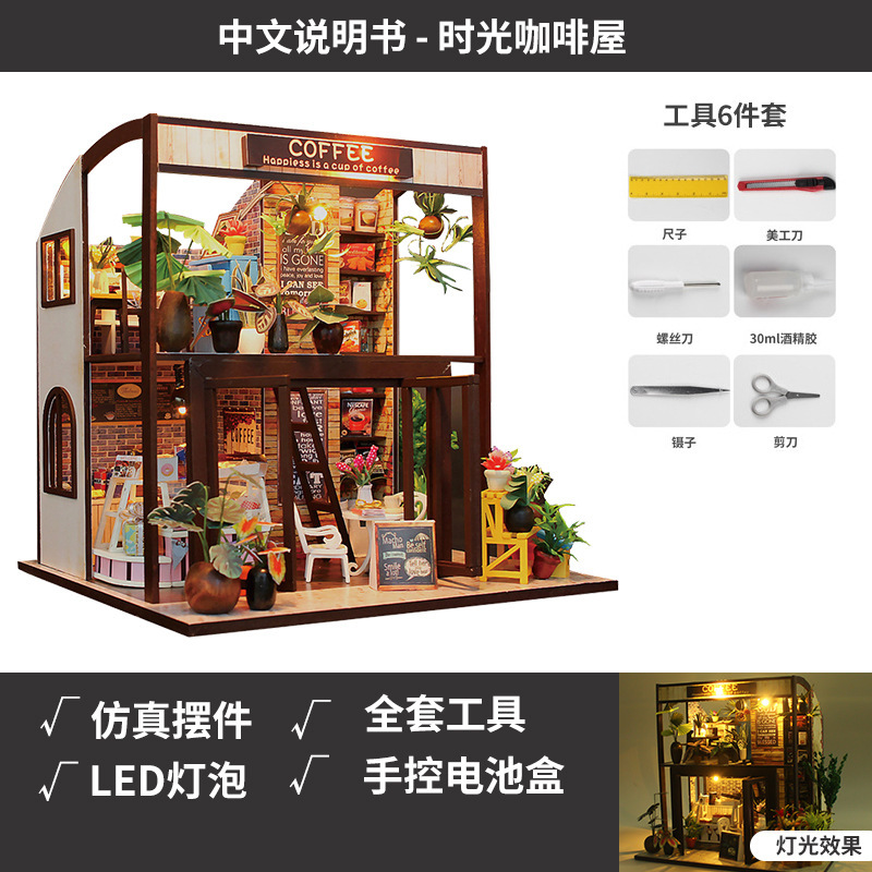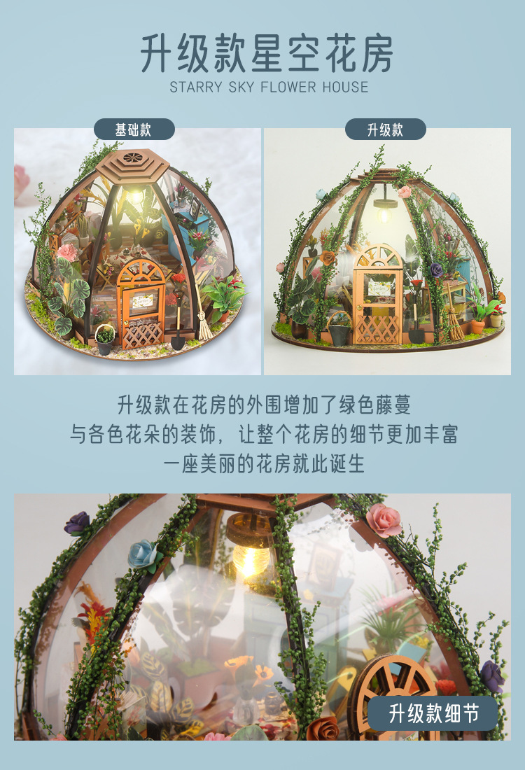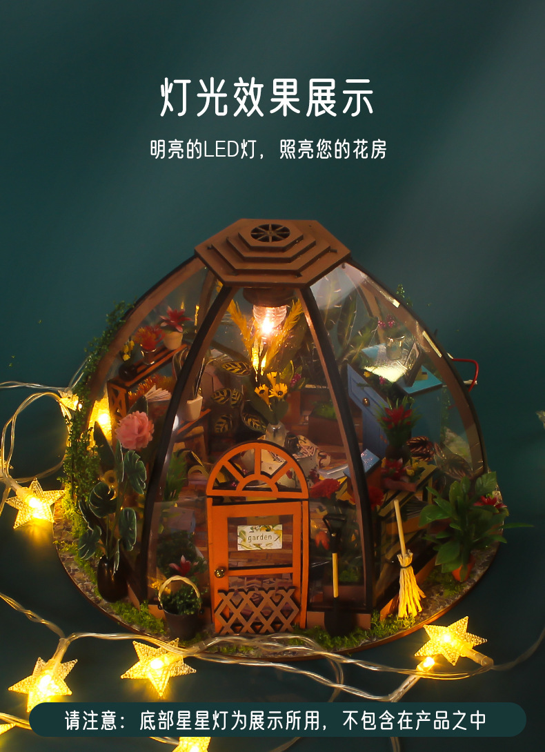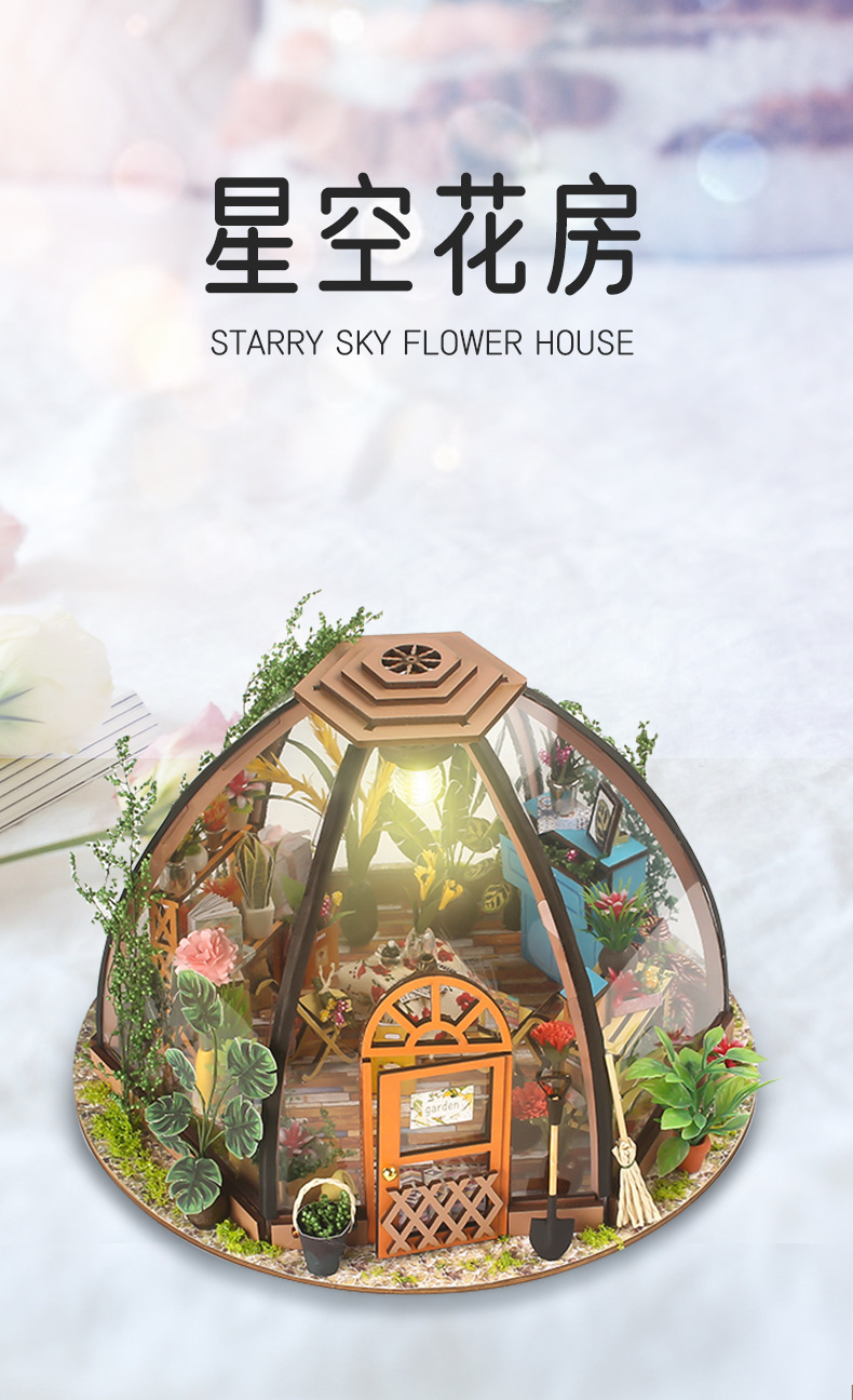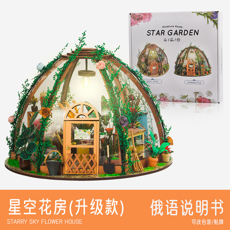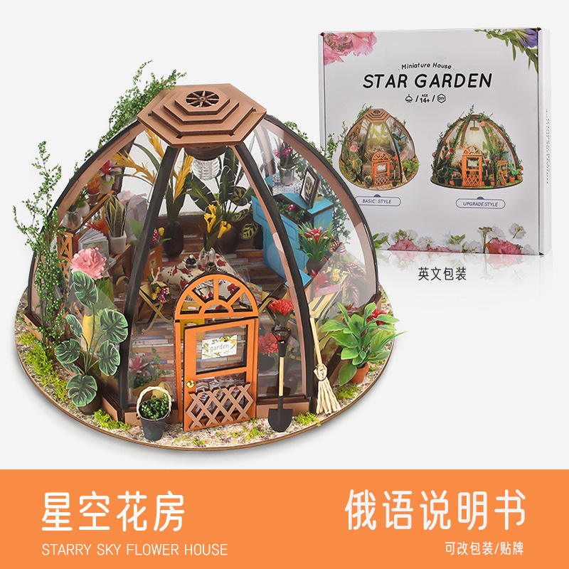 국경 수제 DIY 캐빈 별이 빛나는 하늘 꽃 집 3d 작은 집 건물 모델 장식품 나무 조립 장난감 선물스토어 가기