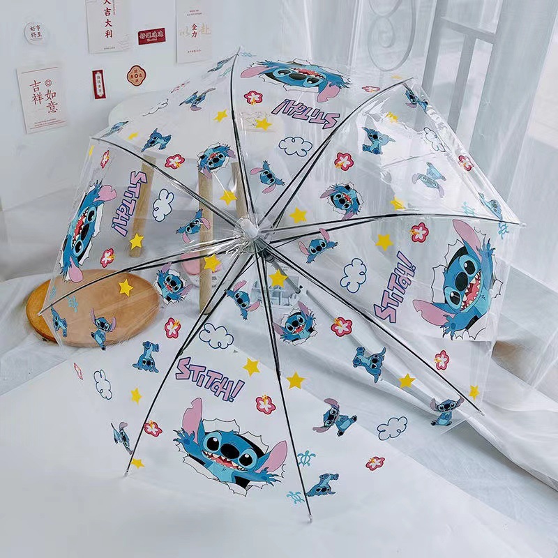 스티치 풀 자동 투명 우산 만화 애니메이션 온라인 축하 접기 3 배 우산 햇빛 검은 접착제 우산 학생들을위한스토어 가기
