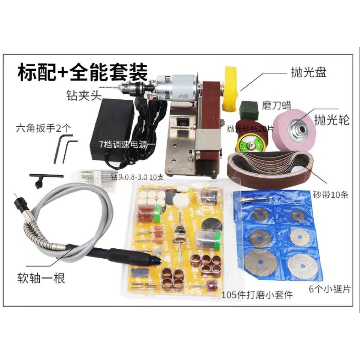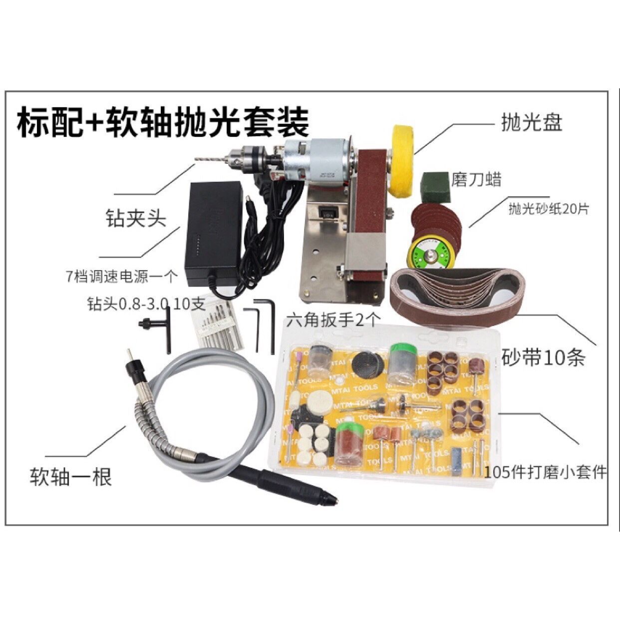 • 15도 고정 각도 [표준 구성 + 드릴 척 + 연마 휠]