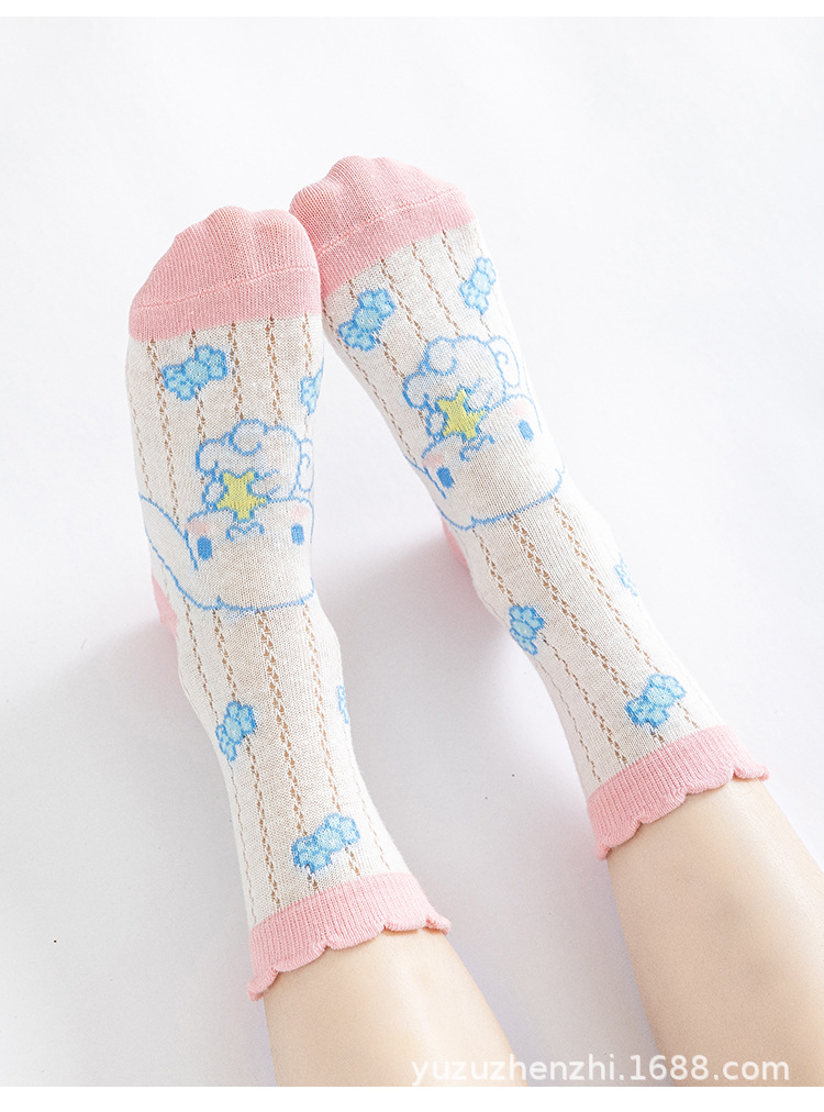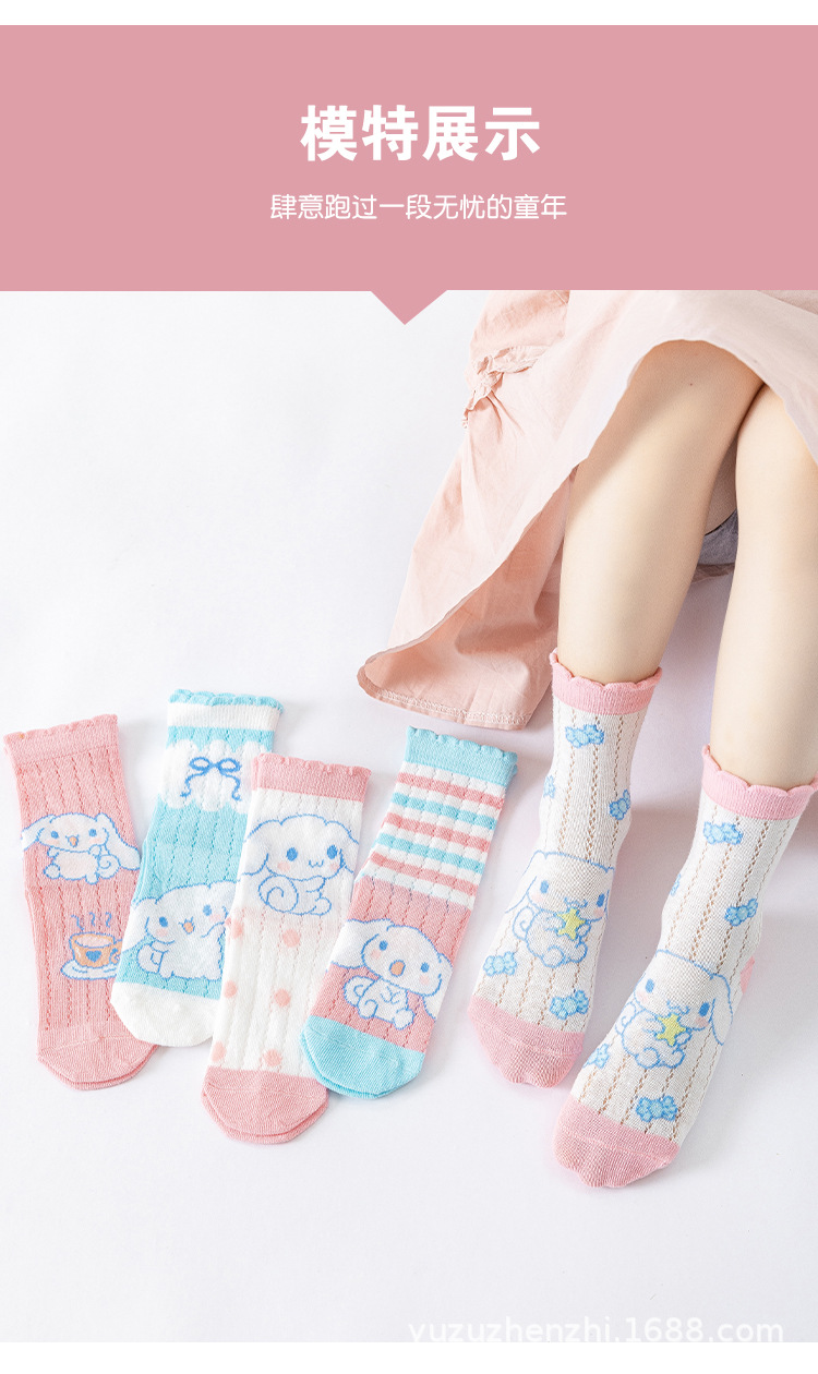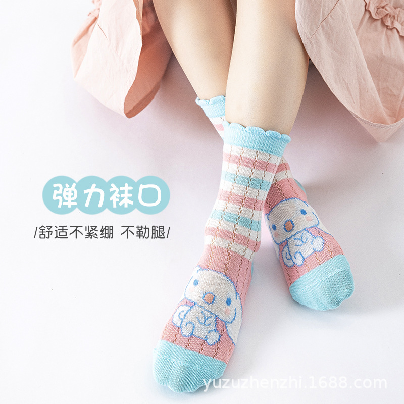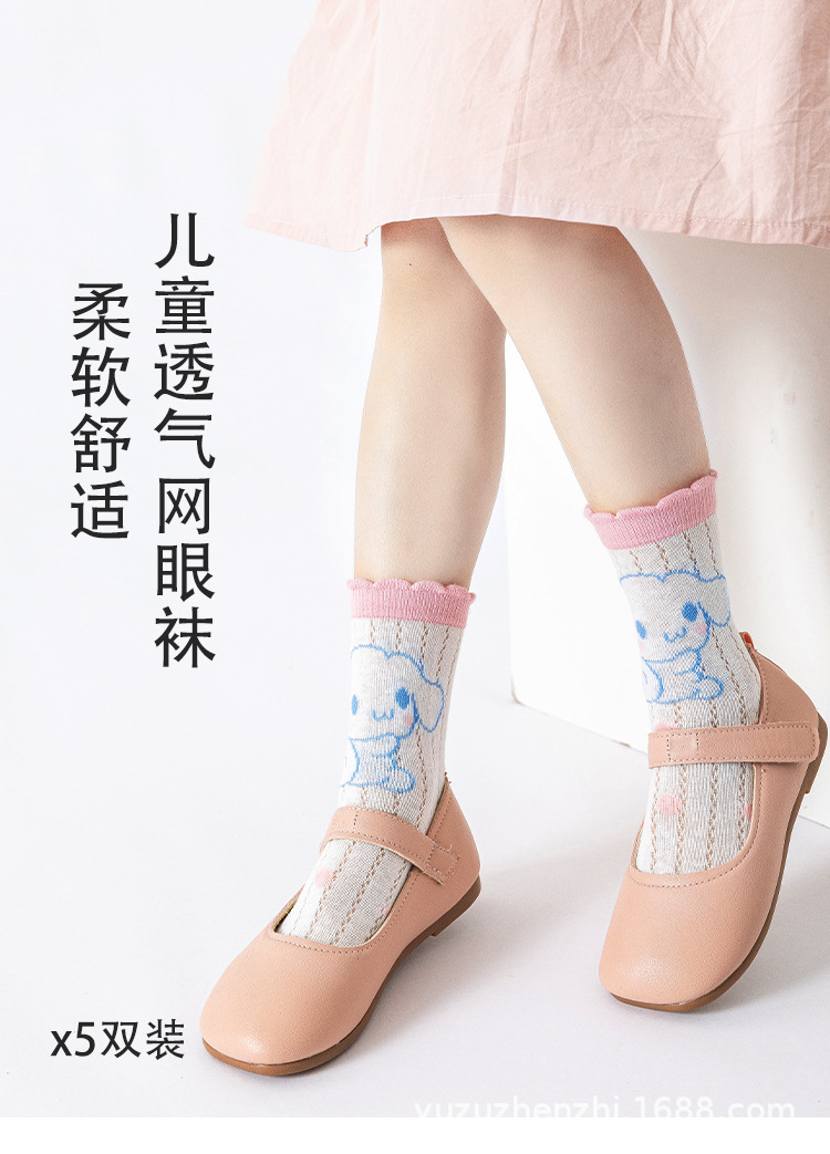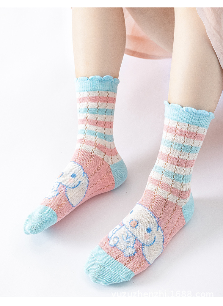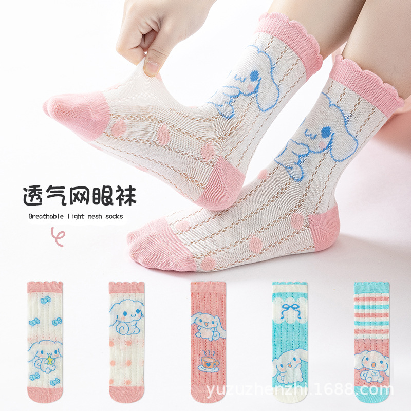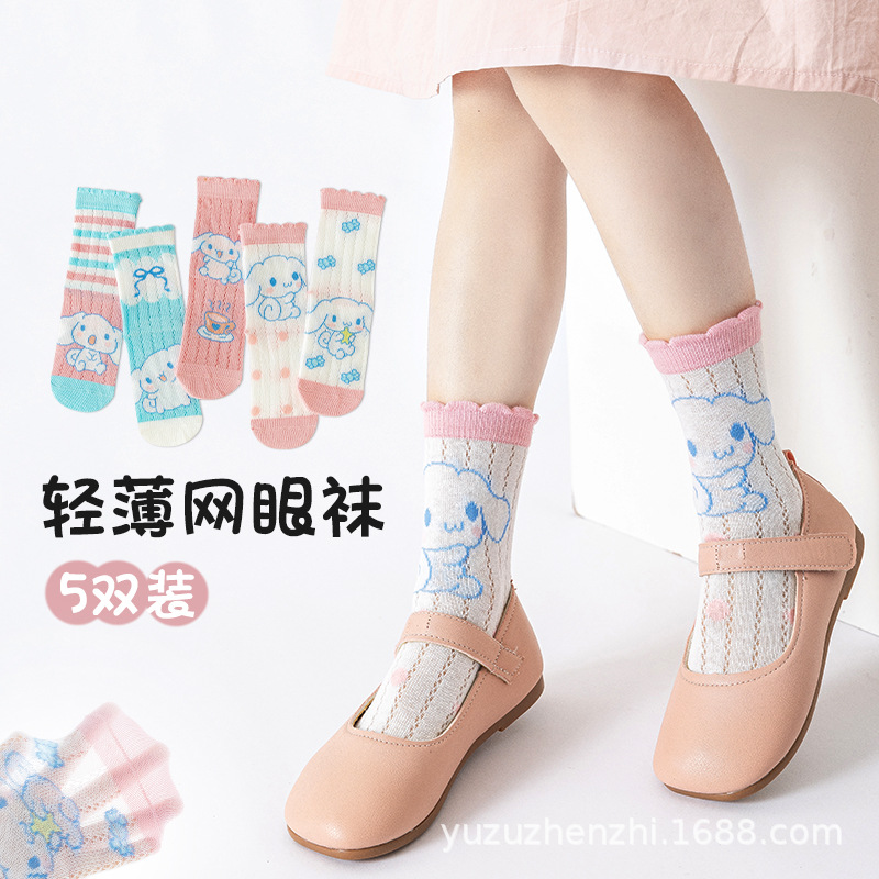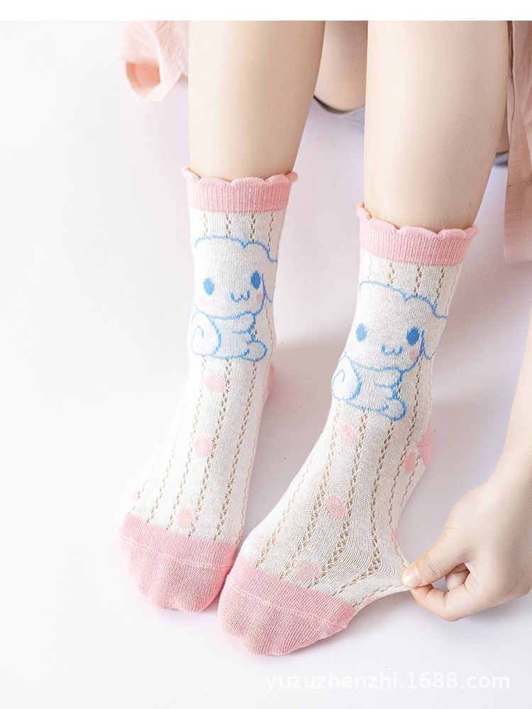 소녀 봄과 여름 새로운 중간 튜브 양말 메쉬 양말 만화 Yugui 개 달콤한 공주 소녀 얇은 면 통기성 어린이 양말