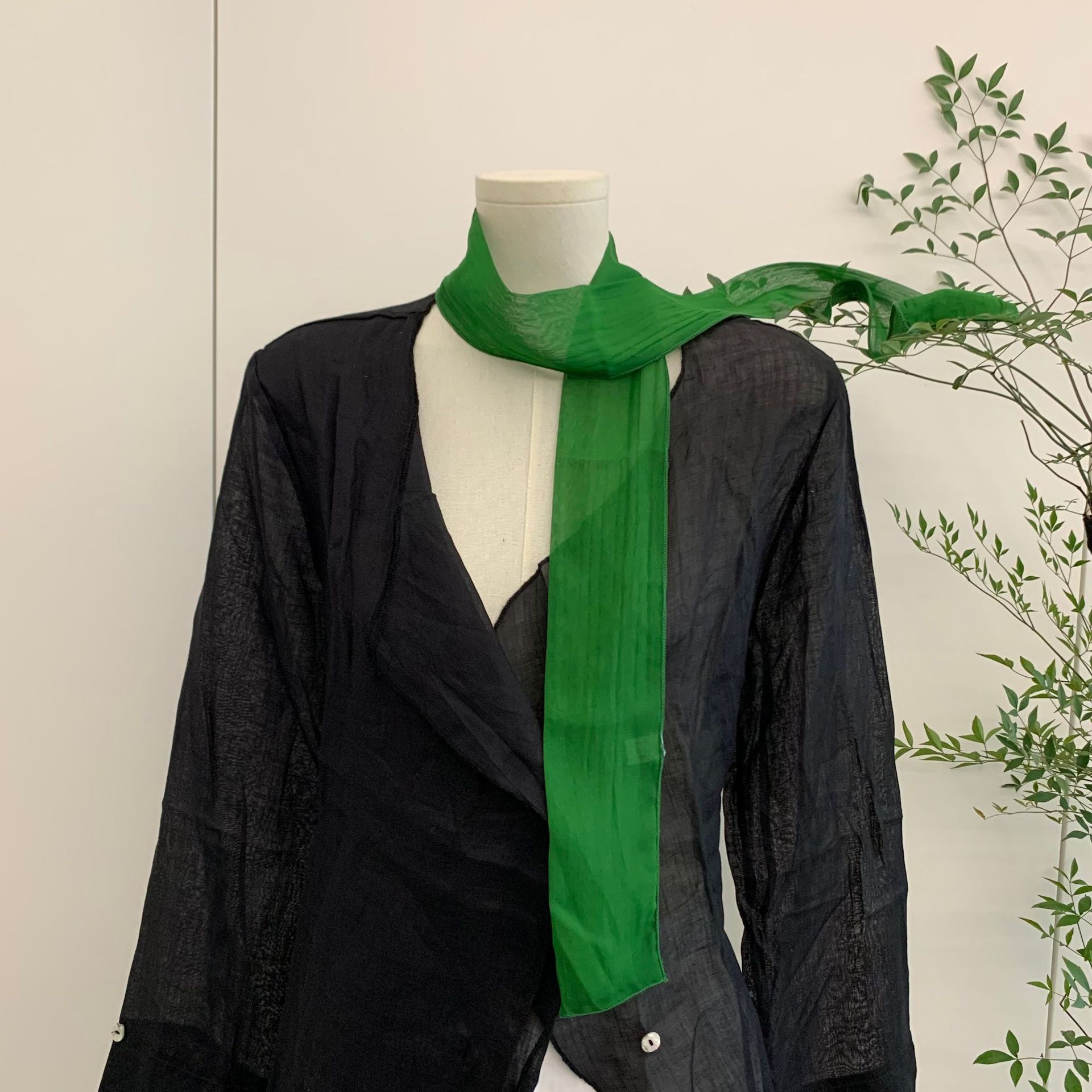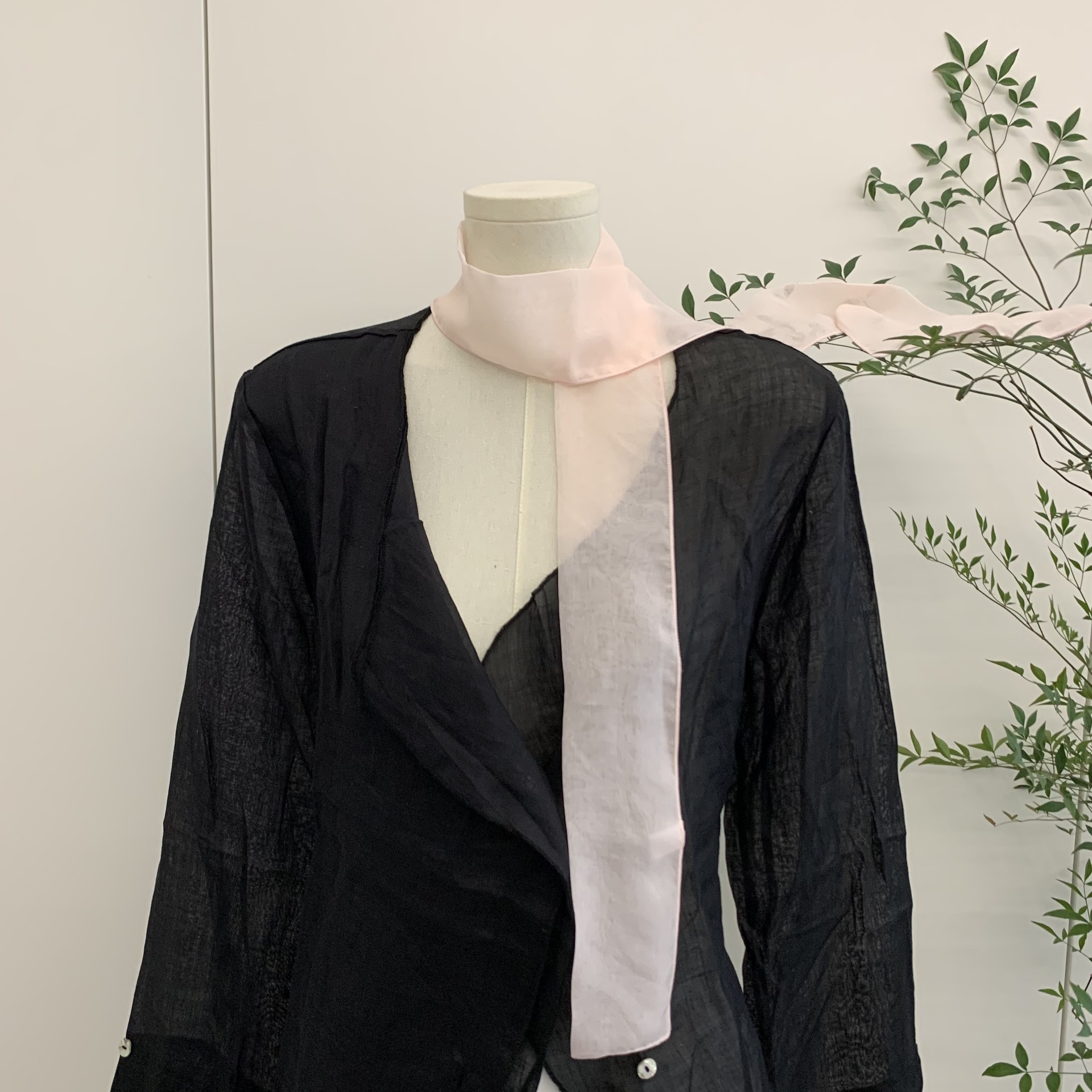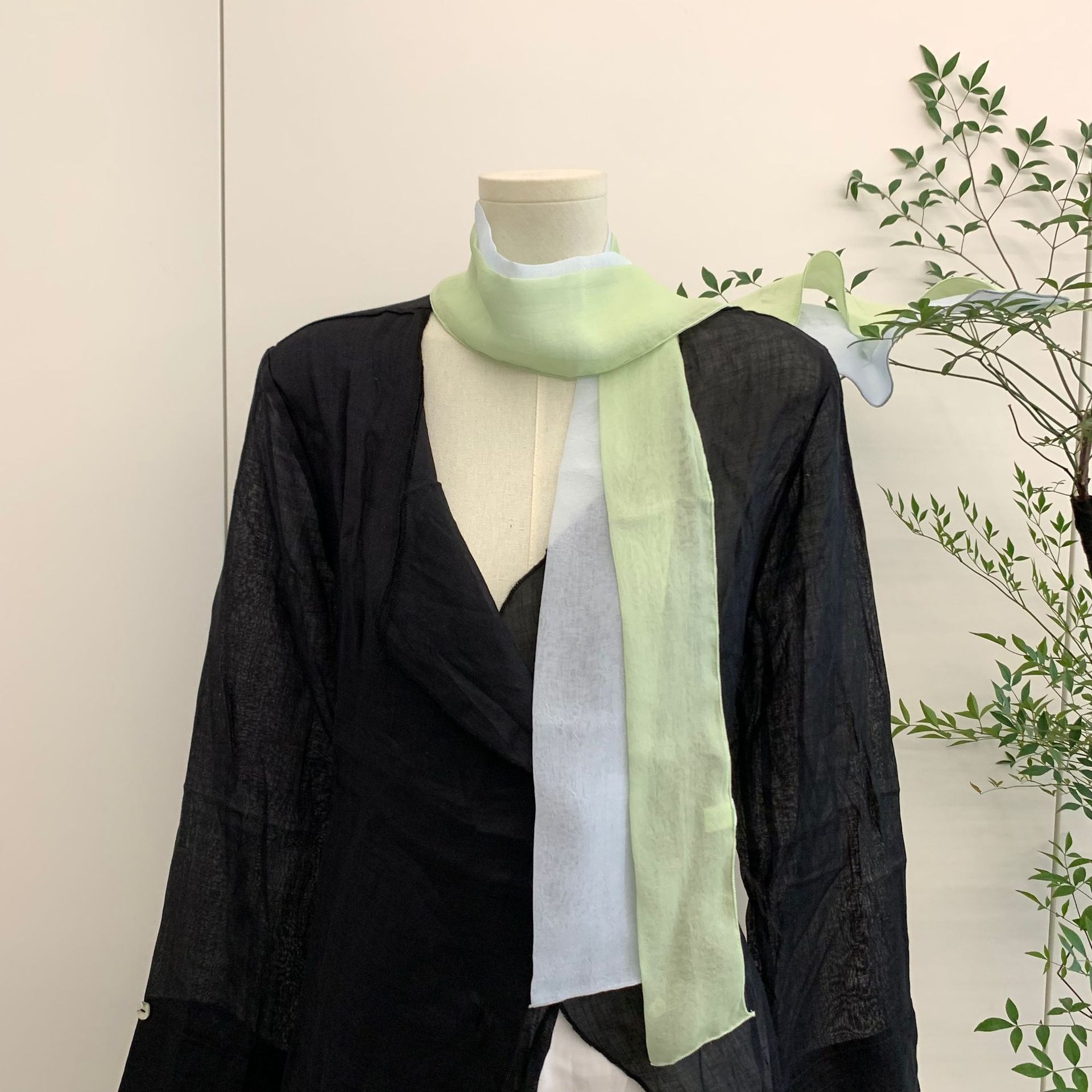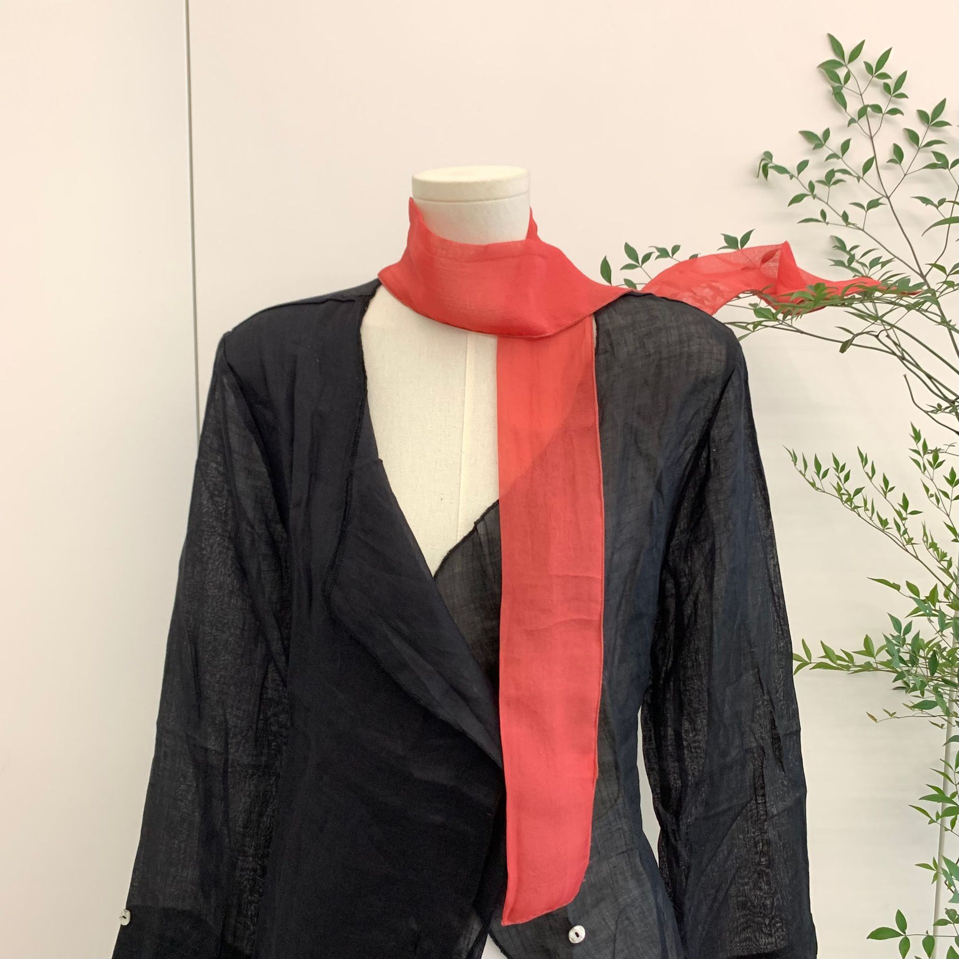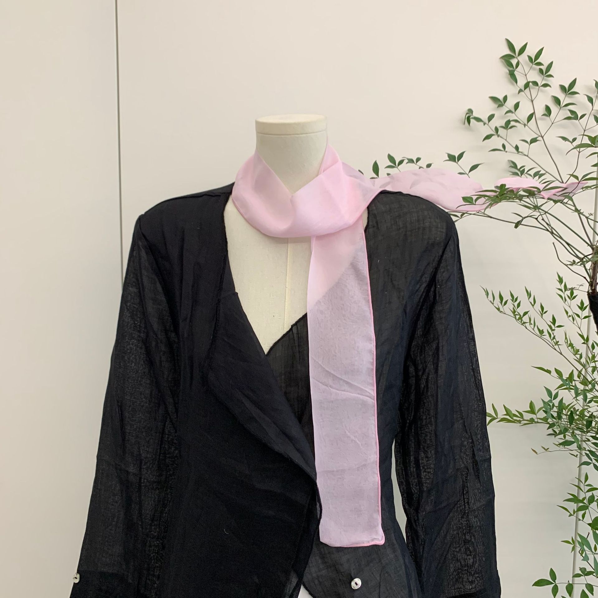유행 에센스 ~ 한국 봄과 여름 단색 작은 긴 스카프 여성용 얇은 거즈 리본 스파이스 소녀 장식 좁은 스카프