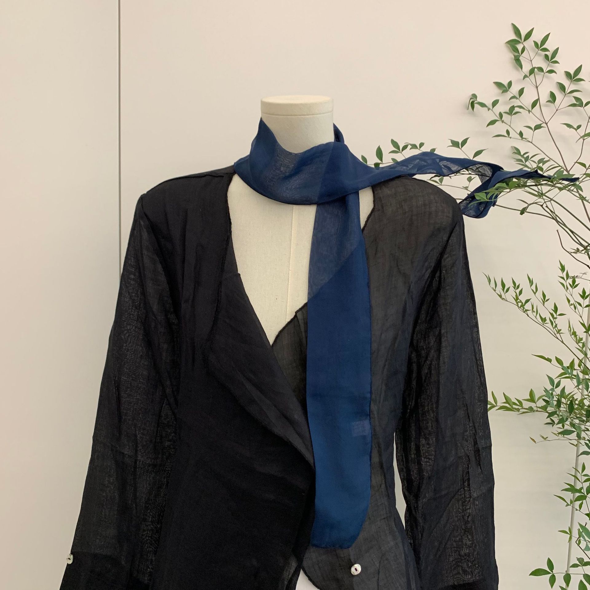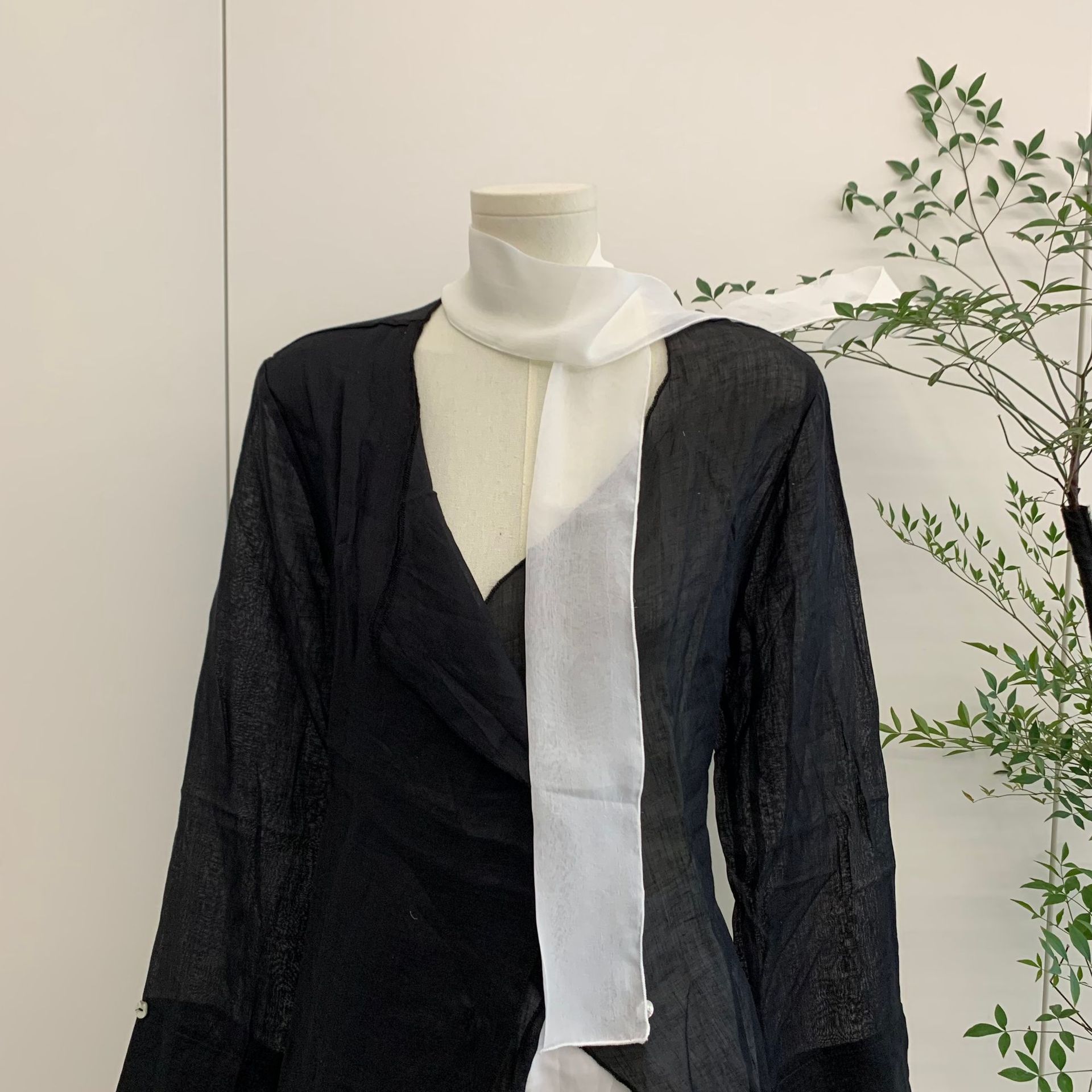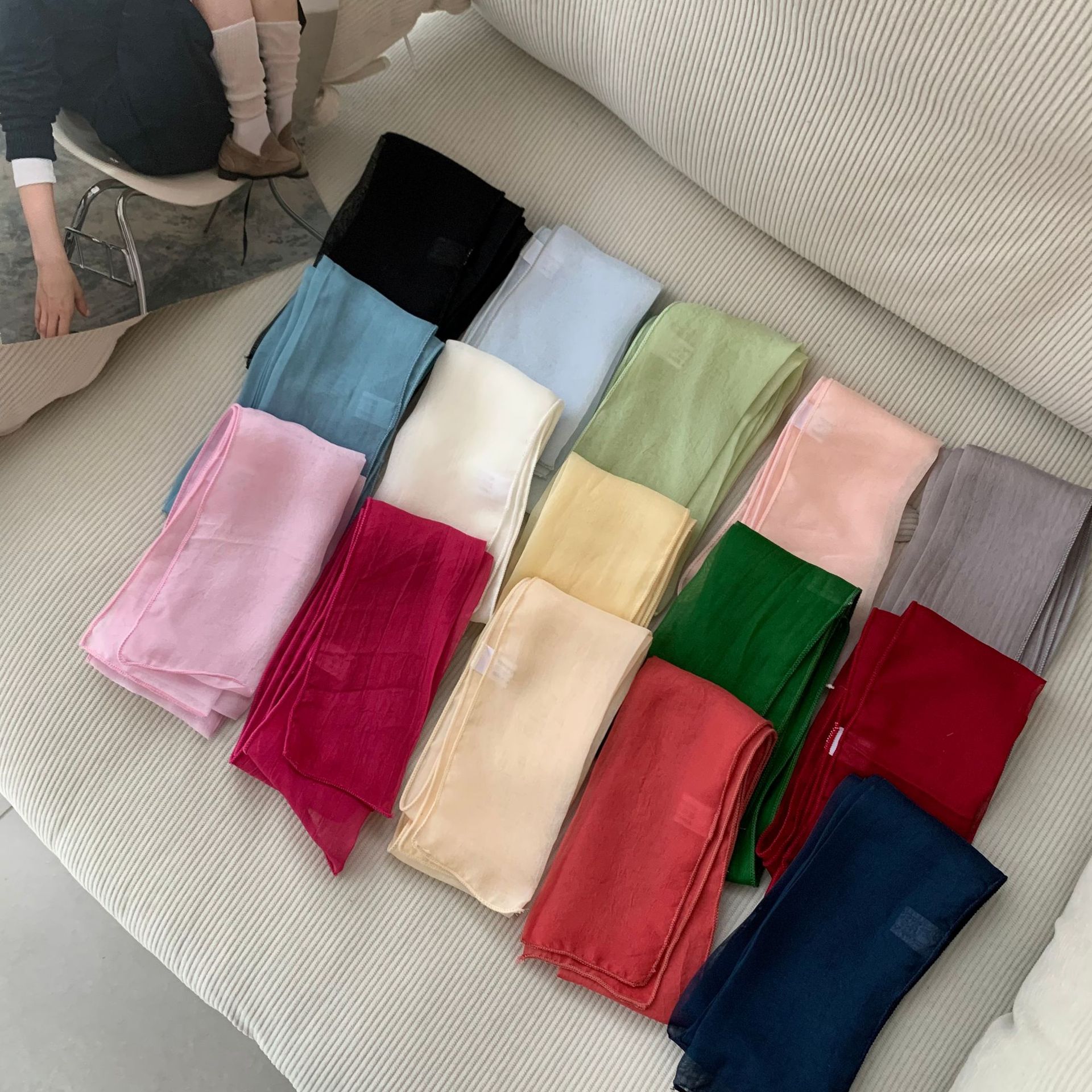 유행 에센스 ~ 한국 봄과 여름 단색 작은 긴 스카프 여성용 얇은 거즈 리본 스파이스 소녀 장식 좁은 스카프스토어 가기