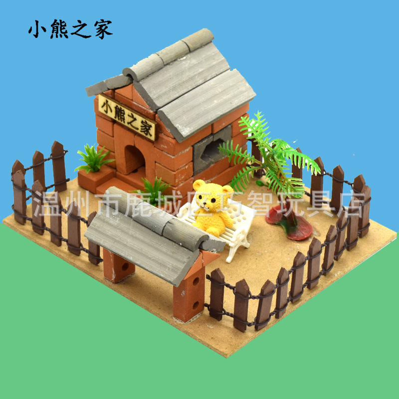 작은 벽돌공 빌딩 블록 교육 장난감 어린이 수제 diy 건물 모델 작은 벽돌 집 만들기 수제 상점