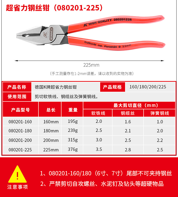 원래 독일 K 브랜드 수입 멀티 파워 산업 슈퍼 노동 절약 와이어 펜치 바이스 그램 와이어 볼트 펜치 와이어 드로잉 펜치