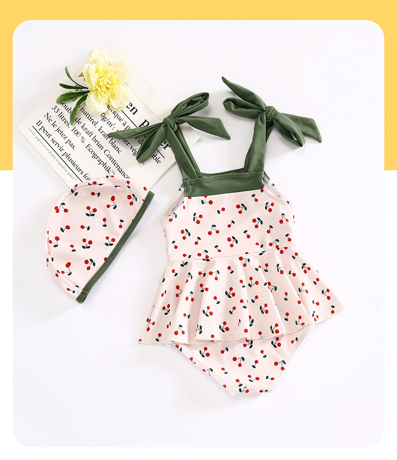 어린이 수영복 소녀 원피스 소녀 2024 새로운 스타일 어린이 공주 스커트 아기의 귀여운 웨이브 닷 수영복스토어 가기