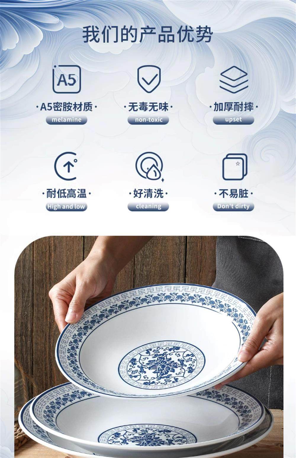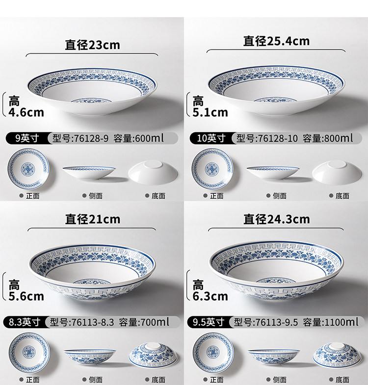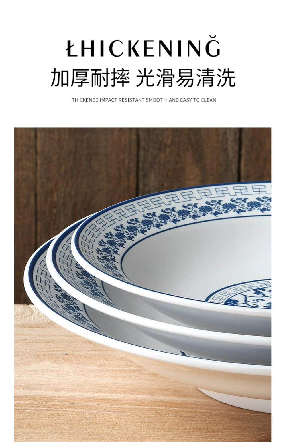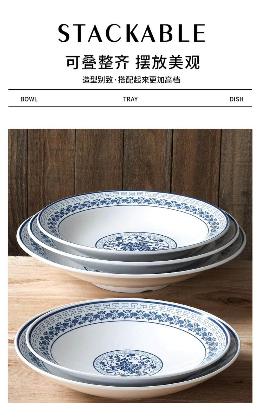 멜라민 식기 대형 그릇 상업용 파란색과 흰색 도자기 원톤 수프 그릇 국수 매운 뜨거운 그릇 국수 레스토랑 쇠고기 국수 그릇 수프 그릇스토어 가기
