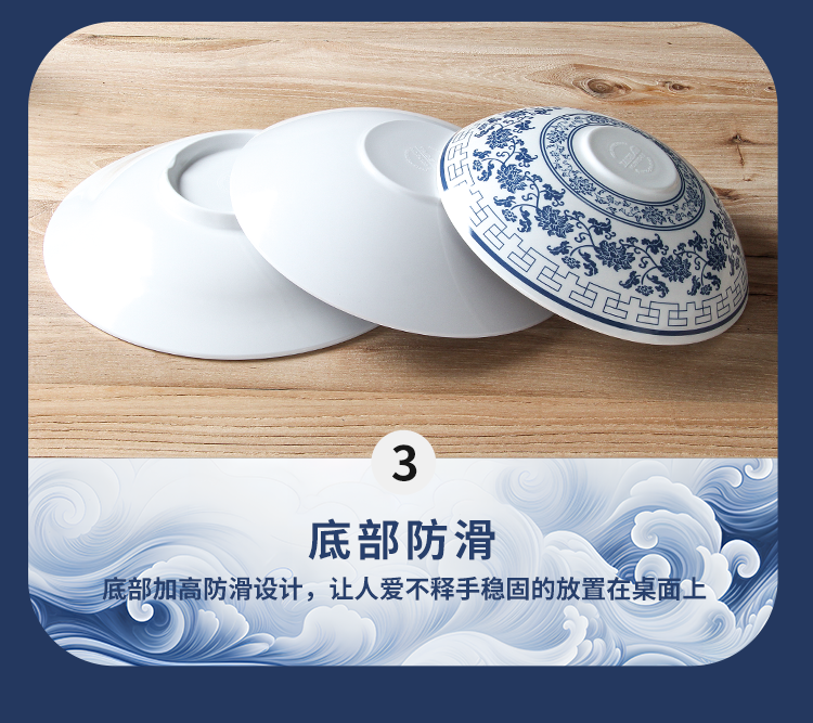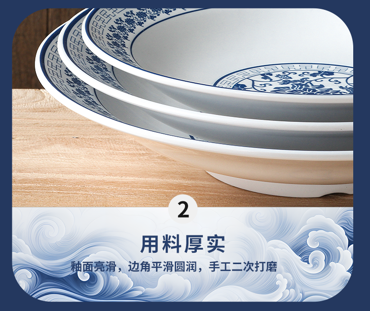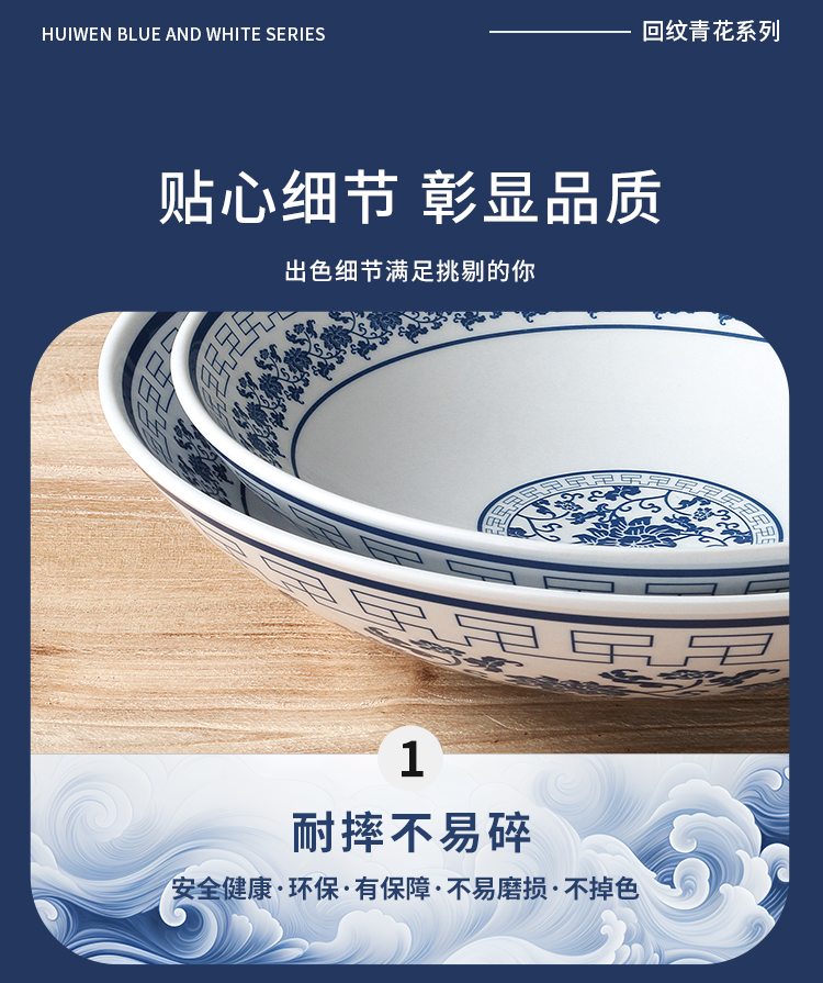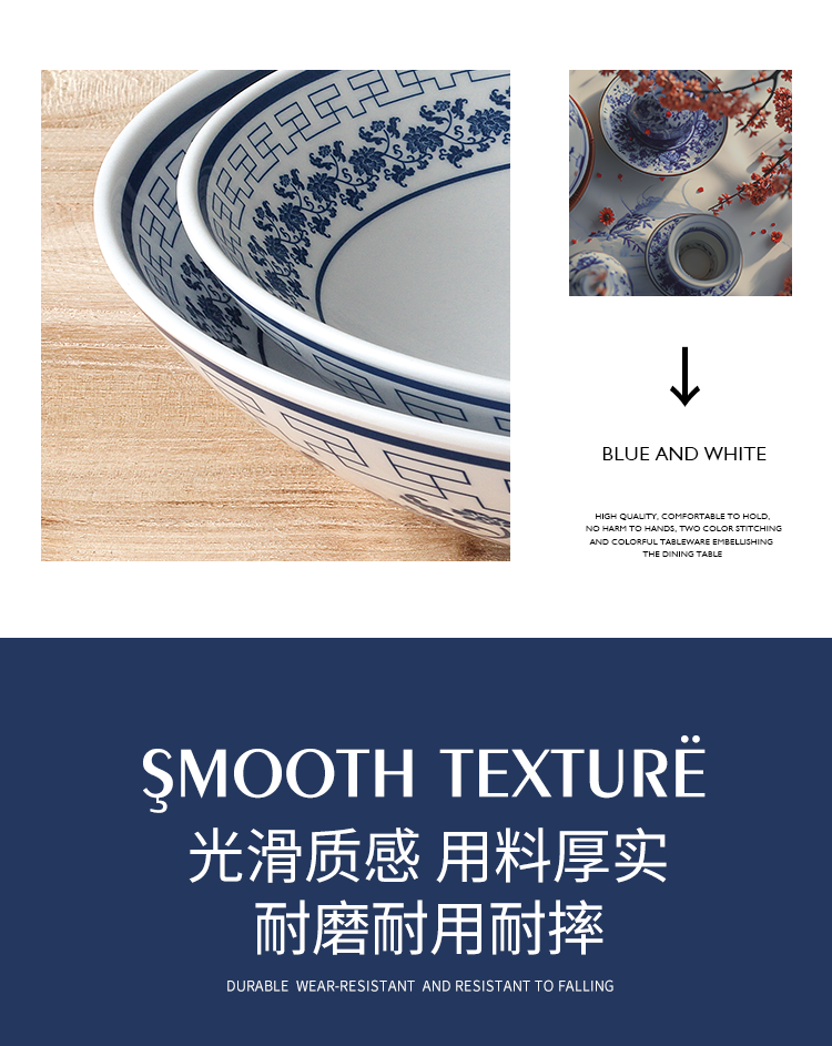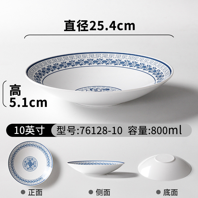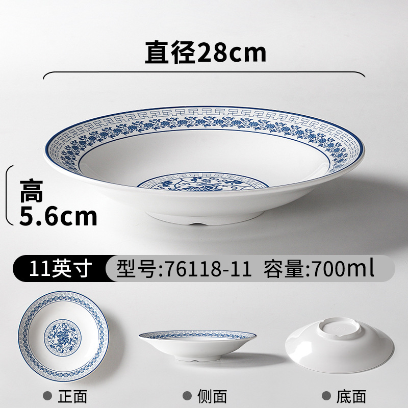 멜라민 식기 대형 그릇 상업용 파란색과 흰색 도자기 원톤 수프 그릇 국수 매운 뜨거운 그릇 국수 레스토랑 쇠고기 국수 그릇 수프 그릇스토어 가기