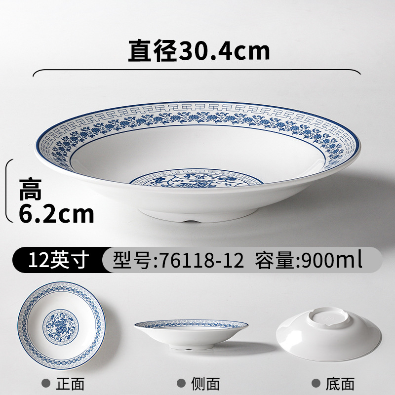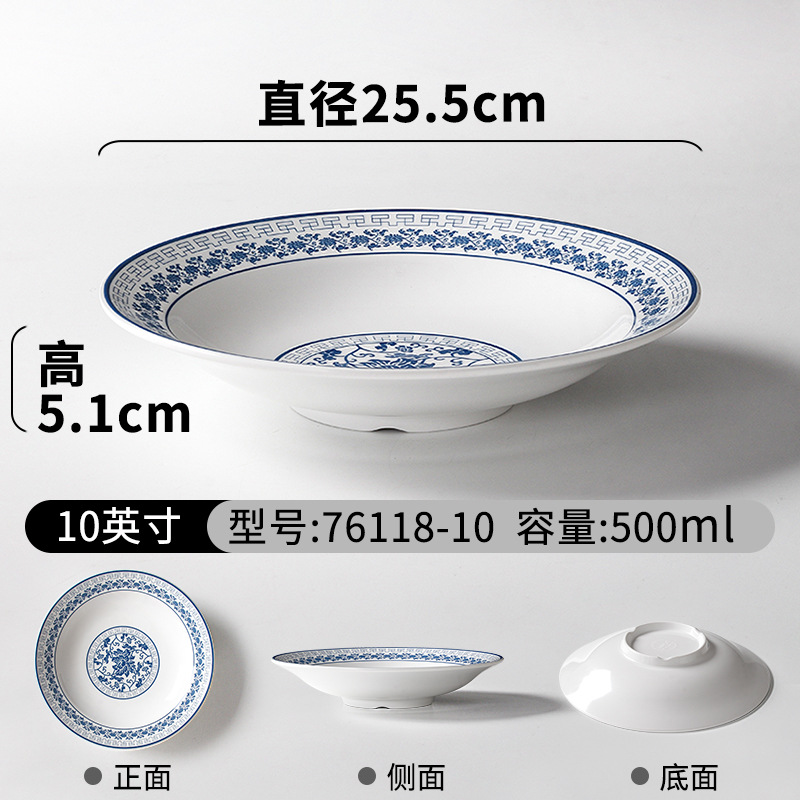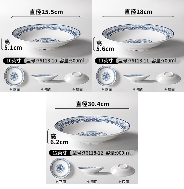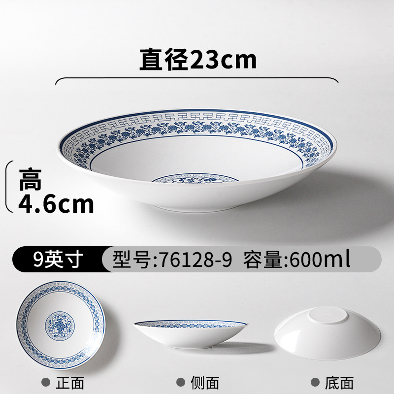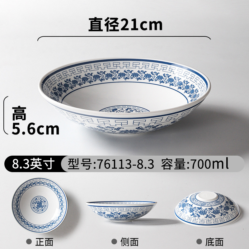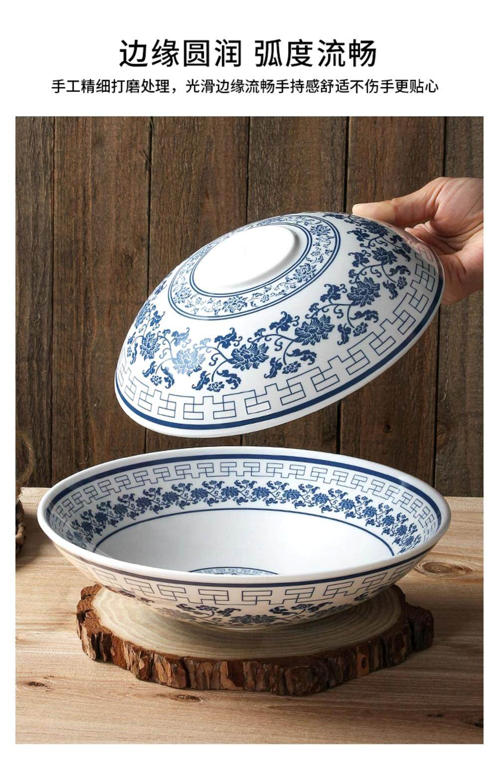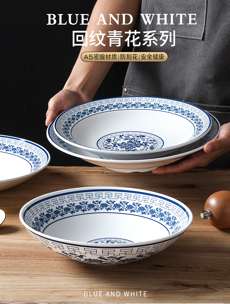 멜라민 식기 대형 그릇 상업용 파란색과 흰색 도자기 원톤 수프 그릇 국수 매운 뜨거운 그릇 국수 레스토랑 쇠고기 국수 그릇 수프 그릇