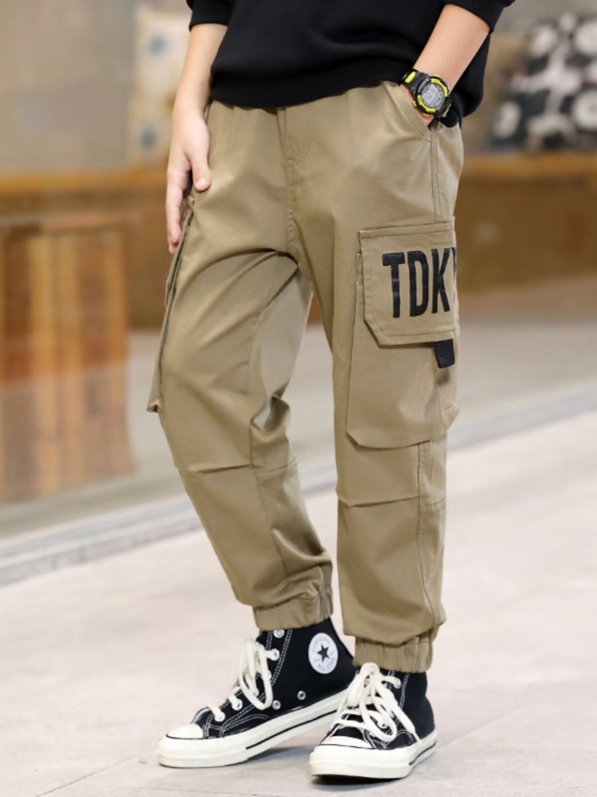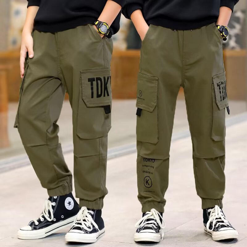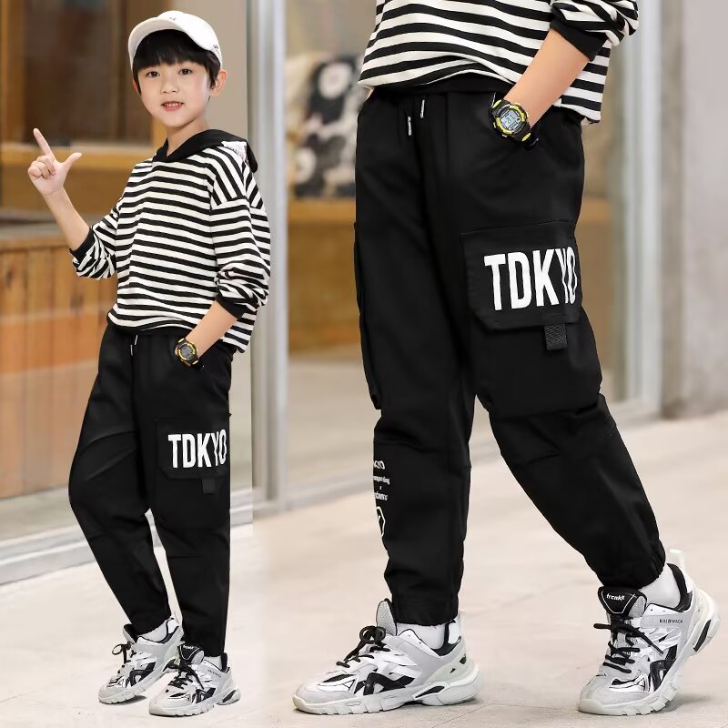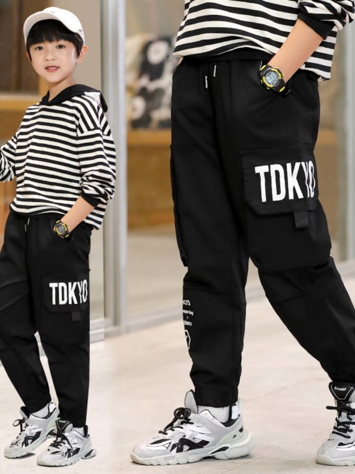 아동복 소년 바지 2025 년 봄과 가을 새 가을 착용 어린이 가을 바지 남성 중 큰 어린이 잘 생긴 쿠션 바지