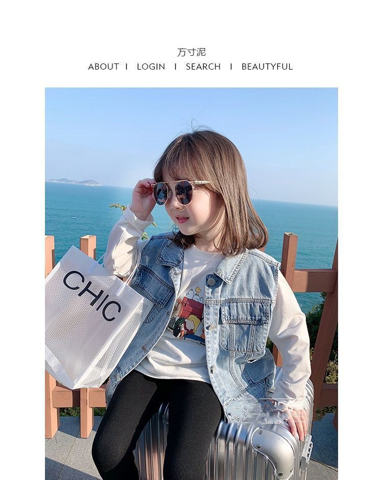 소녀 데님 조끼 2024 봄 새로운 어린이 서양식 아우터 조끼 조끼 아기 봄과 가을 코트 트렌디스토어 가기