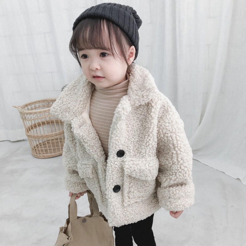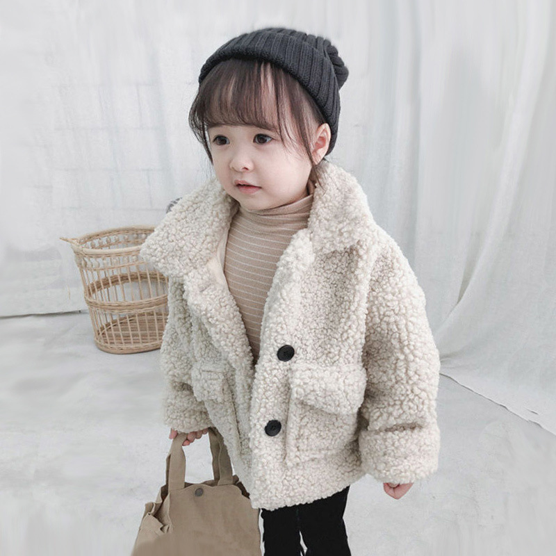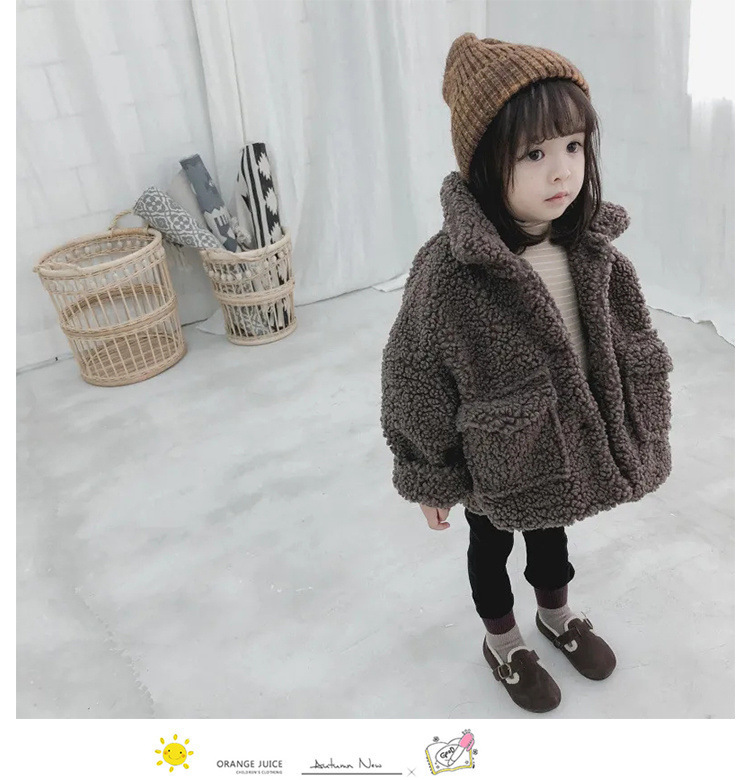 여자 양고기 벨벳 코트 가을과 겨울 2024 새로운 어린이 서양식 한국 모직 스웨터 아기 두꺼운 코트스토어 가기