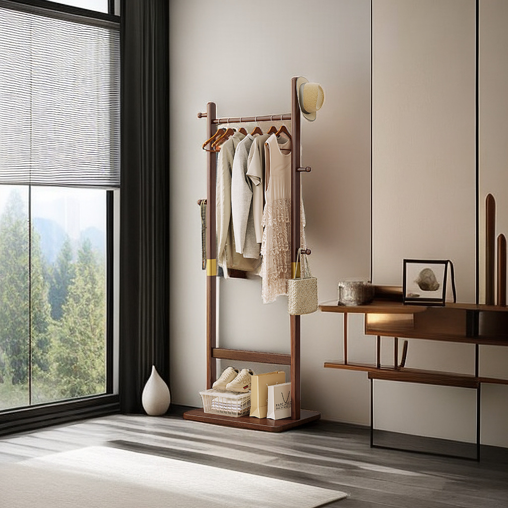 B ^ t 단단한 나무 가정용 옷 옷걸이 바닥 옷 보관 랙 침실 옷 보관 랙 수직 마스터 침실 옷