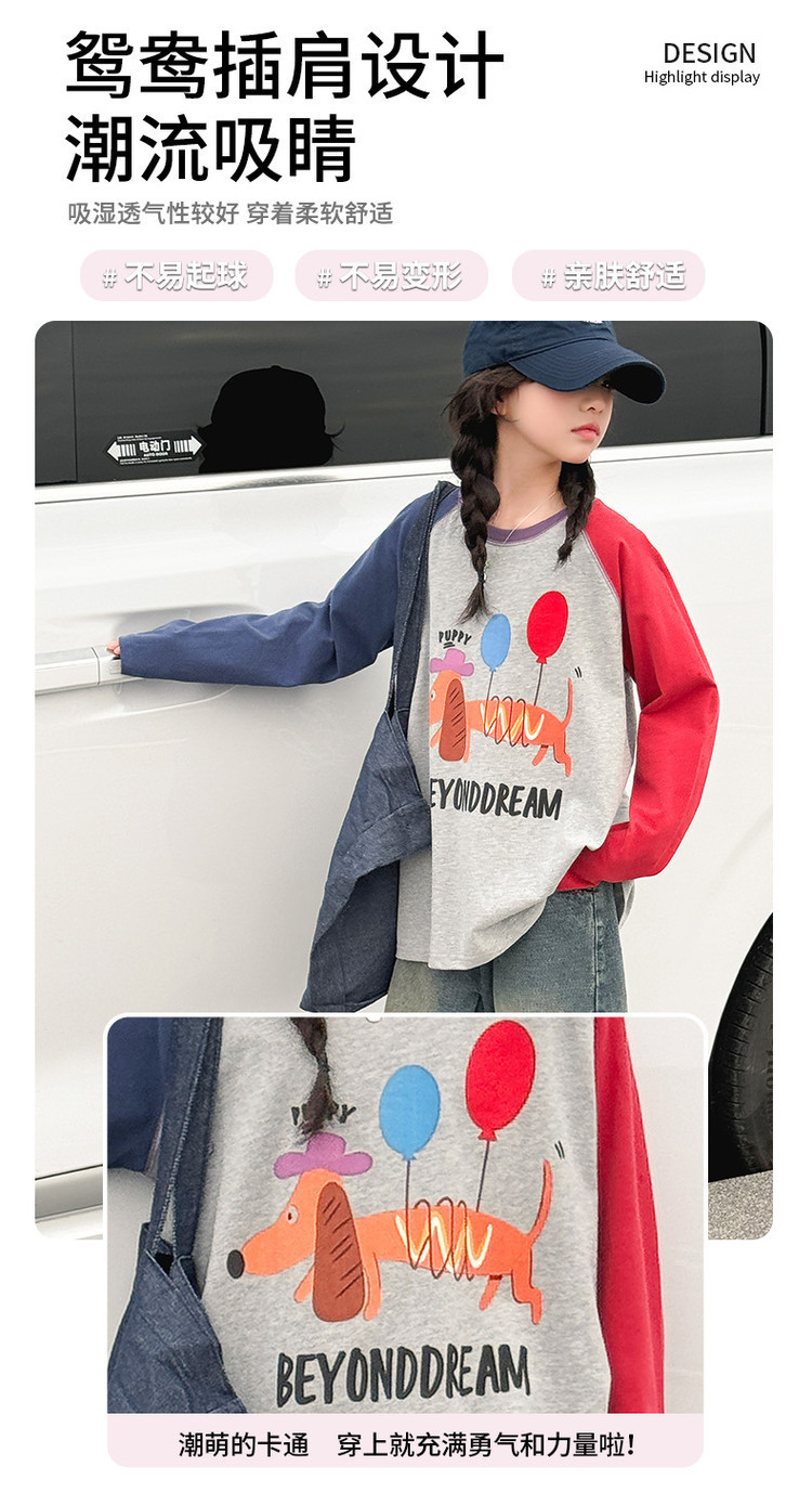 소녀 한국식 컬러 블록 긴팔 티셔츠 2025 새로운 봄 소녀의 서양식 느슨한 캐주얼 인쇄 트렌디 탑