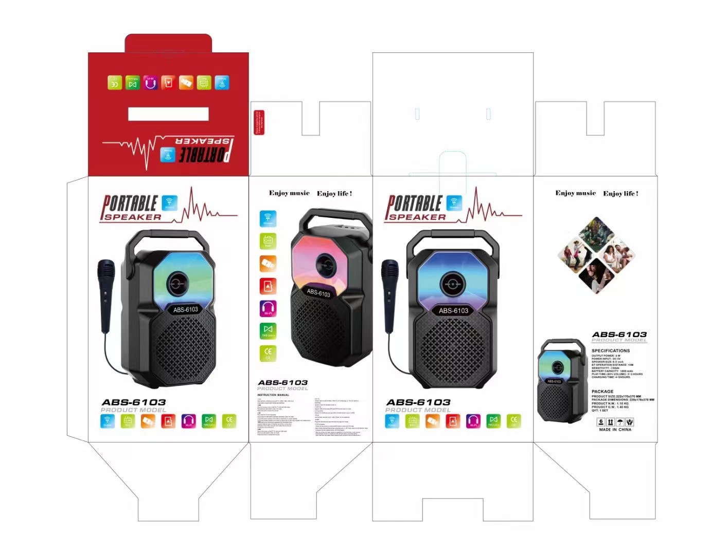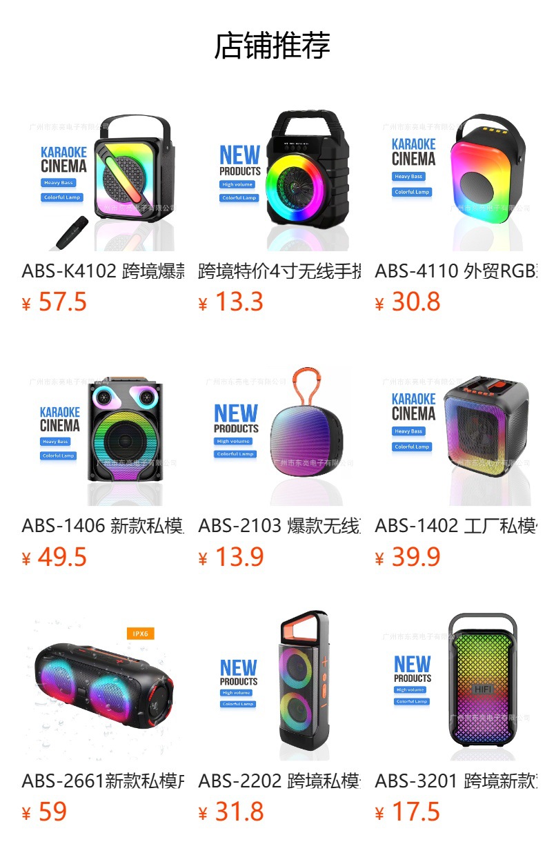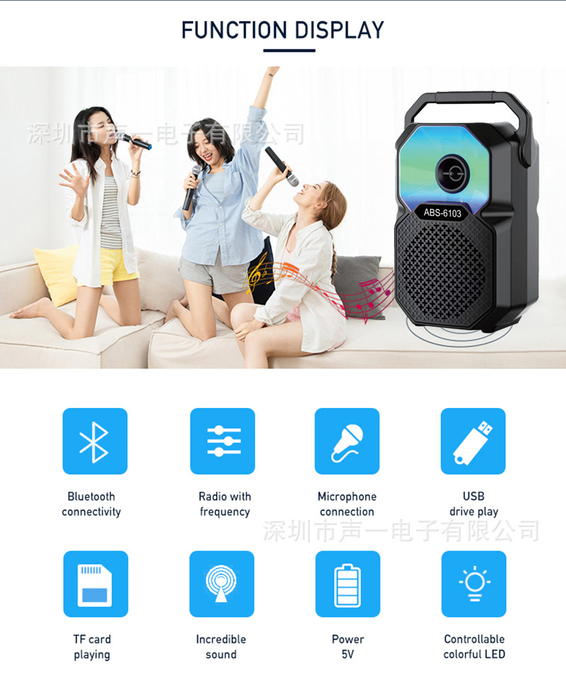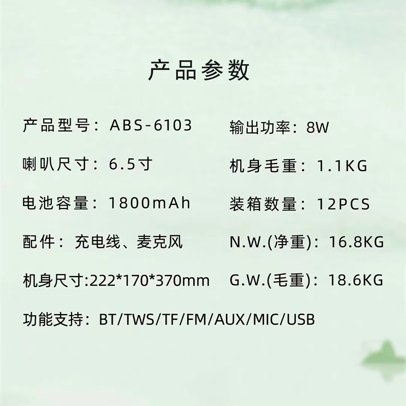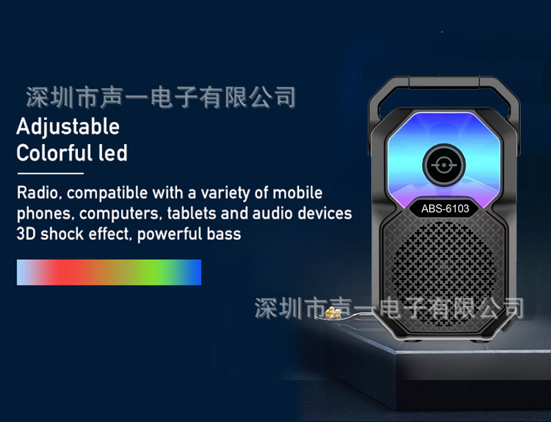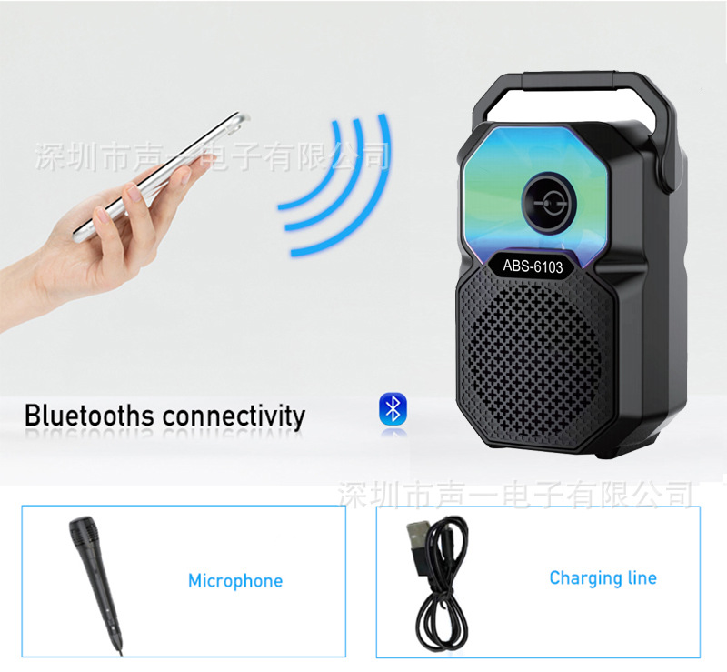 ABS-6103 new 6.5-inch portable karaoke Bluetooth speaker, mobile phone microphone, outdoor LED lights, camping lights, cycling sound system