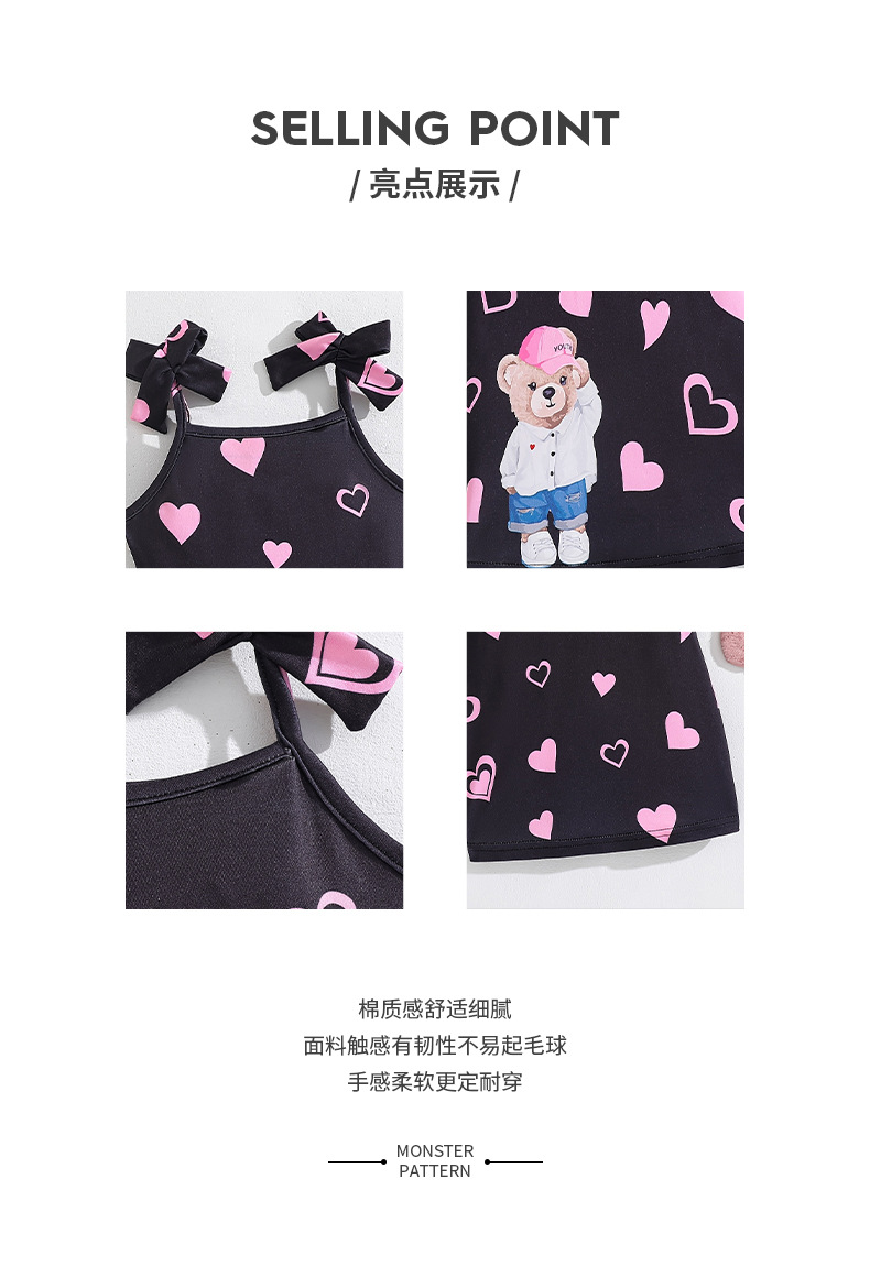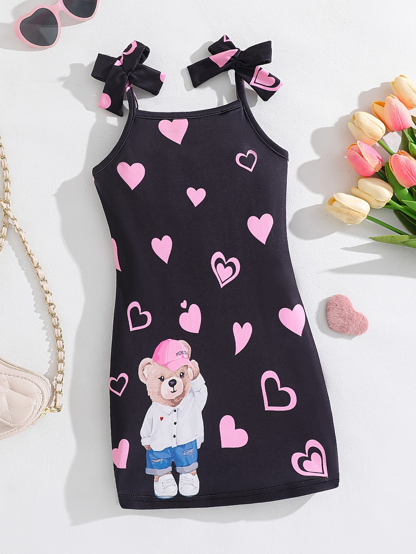 소녀 여름 슬링 스커트 활 어깨 끈 만화 곰 사랑 패턴 어린이 소녀의 귀여운 원피스