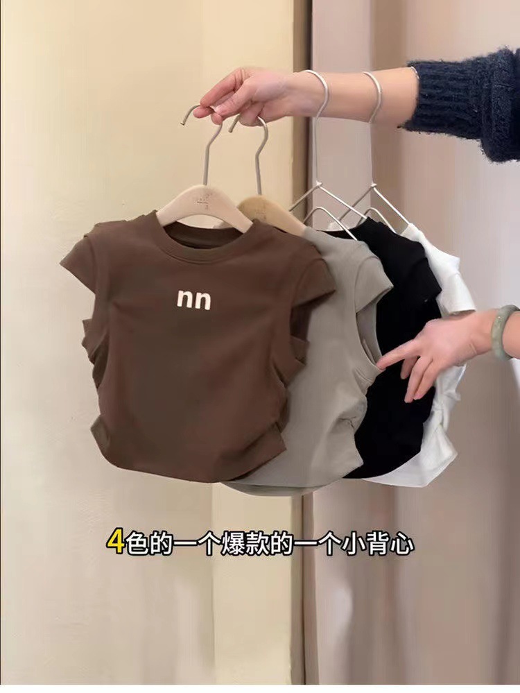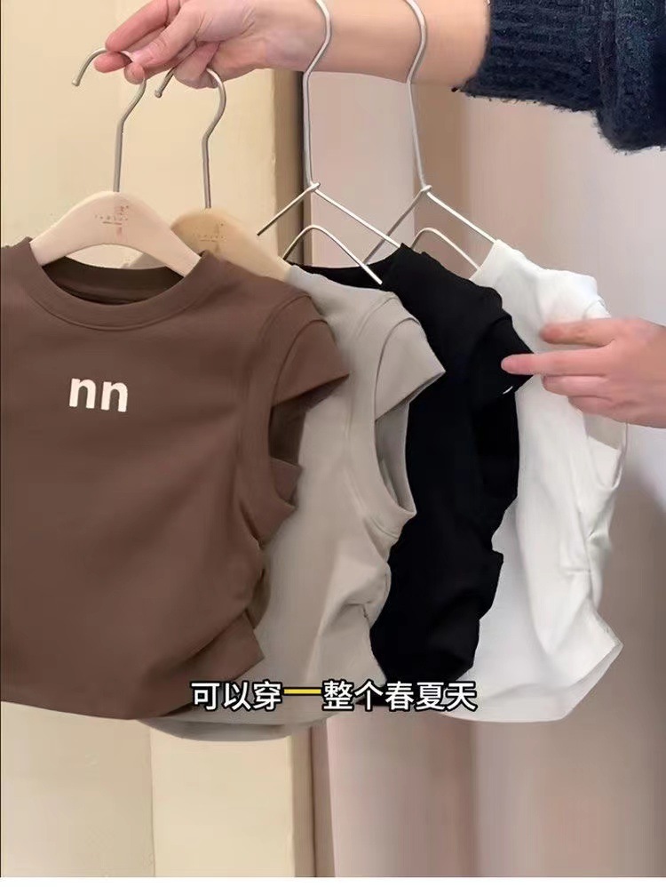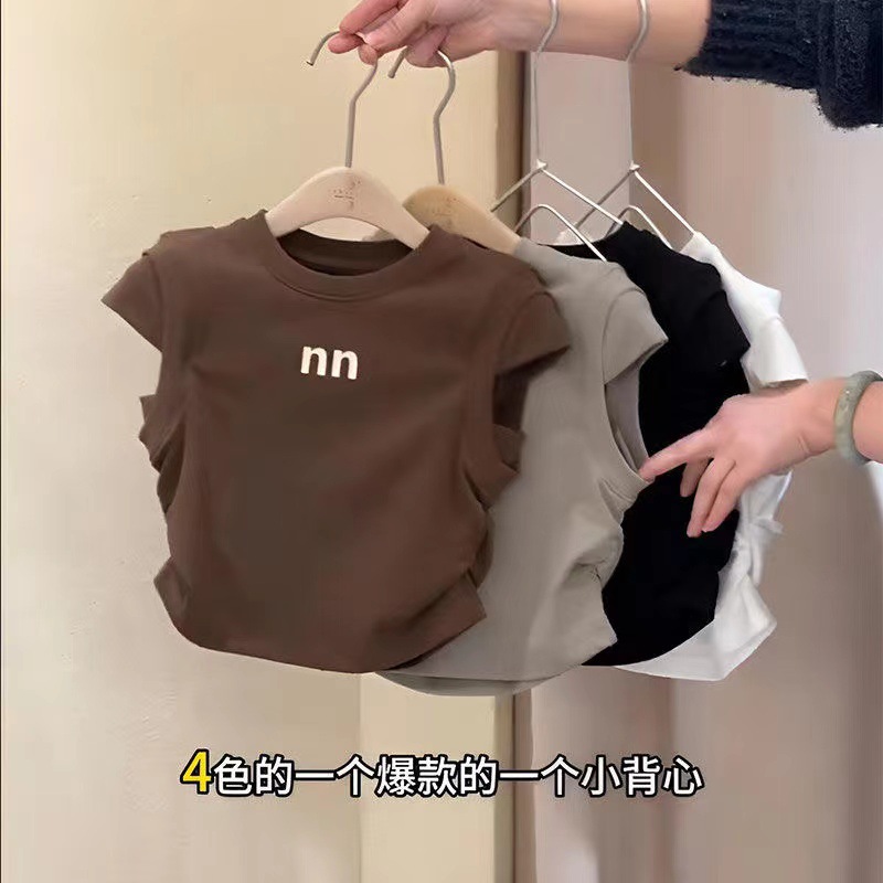 코튼 걸스 반팔 티셔츠 2025 여름 새 한국 어린이 아기 세련된 패션 올 매치 탑 트렌디스토어 가기
