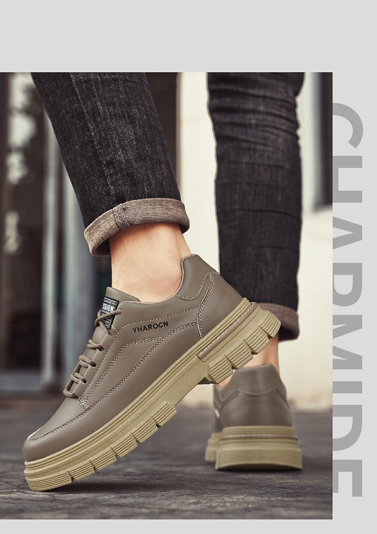 봄 남성 신발 새로운 통기성 작업복 신발 남성용 트렌디 올매치 두꺼운 밑창 스포츠 캐주얼 스니커즈 가죽 신발 마틴 부츠