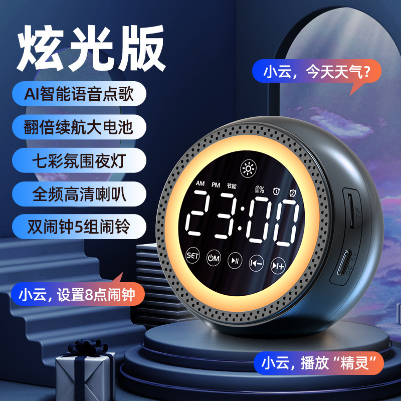 AI 스마트 음성 알람 시계 블루투스 스피커 야간 조명 서브 우퍼 다기능 학생 알람 휴대 전화 컴퓨터 오디오