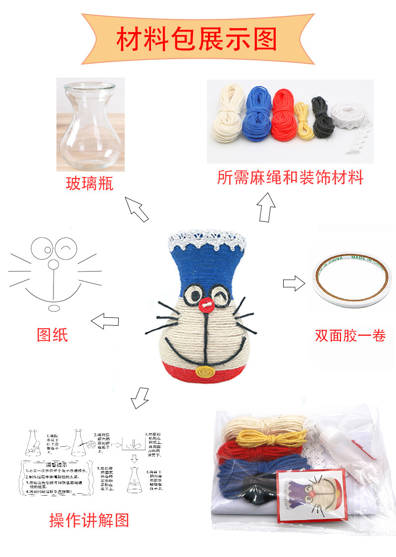 새해 어린이 폐기물 재료 환경 보호 DIY 창조적 인 유리 대마 로프 꽃병 수제 완제품스토어 가기