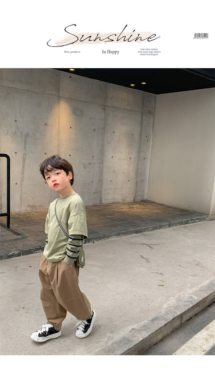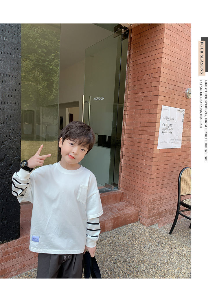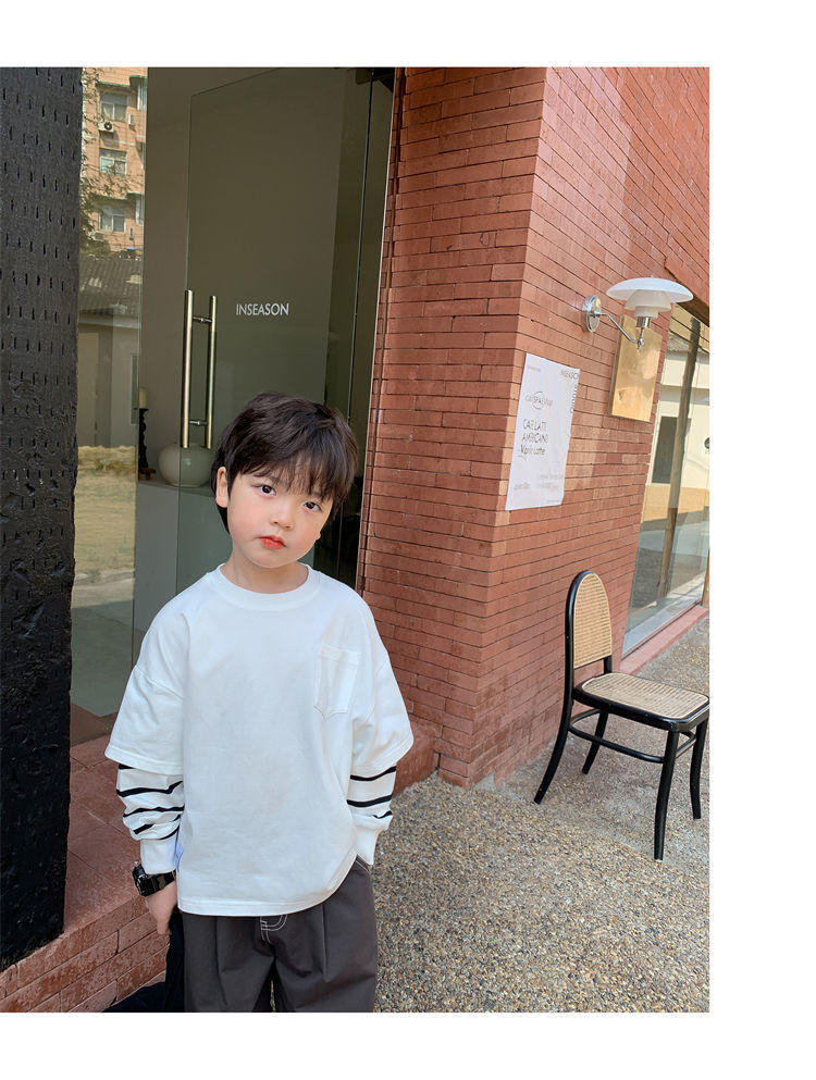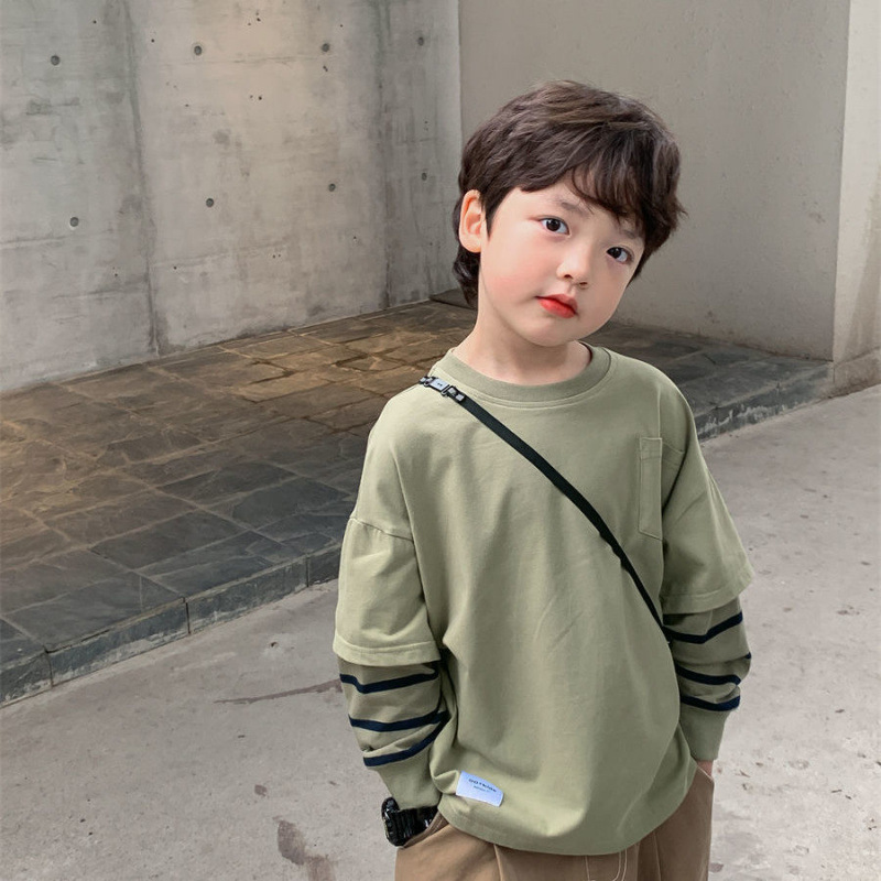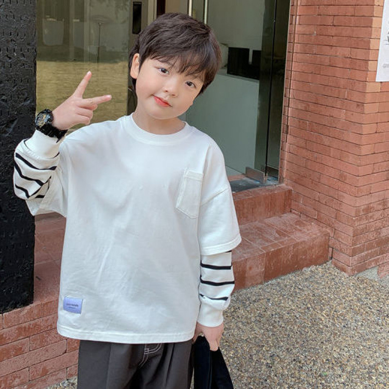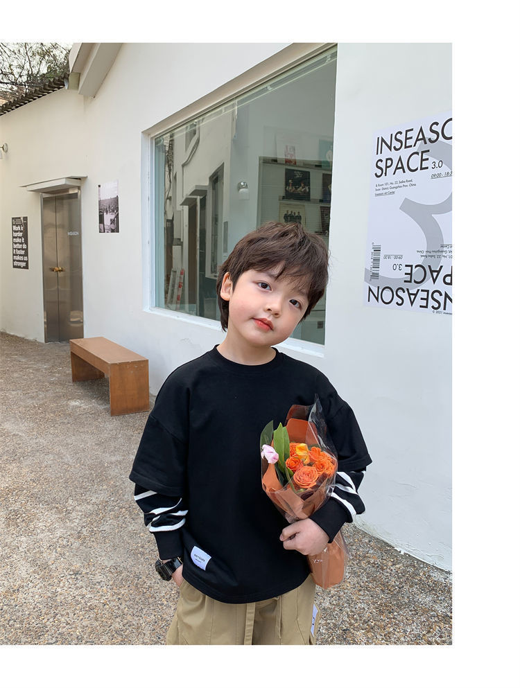 소년 가짜 투피스 긴팔 티셔츠 2022 년 신상 어린이 잘 생긴 봄 · 여름 톱 소년의 아기 얇은 아동복