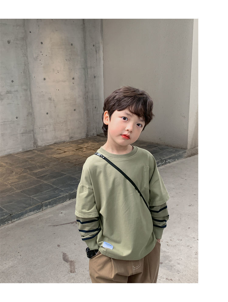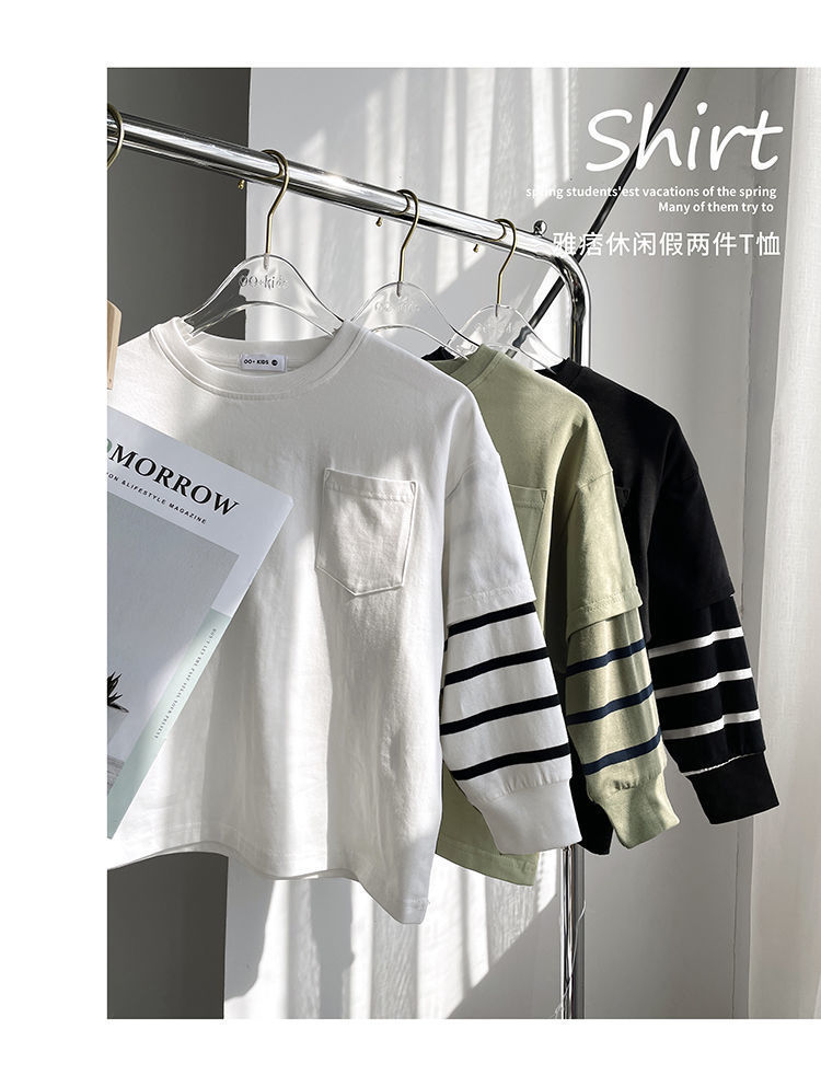 소년 가짜 투피스 긴팔 티셔츠 2022 년 신상 어린이 잘 생긴 봄 · 여름 톱 소년의 아기 얇은 아동복스토어 가기