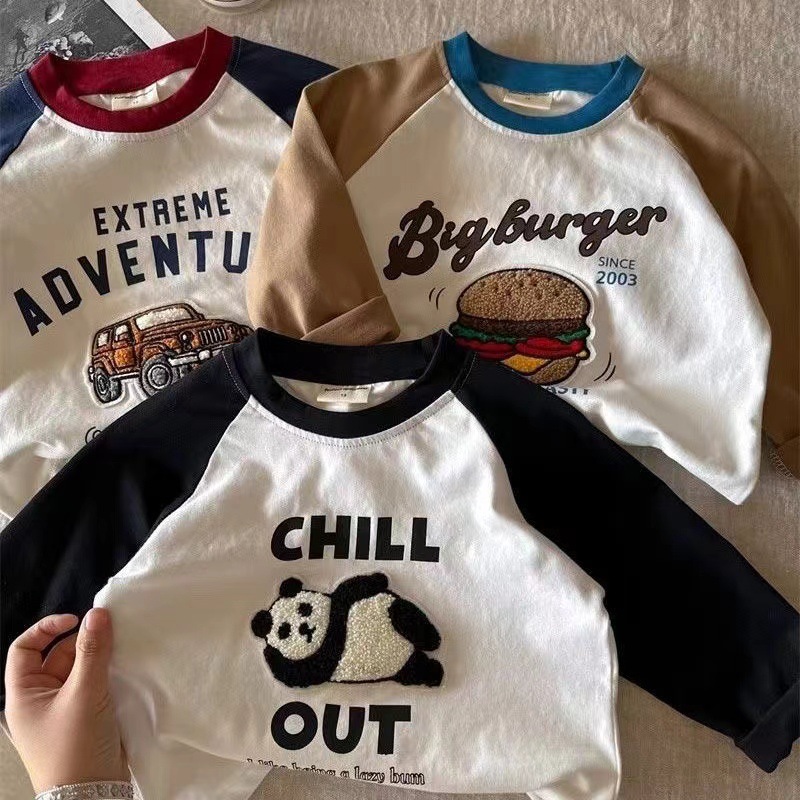 코튼 보이즈 잘 생긴 긴팔 티셔츠 2025 봄 · 가을 새 한국식 어린이 베이비베이스 옷스토어 가기