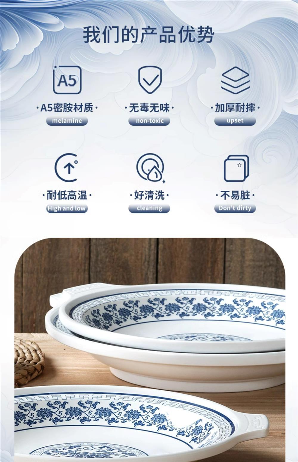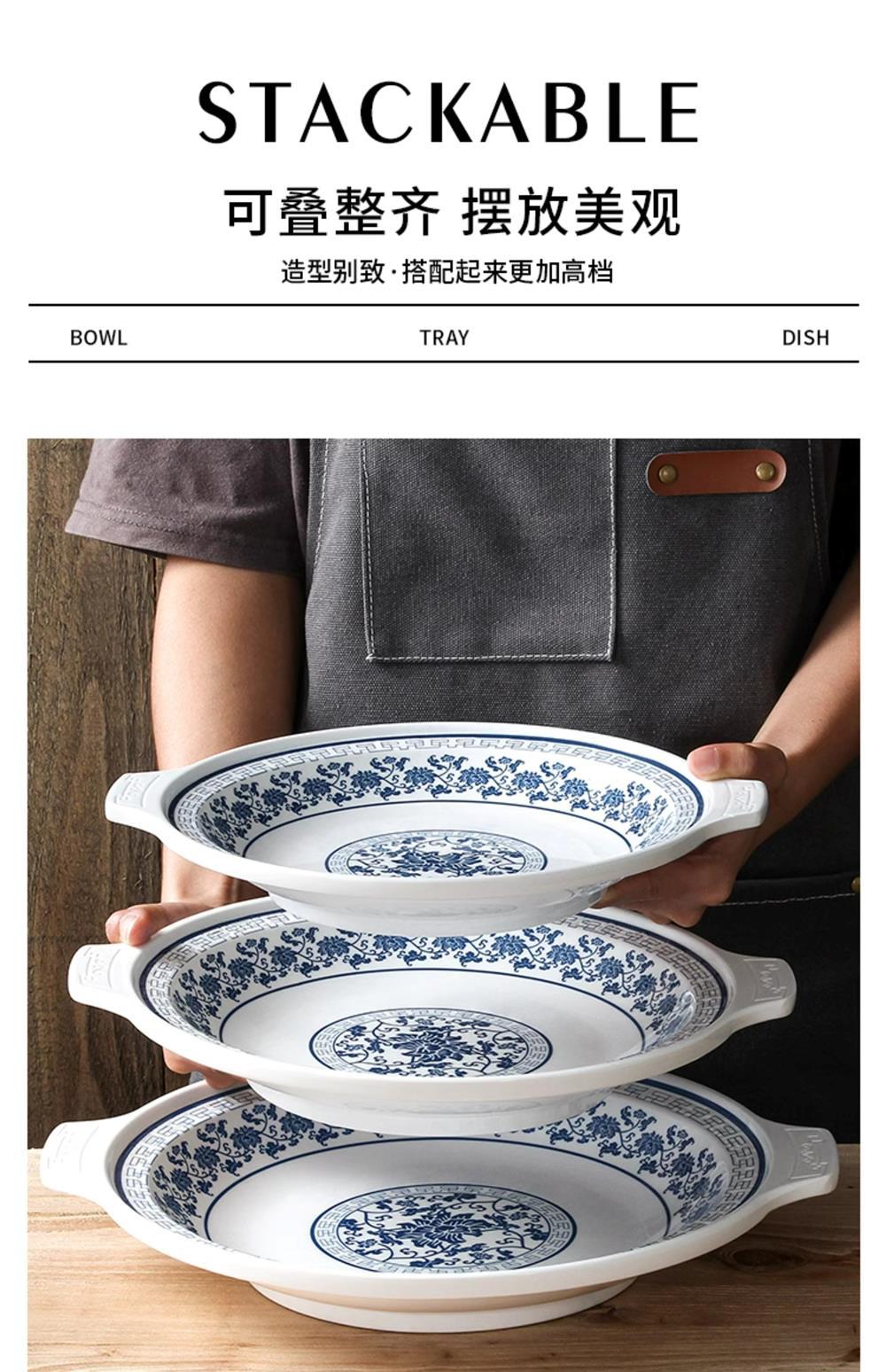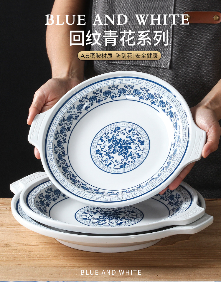 두꺼운 멜라민 식기 상업 매운 가재 특별 접시 레스토랑 레스토랑 요리 해산물 라운드 바이노럴 플레이트스토어 가기