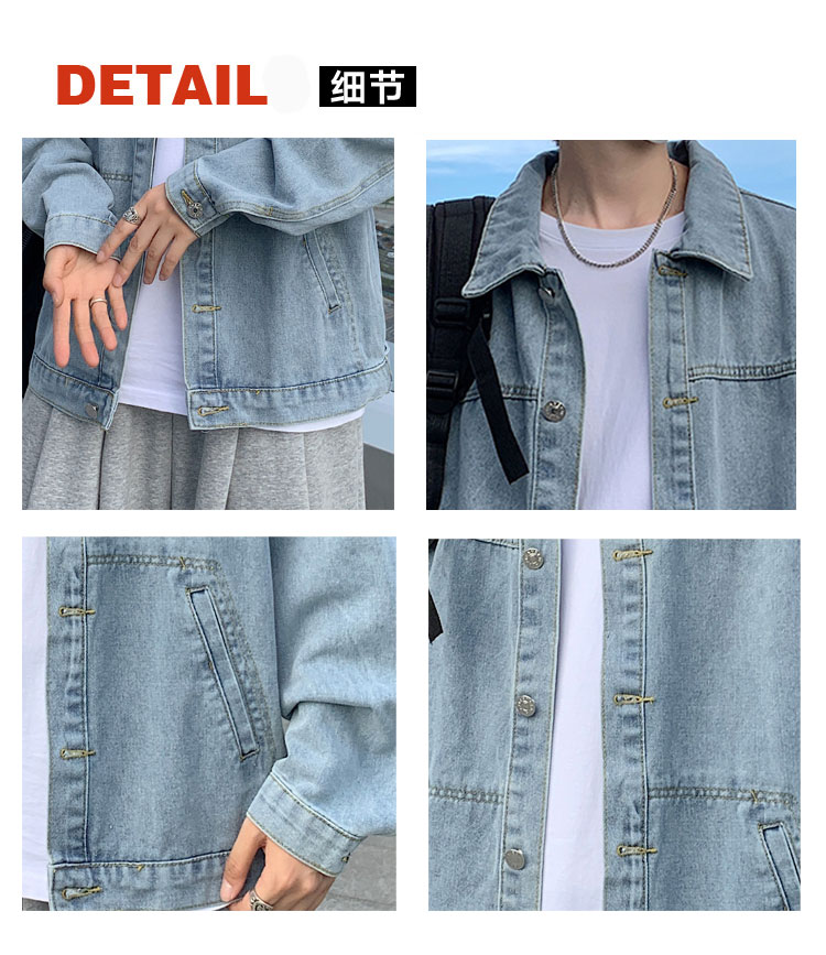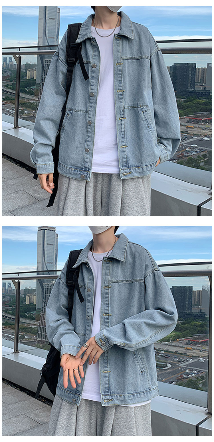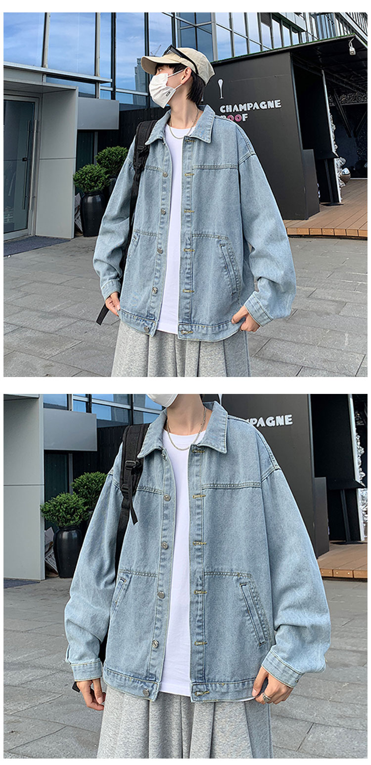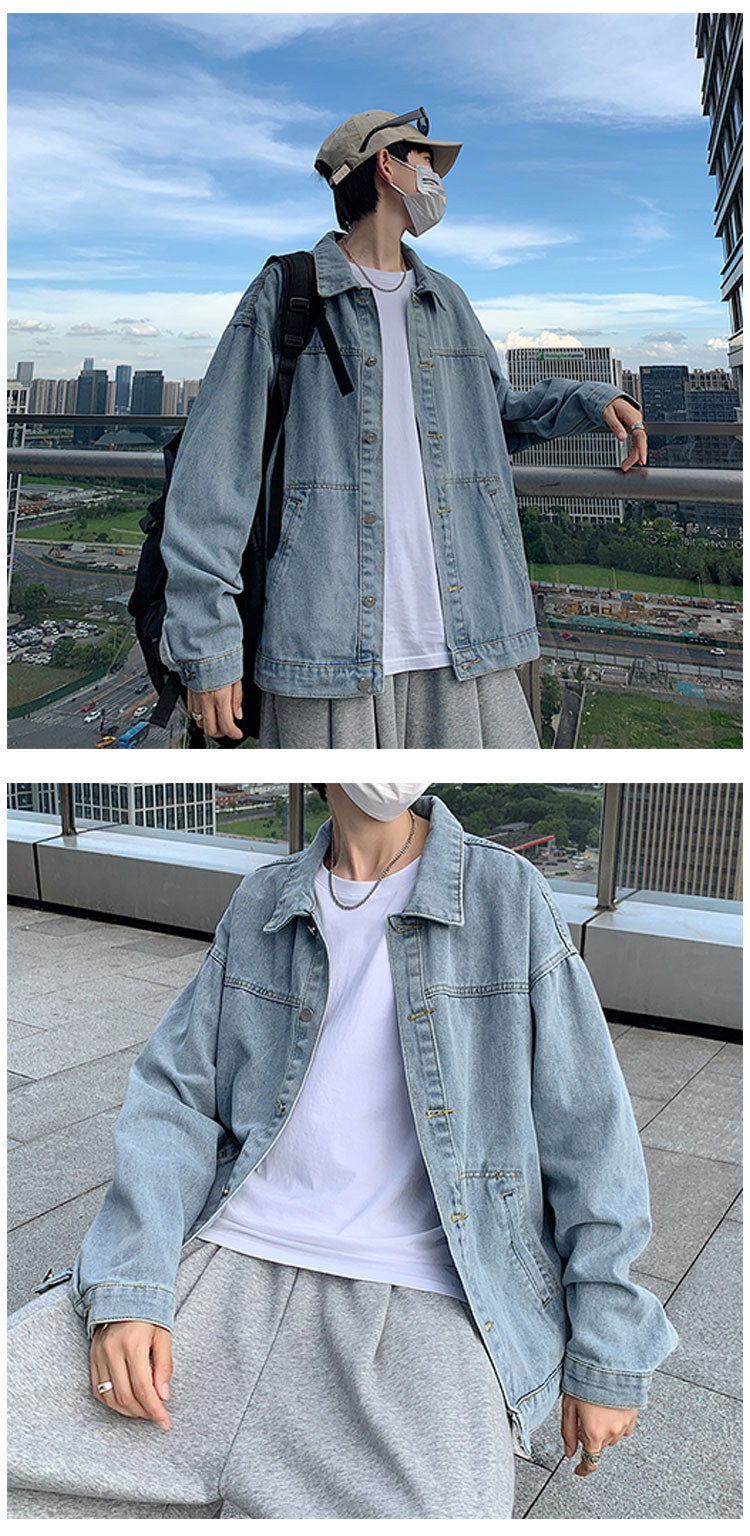 빈티지 데님 재킷 남자 봄과 가을 홍콩 스타일 루즈 인 학생들을위한 한국식 패셔너블 재킷스토어 가기