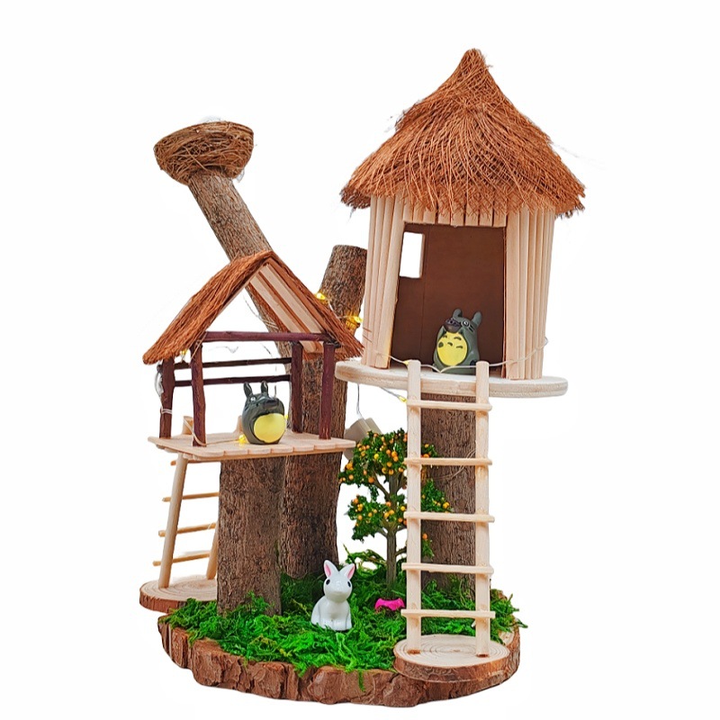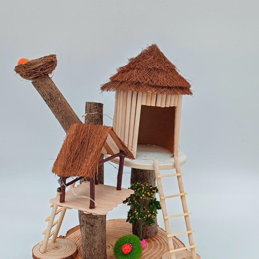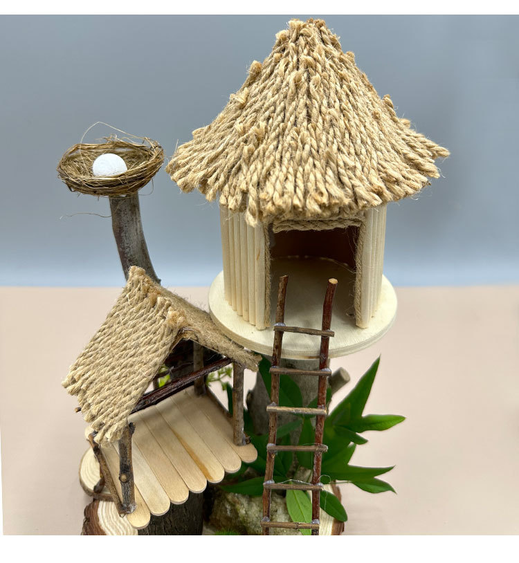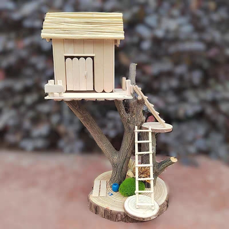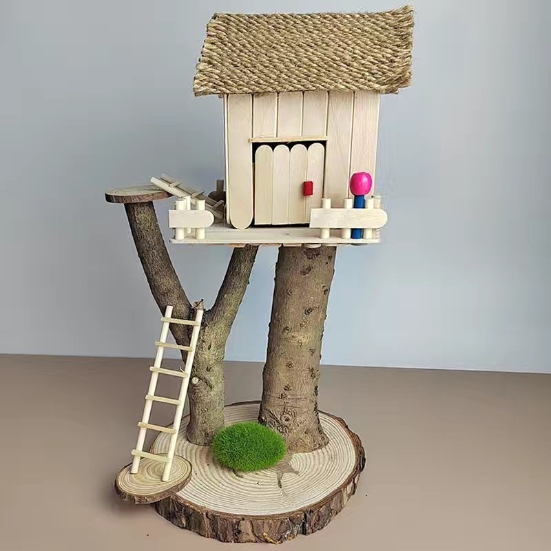 우드 칩을 사용한 유치원 가지 DIY 나무 집 재료 폐기물 어린이 수제 팜 하우스 패치 워크 모델
