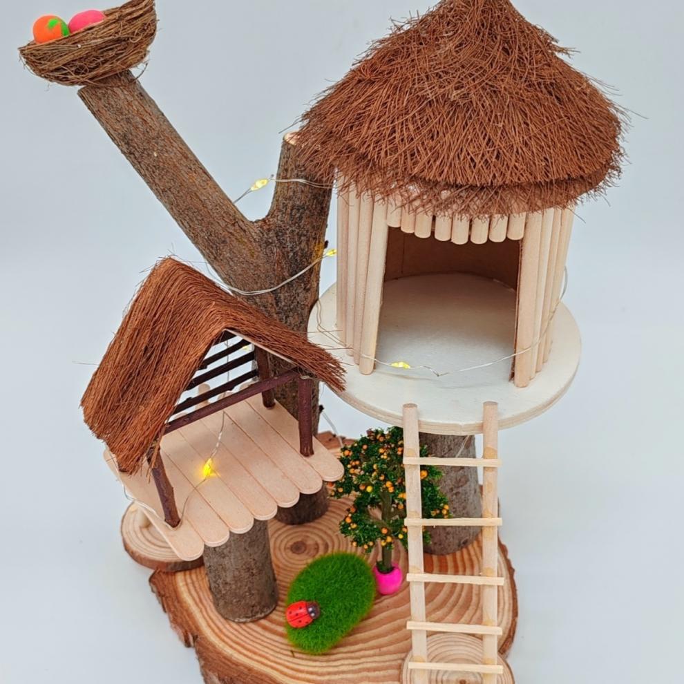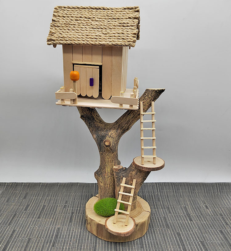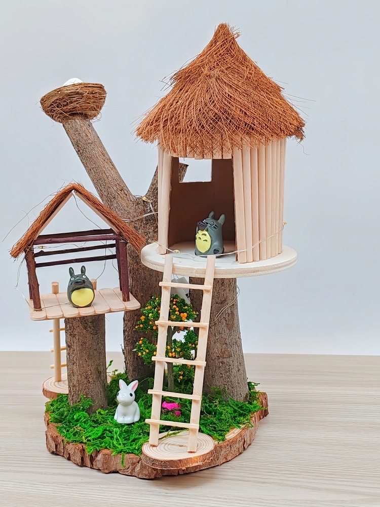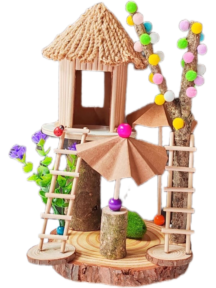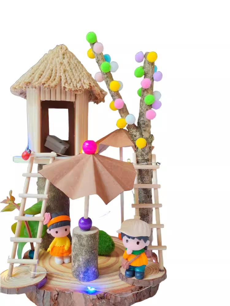 우드 칩을 사용한 유치원 가지 DIY 나무 집 재료 폐기물 어린이 수제 팜 하우스 패치 워크 모델