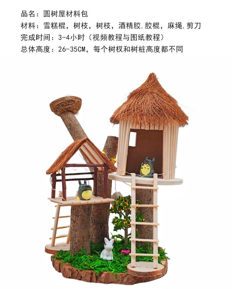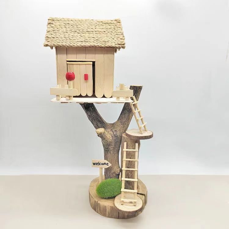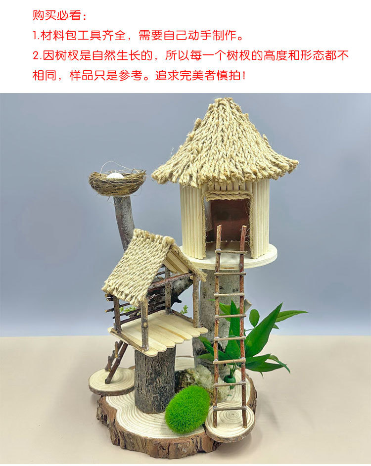 우드 칩을 사용한 유치원 가지 DIY 나무 집 재료 폐기물 어린이 수제 팜 하우스 패치 워크 모델스토어 가기