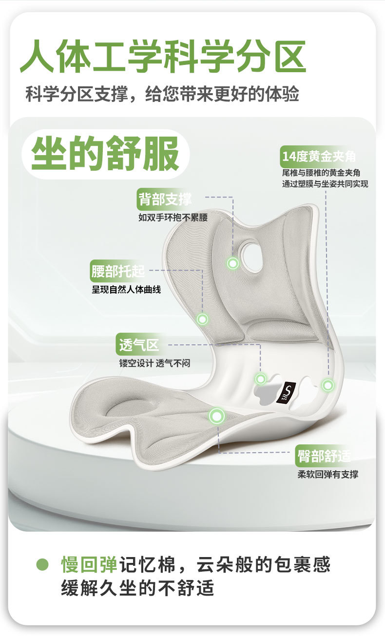가정용 요추 지지 인체공학적 허리 보호 쿠션 기숙사 장시간 앉기용 의자 학생용 메모리폼 일체형 쿠션스토어 가기