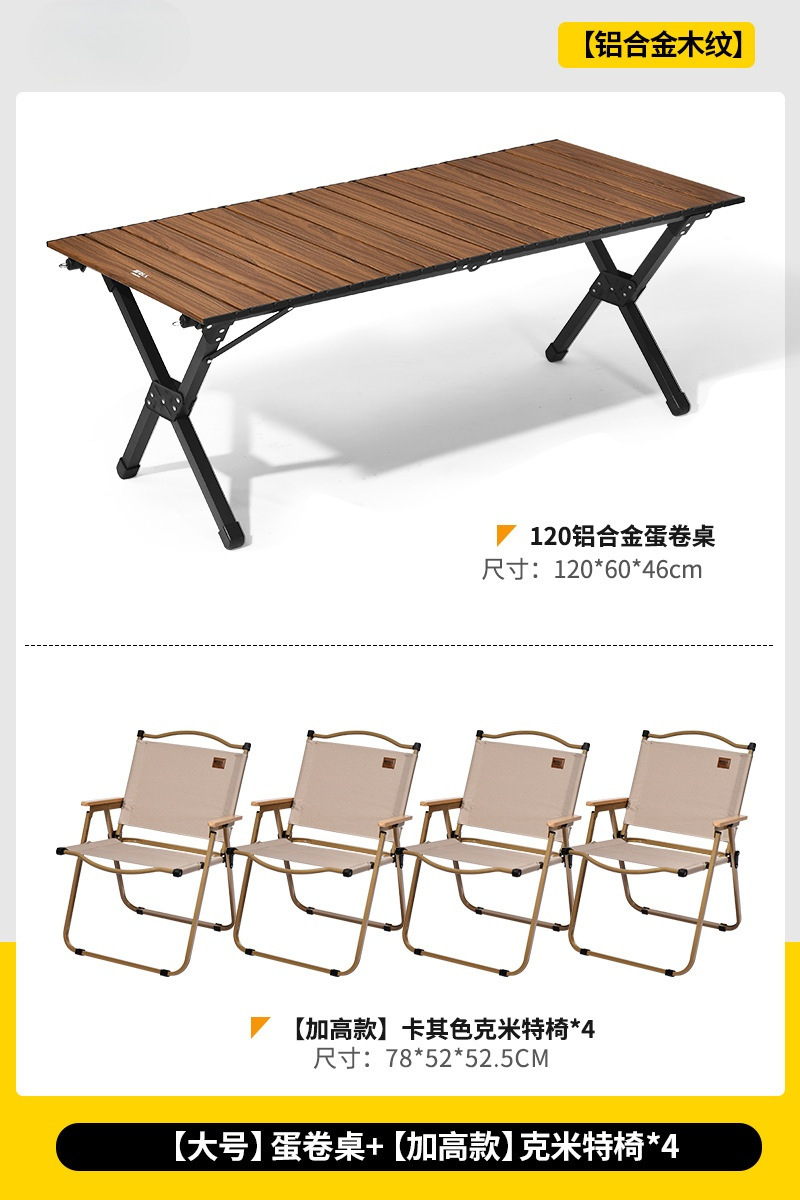 • [알루미늄 합금] 120 에그롤 테이블 + 강화된 목재 컬러 카키 쿡*4