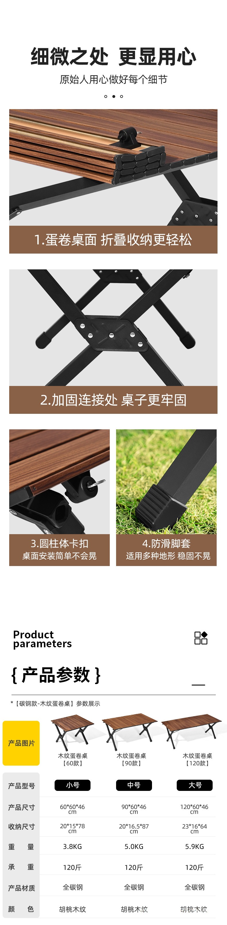 • [탄소강 모델] 120 에그롤 테이블 + 강화된 목재 컬러 카키 쿡*4